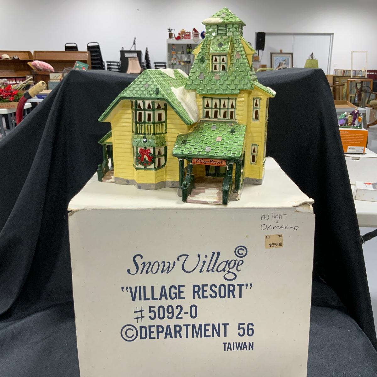 This Department 56 Snow Village “Village Resort” is giving major Mojo Dojo Casa Village Resort vibes. iykyk. Piece comes with original Box, has some damage, and does not have a light included. These things are reflected in the starting price. Please see photos for details and condition. ::: Shipping is available on this lot. If you require shipping you must let us know at the close of the auction. We will coordinate with you after the item has been won. Shipping fees will include insurance up to or exceeding the value of all items being mailed. If you have any questions regarding this lot please contact the auctioneer either via this website, by direct email or by phone. PICK UP TIMES and other important information can be found in the TERMS and DESCRIPTION of the auction. Please take a look for pertinent information. Thanks! Any condition statement is given as a courtesy to a client, is an opinion, and should not be treated as a statement of fact. Reference to condition written, oral or within a condition report shall not be regarded as a full account of condition and may not include all defects, alterations, or restorations. Absence of a condition report does not imply a lot is flawless or lacking imperfections or damage. Katherine’s Auction & Appraisal Service shall have no responsibility for any error or omission. Returns shall not be accepted on the basis of condition.