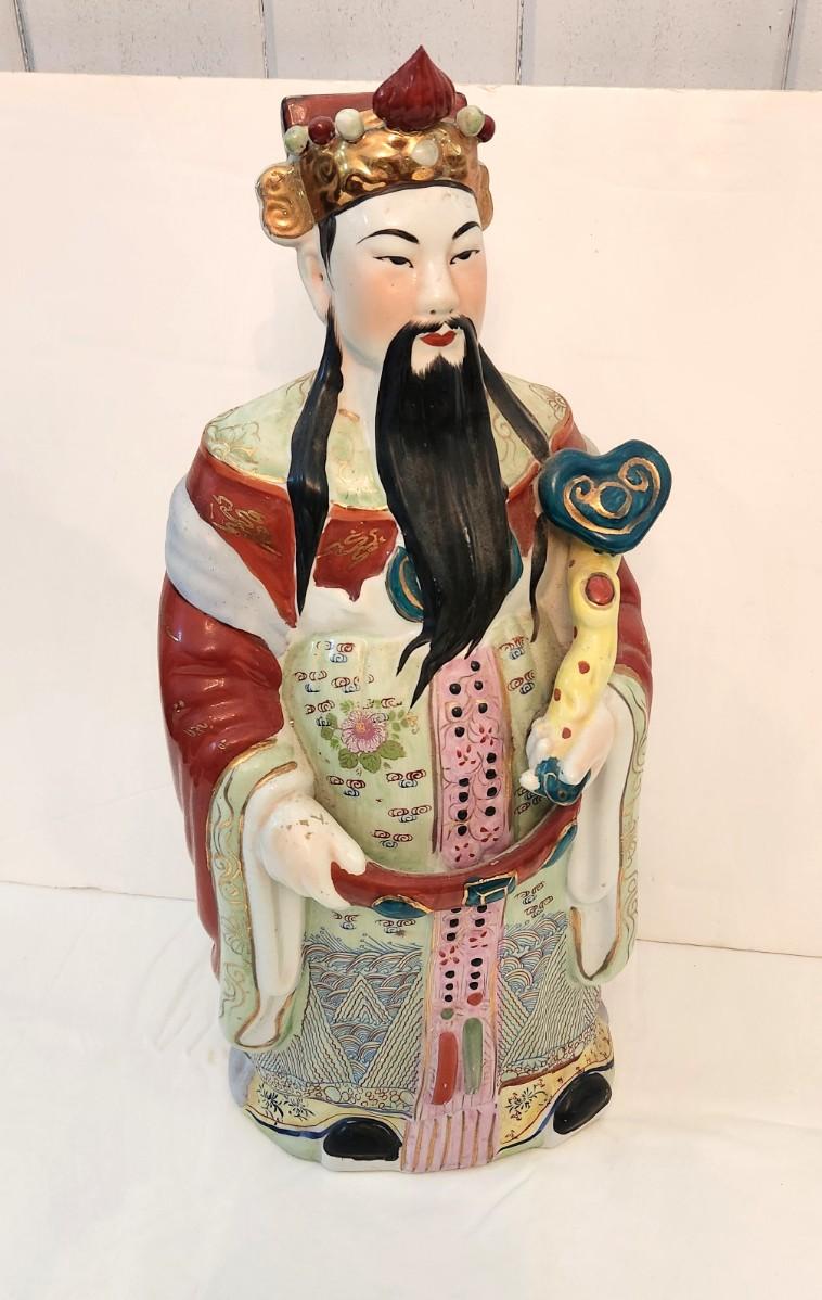 Vintage Fu Her Shou figure, God of Wealth and Good Luck & Prosperity. Ceramic, 20" tall, vintage condition.