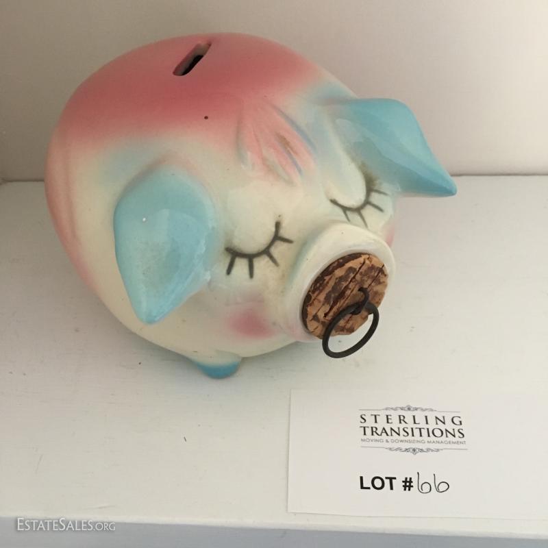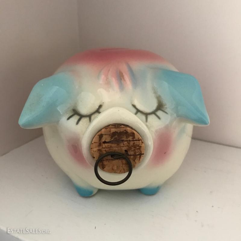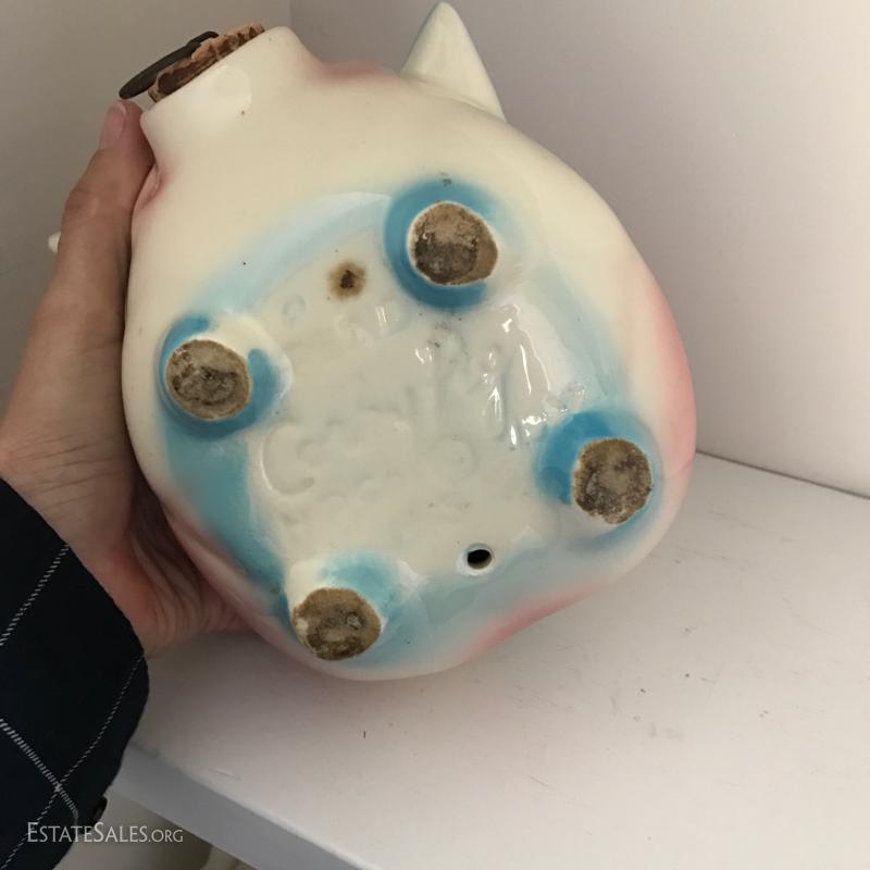 Hull, Corky Pig piggy bank, marked date: 1957. No chips. Includes original cork.