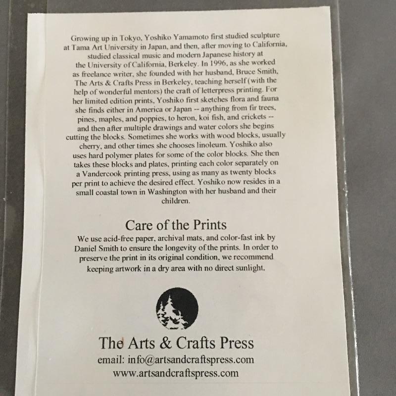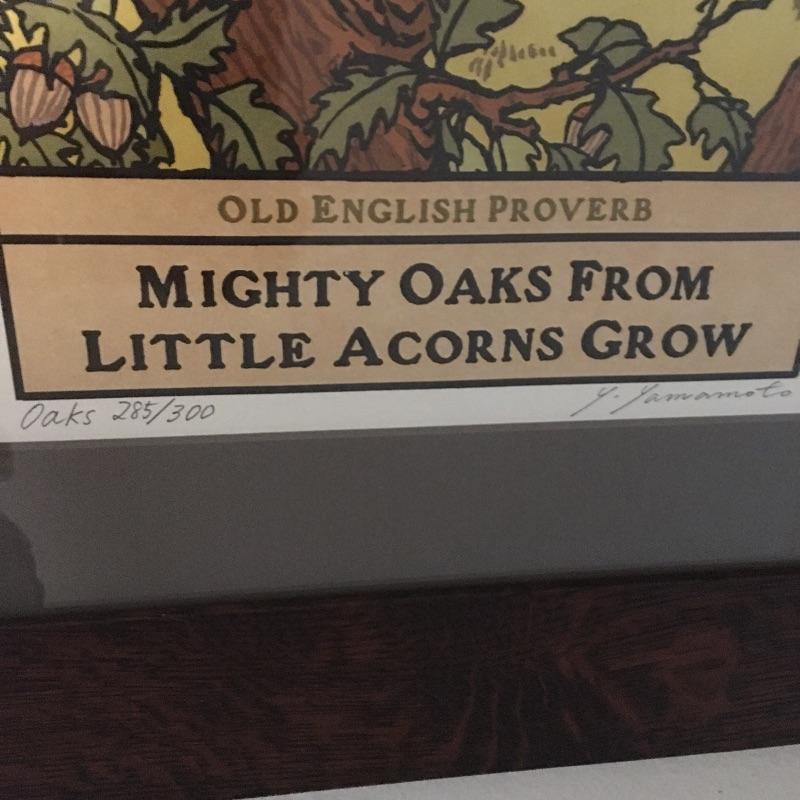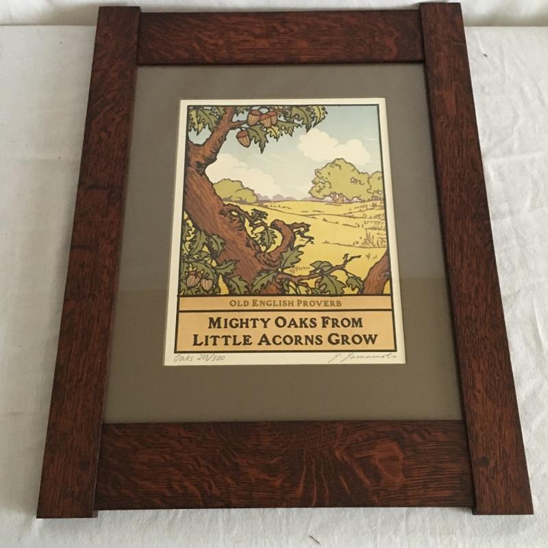 Yoshiko Yamamoto framed, signed and numbered print. Titled "Oaks" This is # 285/300. Frame is made by Family Woodworks and measures 17.5” x 23”. This is one of three signed prints by Yoshiko in the sale.