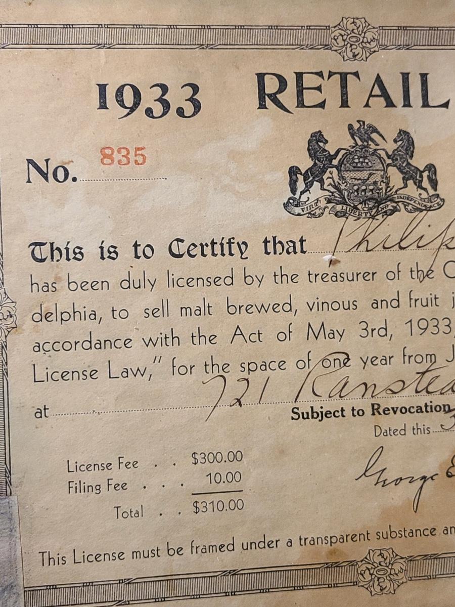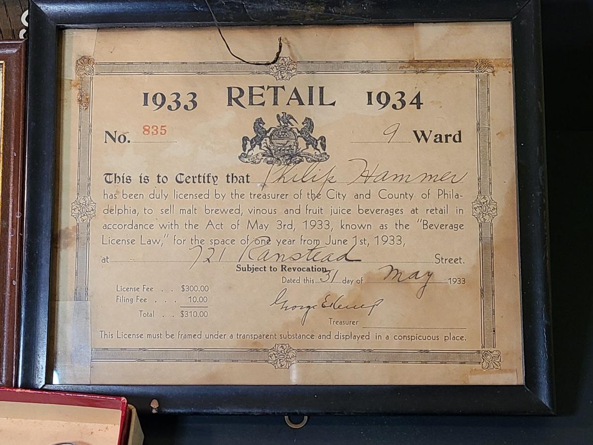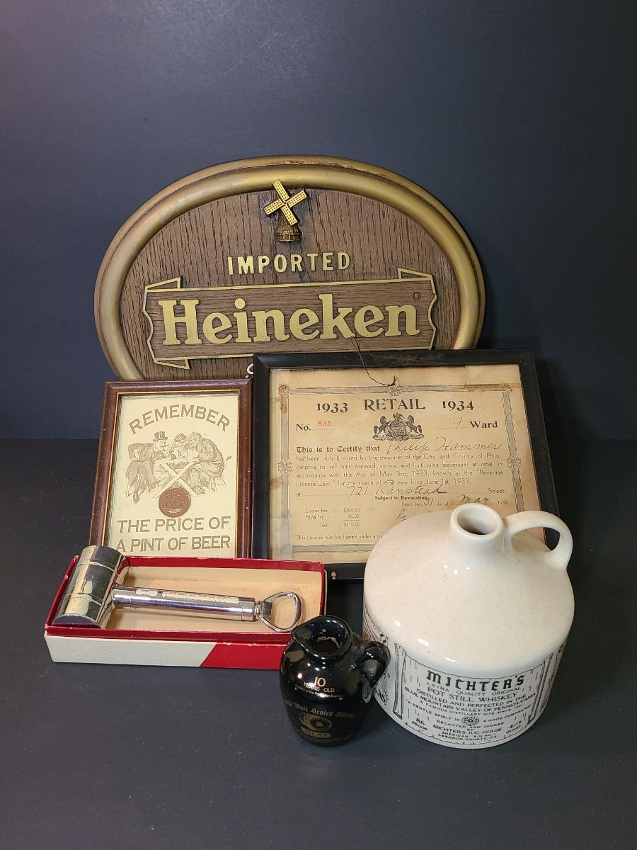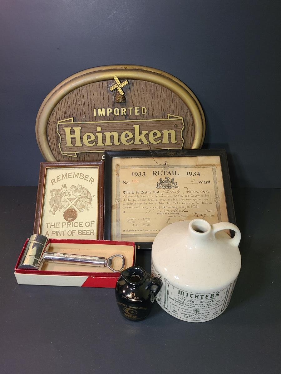 Lot 120S: Vintage Heineken Bar Sign, Philadelphia Liquor License 1933, and More
