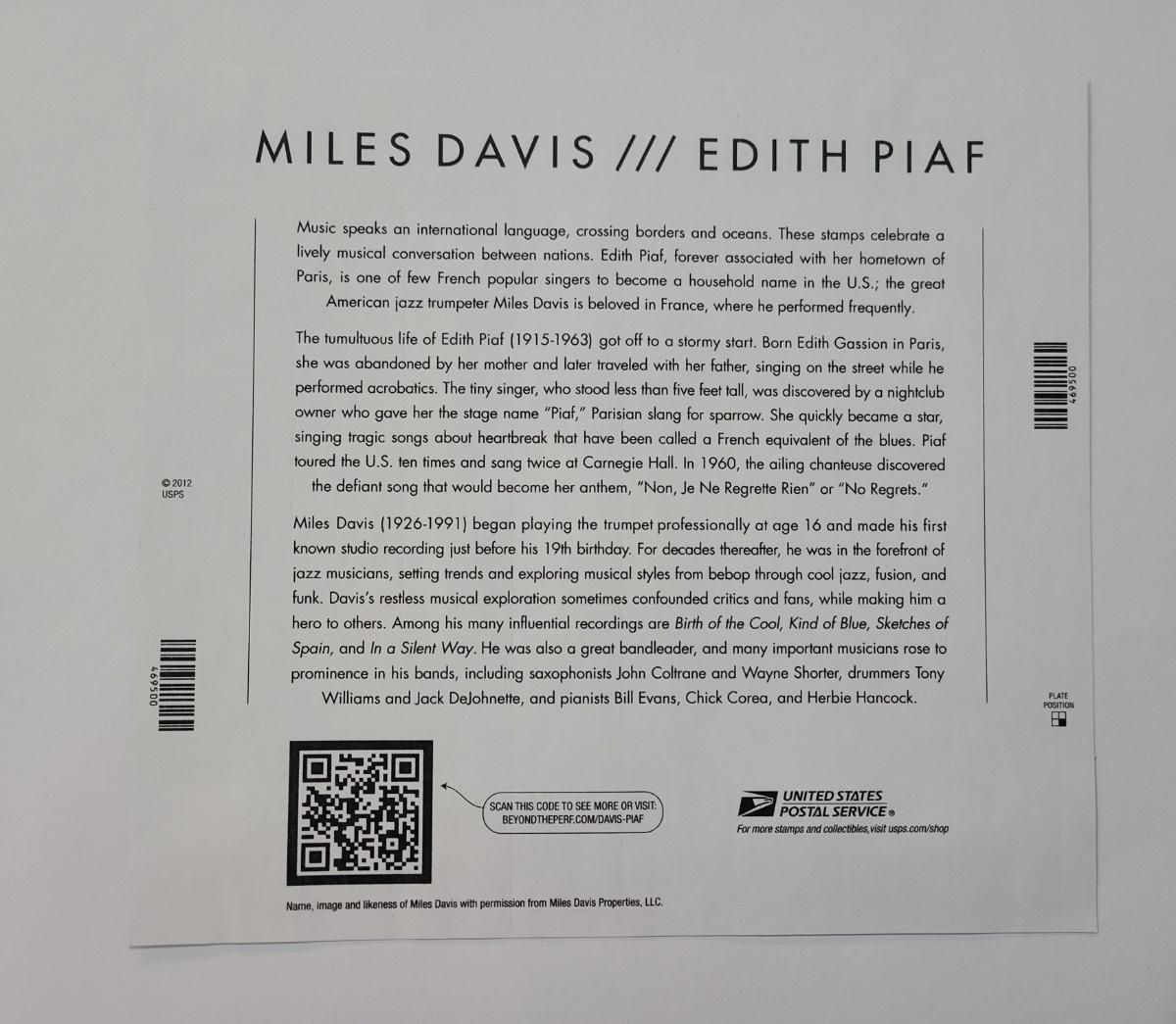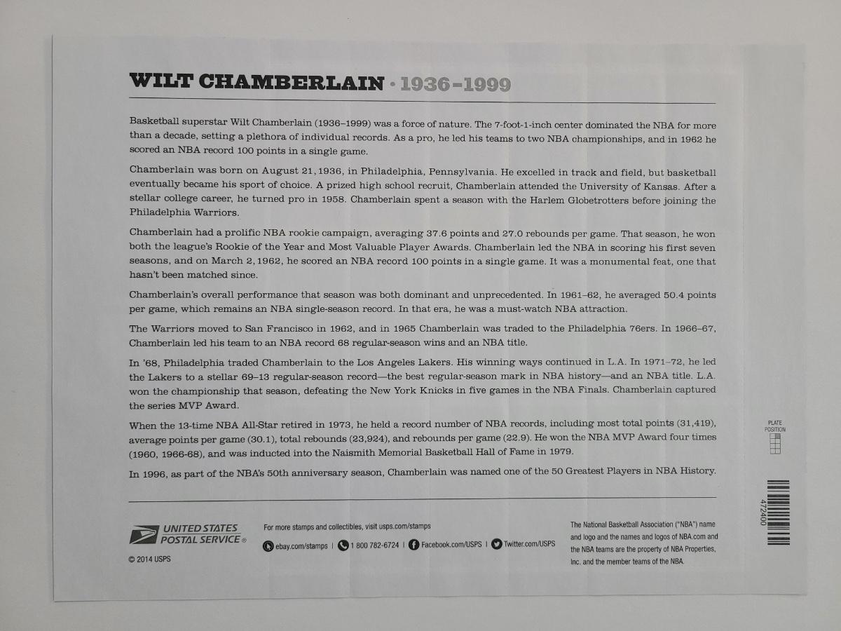 Lot 26: Forever Stamp: Miles Davis, Celebrity Chefs, Wilt Chamberlain and More (120 stamps)