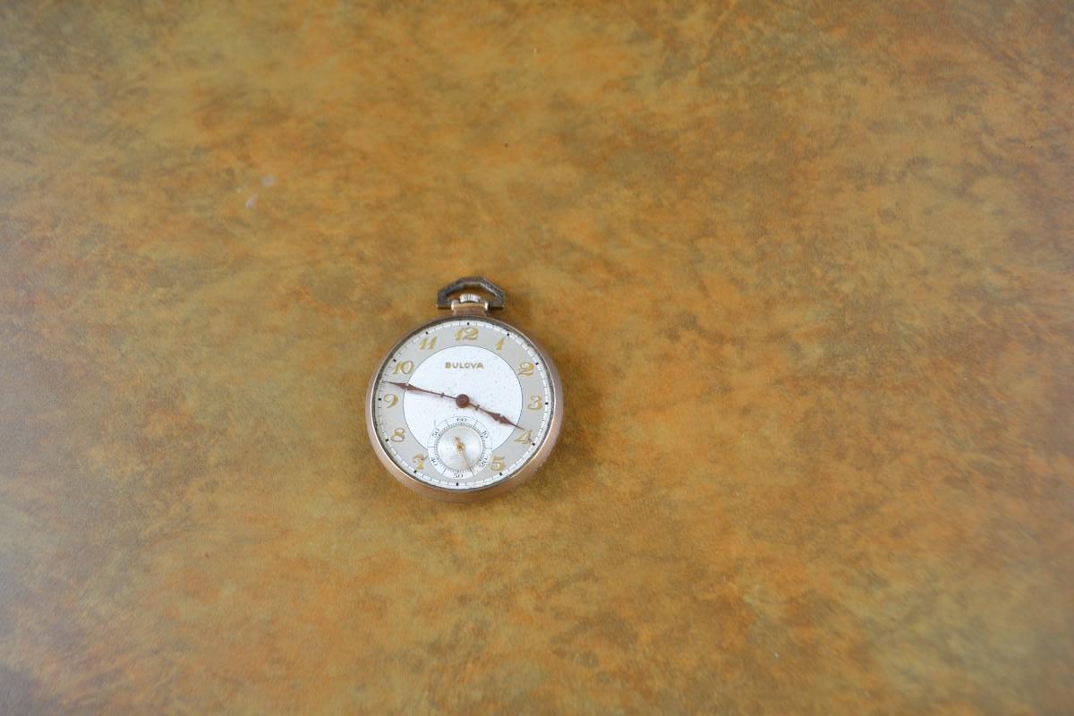 LOT 664. BULOVA POCKET WATCH NO CRYSTAL AND NOT RUNNING