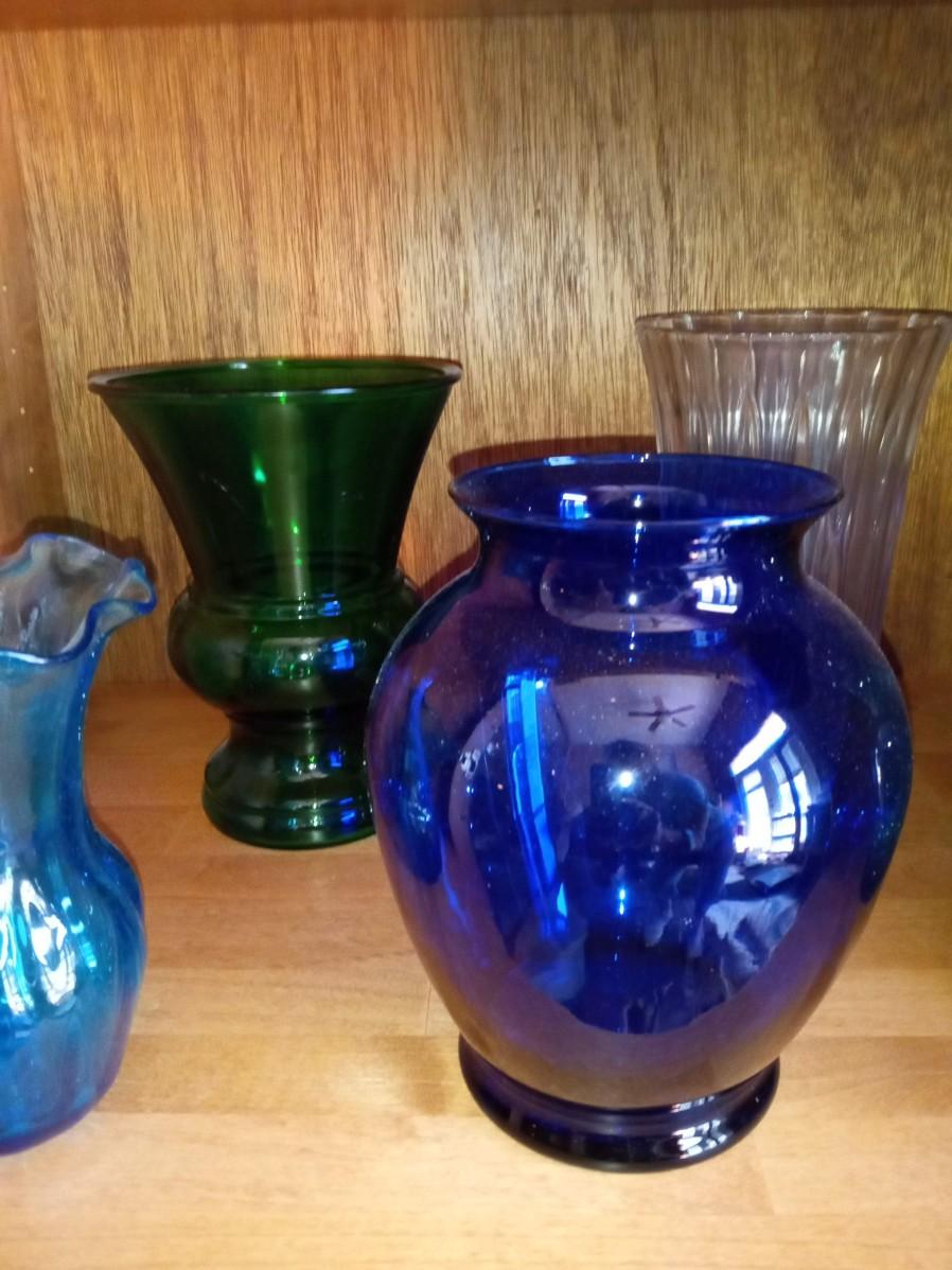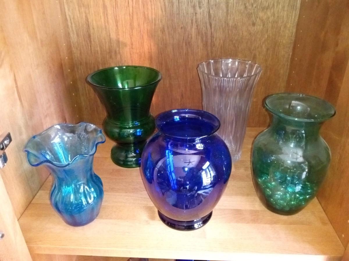 LOT 665 COLORFUL GLASS VASES