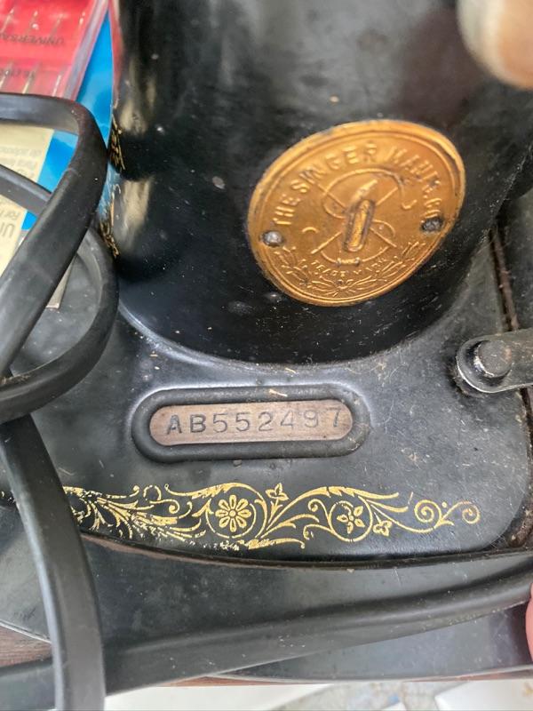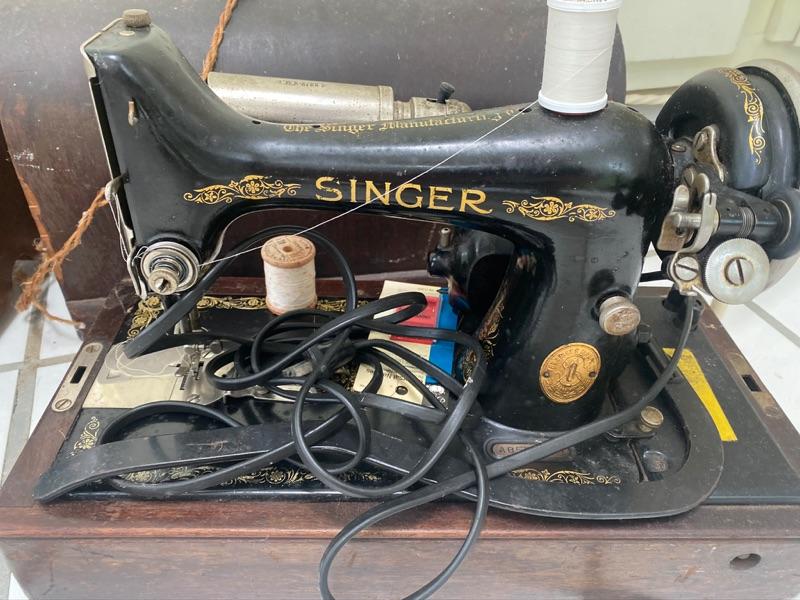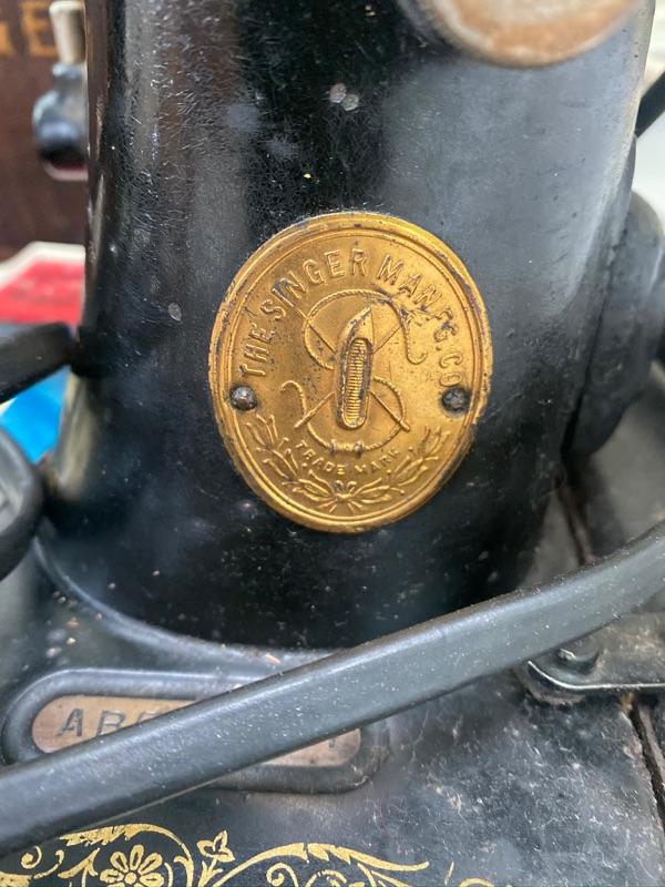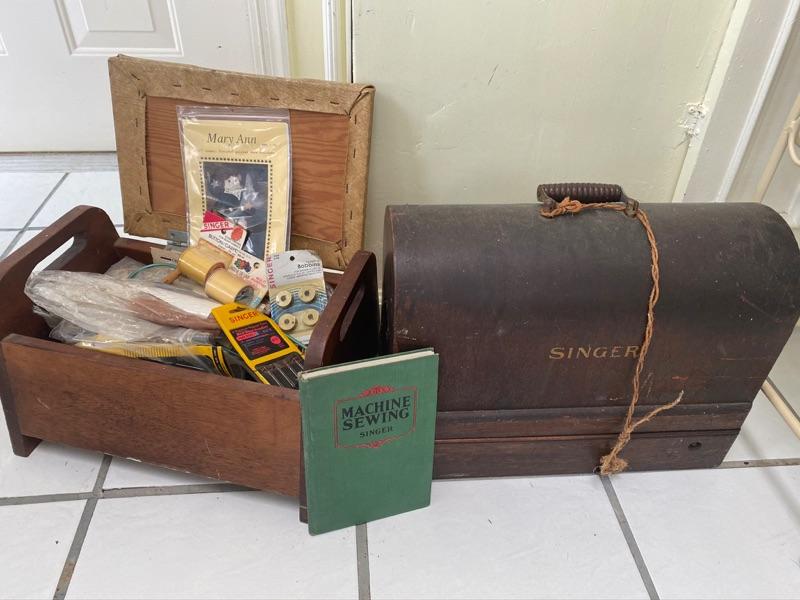 Lot # 665 Antique Singer Sewing Machine with supplies