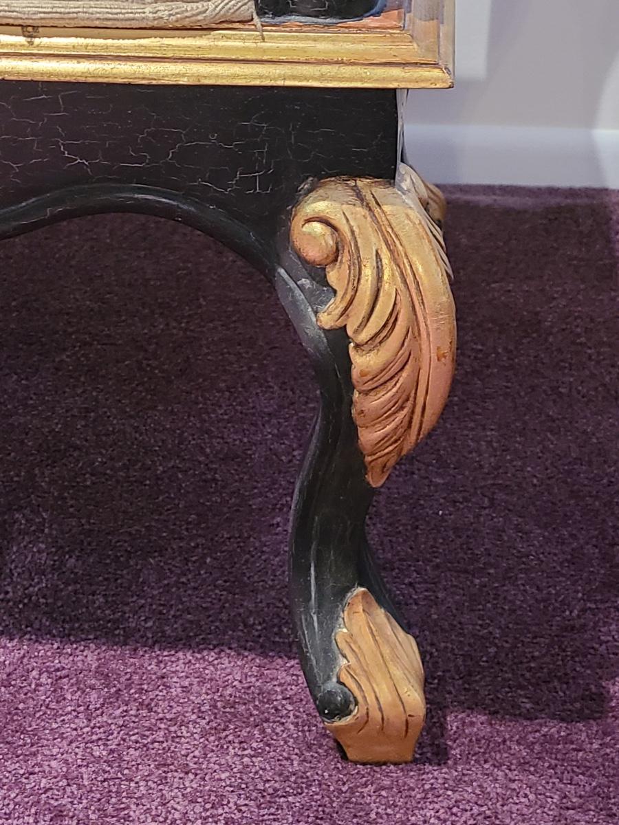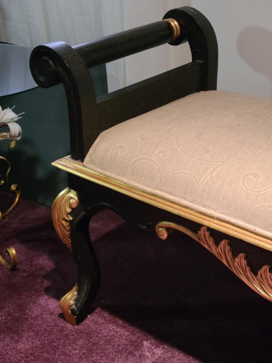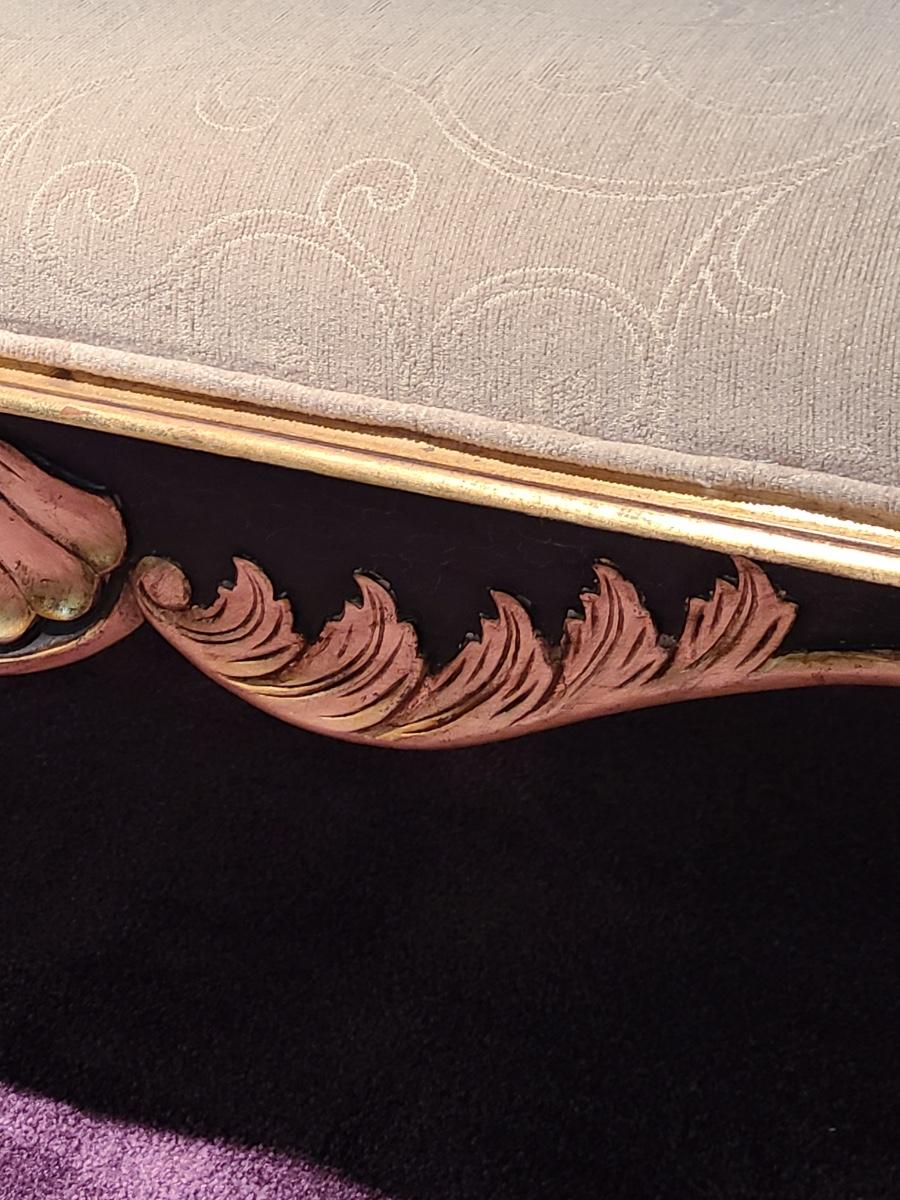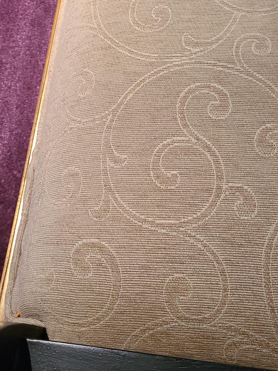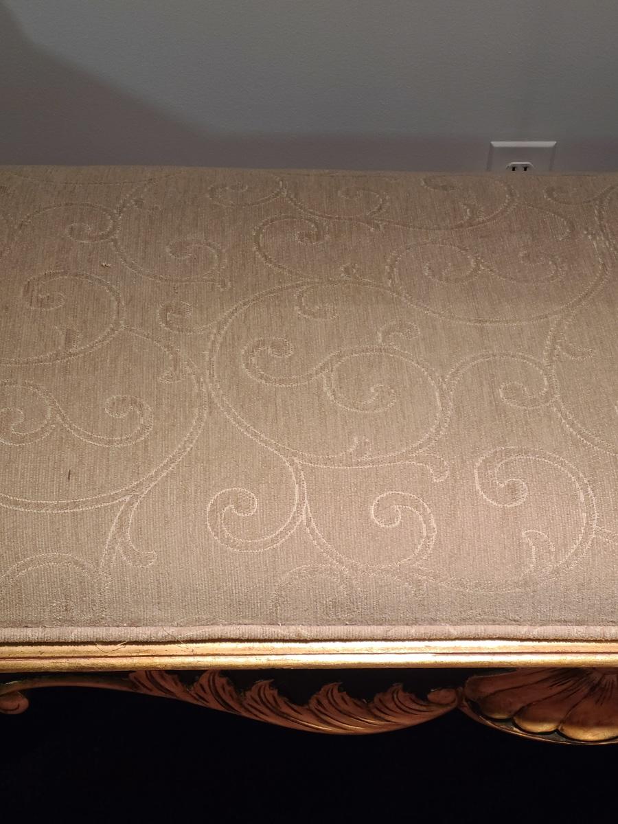 This piece is gorgeous and functional! Gold accents on black with character distressing. The cushioned seat is clean, soft, and has swirl accents. Perfect for any room in the home! Please see all pictures as they are the best representation of the items. The pictures show condition, measurements if taken, and what is included in the lot. Due to the large amount that we photograph and the time frame, we are not always able to take measurements. All items unless noted, are pre-owned and have been used. If you purchased furniture, you must bring help. We do not allow one person to carry large furniture out on their own. Bring help, tools and a truck for the safety of our client’s homes, and your personal safety. Company policy. Thank you.