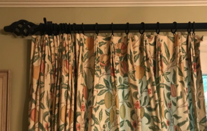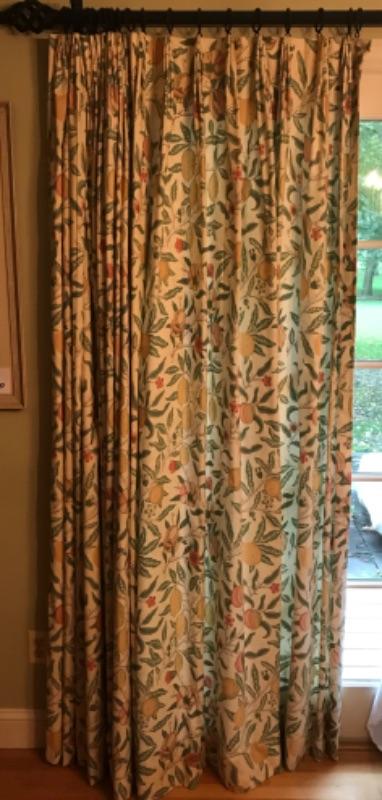Pair of Fruit print panels each panel has two seams and measures 7’ long and approximately 5’ 6” wide. Rod not included