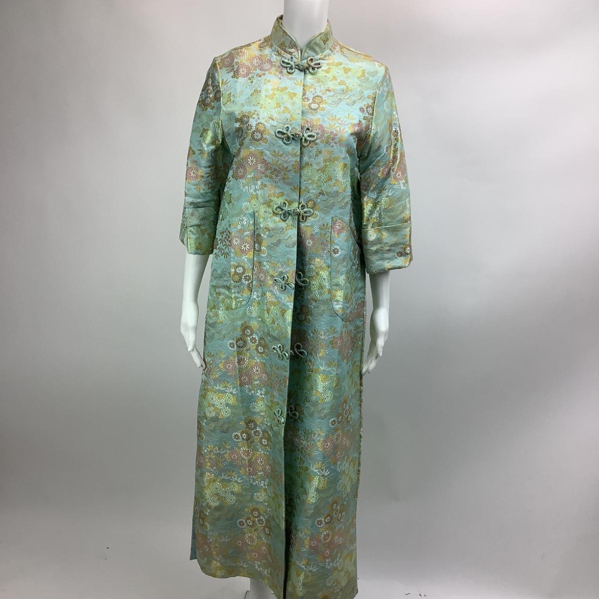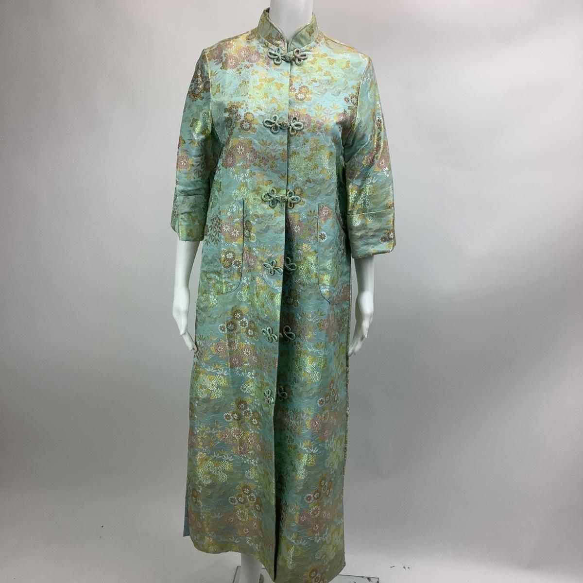 Lot 667 Japanese Vintage Oriental Silk Robe Fully Lined, Embroidered Flowers