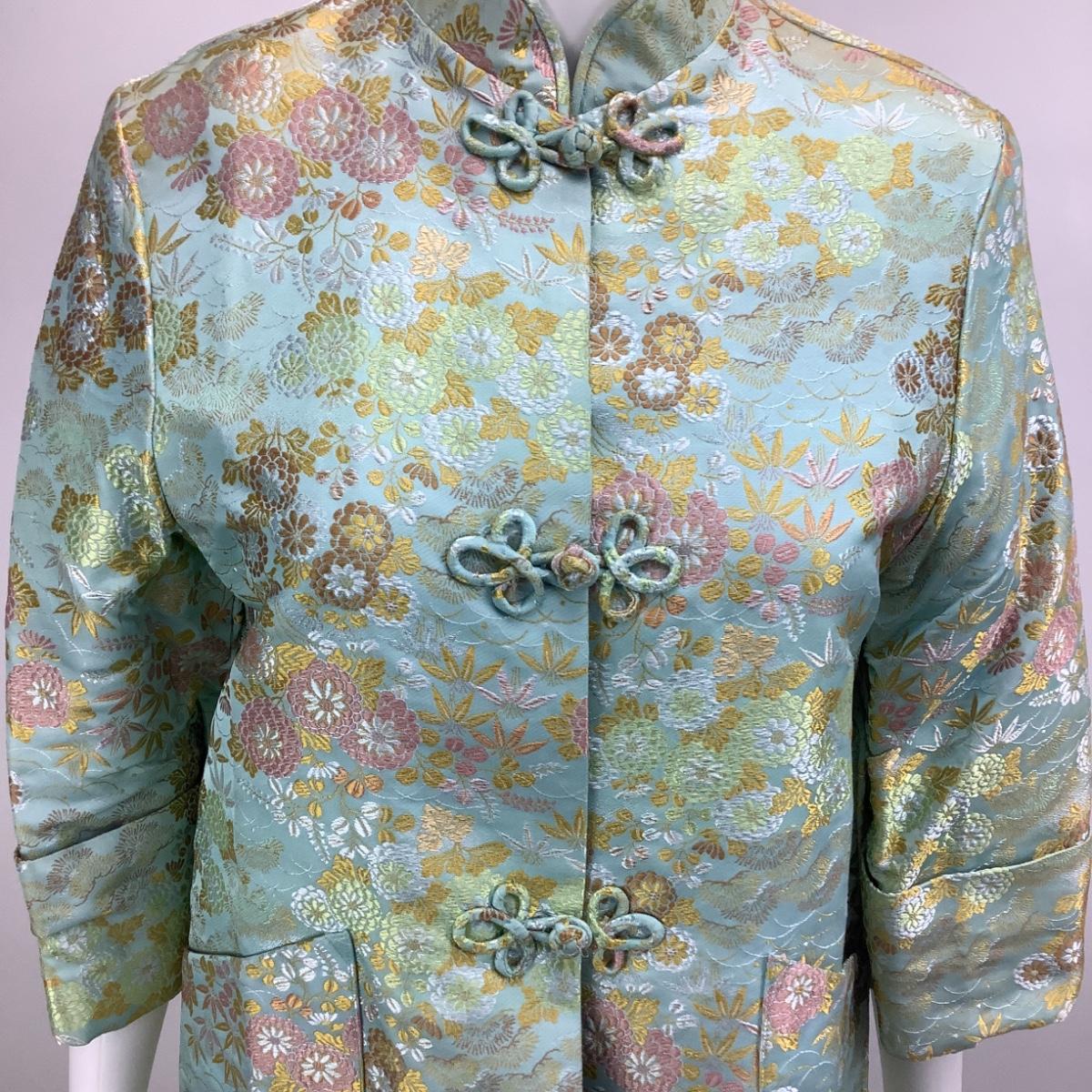 Japanese Vintage Oriental Silk Robe Fully Lined Embroidered Flowers