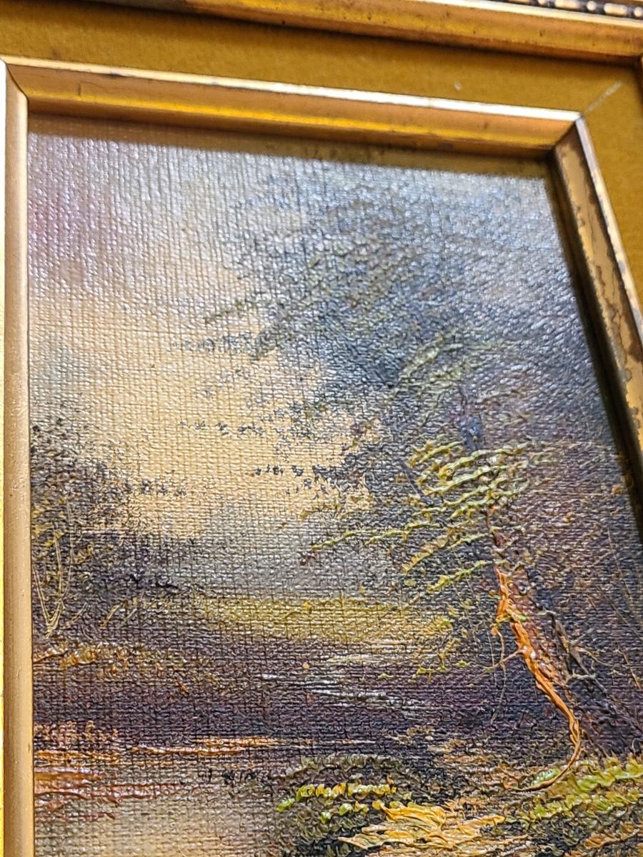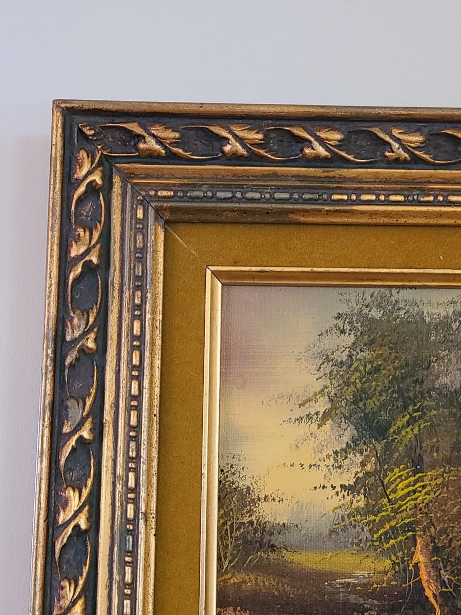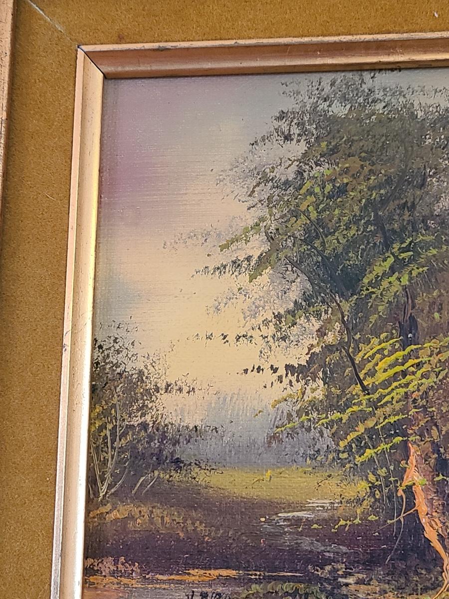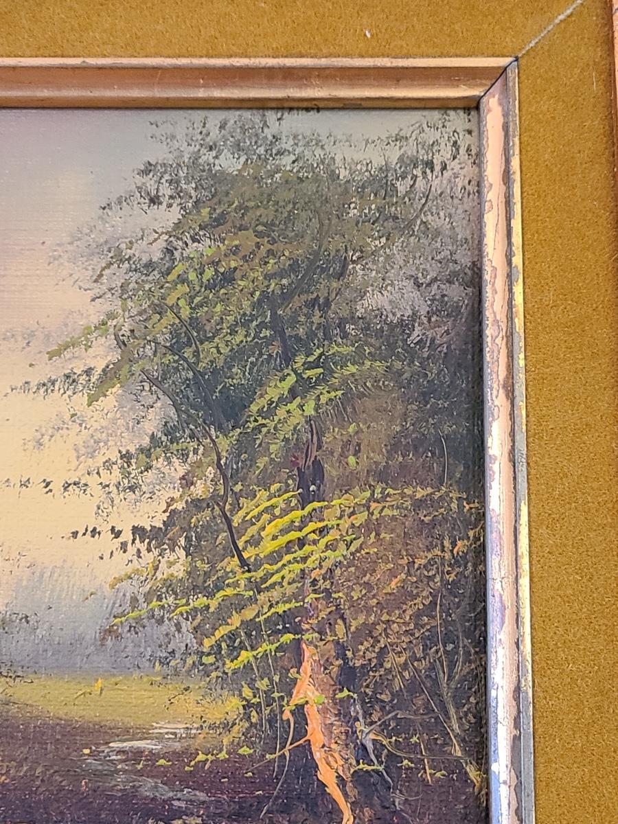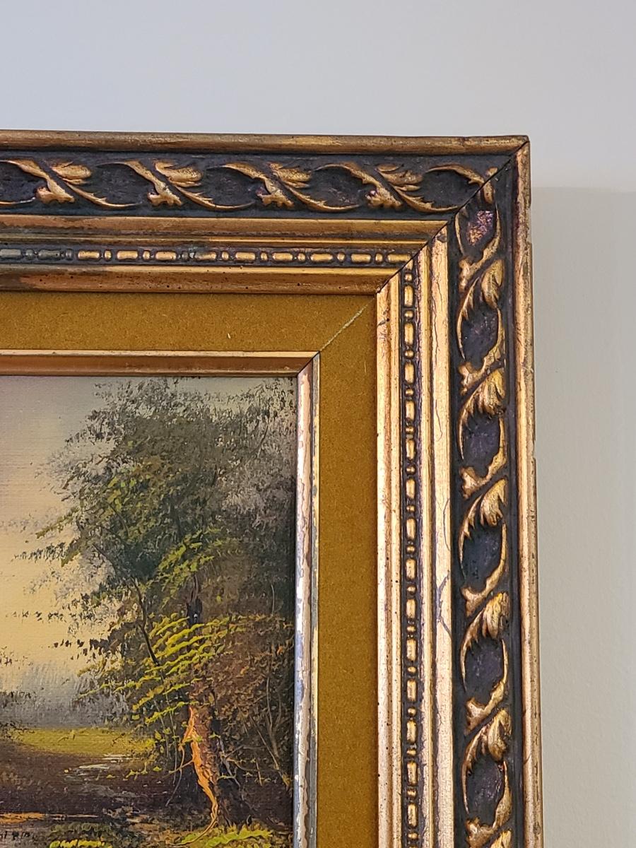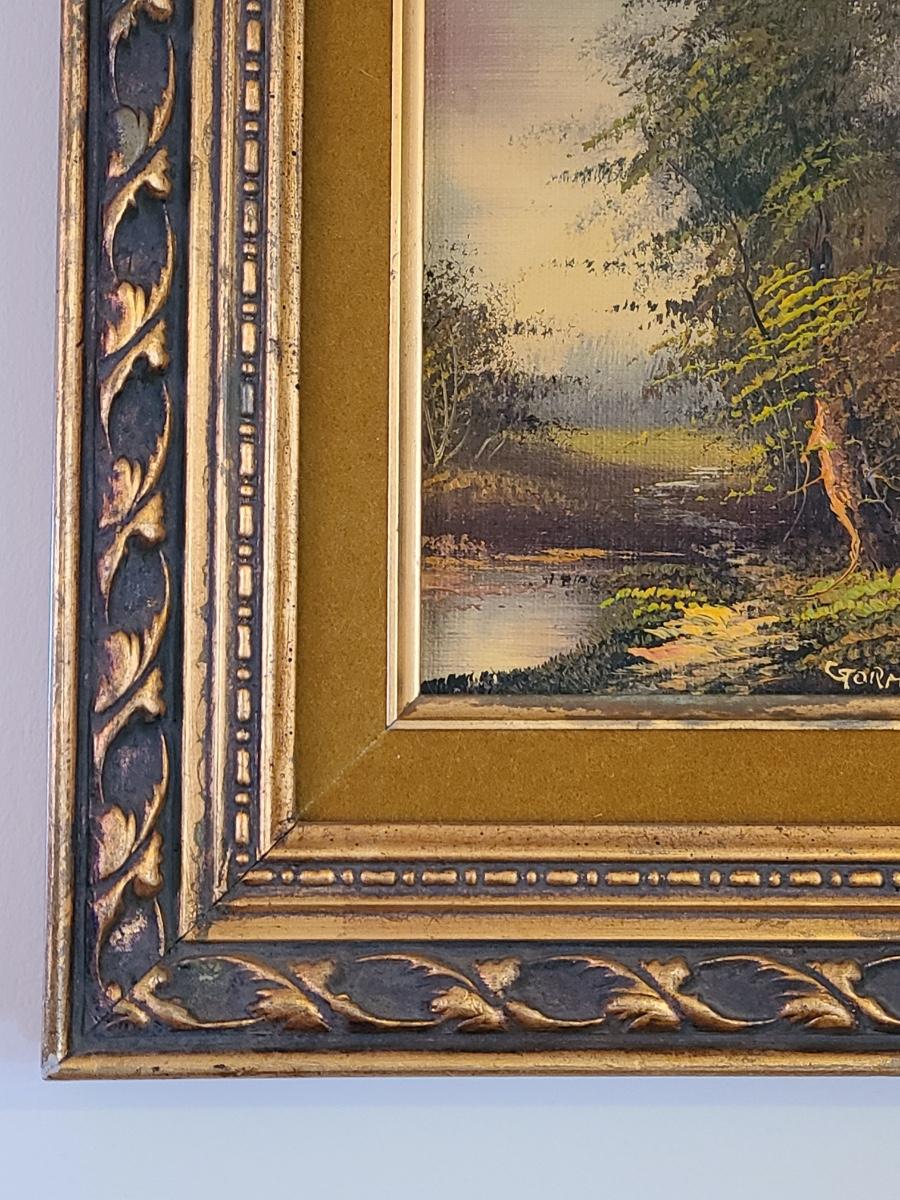 This petite 10x12 inch painting is signed "Gorman" and is painted on wood. This looks to be oils. Please see the close ups of the brush strokes to make a determination. This gives off a beautiful glow from the landscape with a display light shining on. Please see all pictures as they are the best representation of the items. The pictures show condition, measurements if taken, and what is included in the lot. Due to the large amount that we photograph and the time frame, we are not always able to take measurements. All items unless noted, are pre-owned and have been used. If you purchased furniture, you must bring help. We do not allow one person to carry large furniture out on their own. Bring help, tools and a truck for the safety of our client’s homes, and your personal safety. Company policy. Thank you.