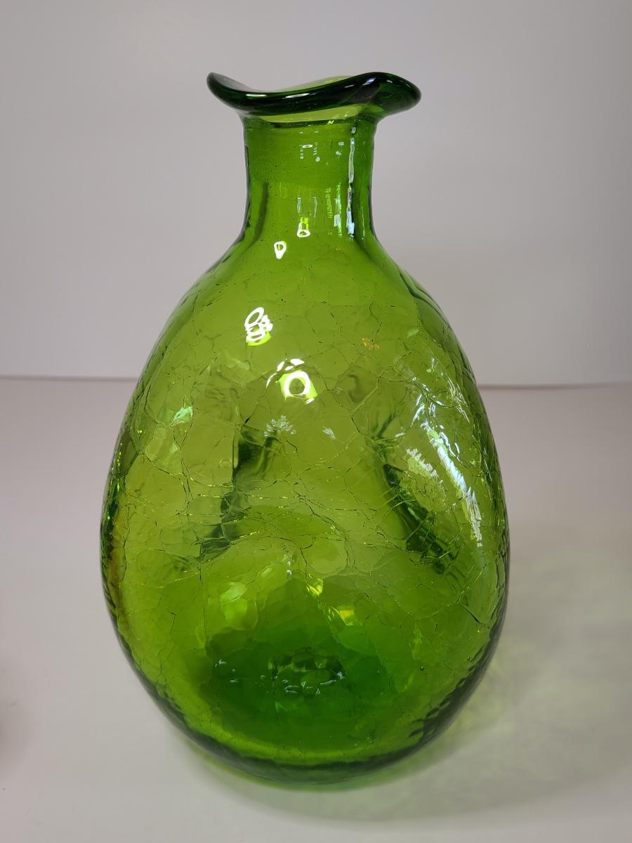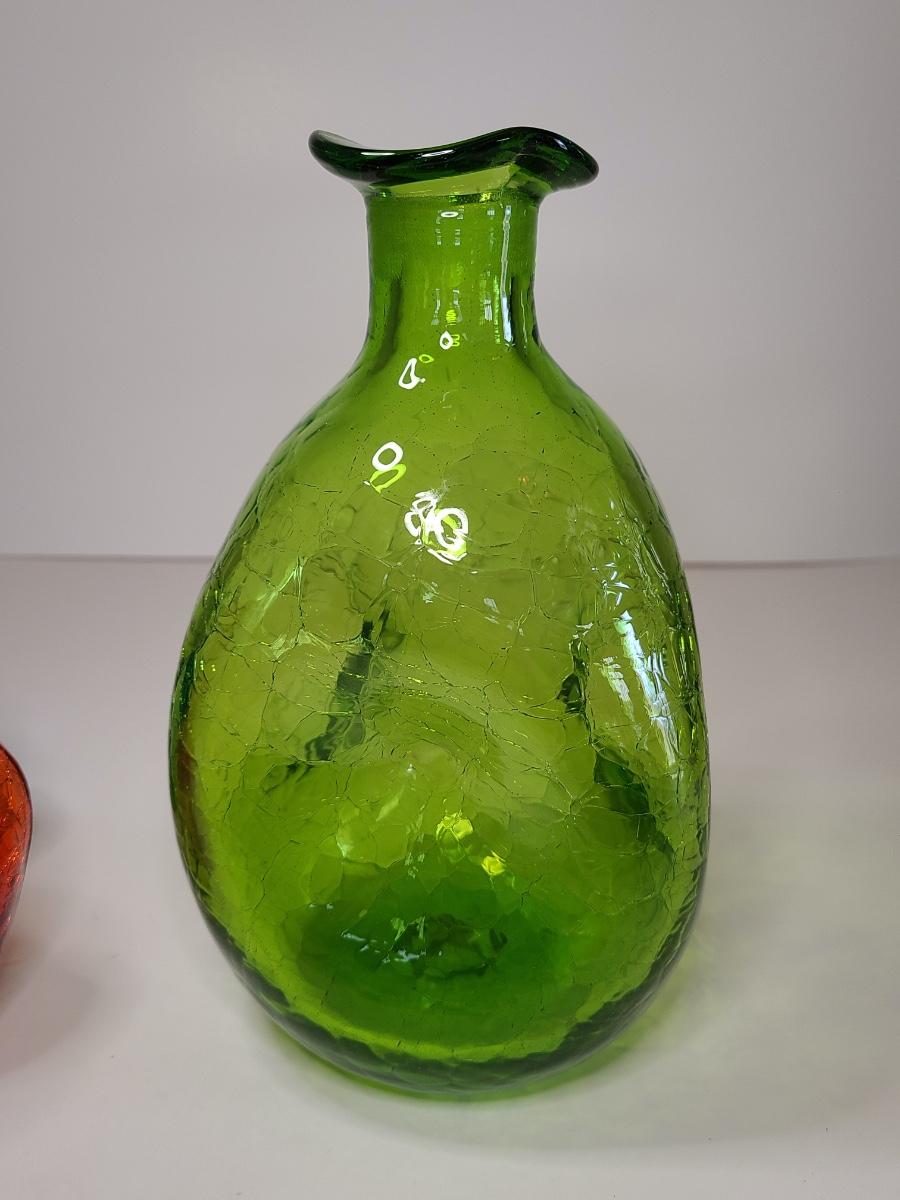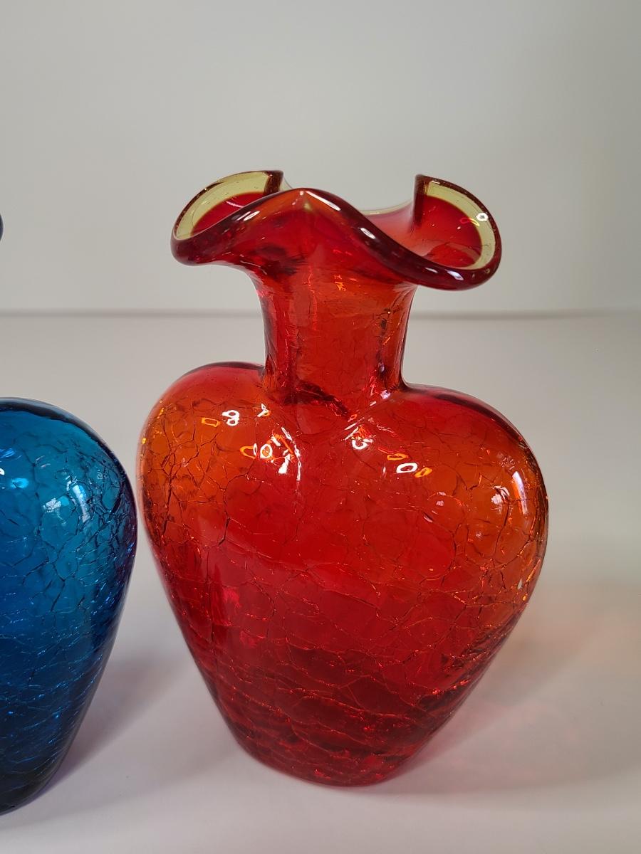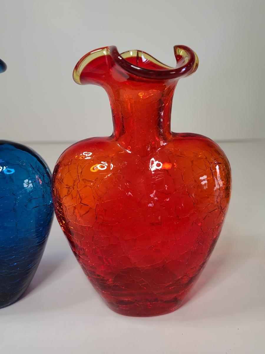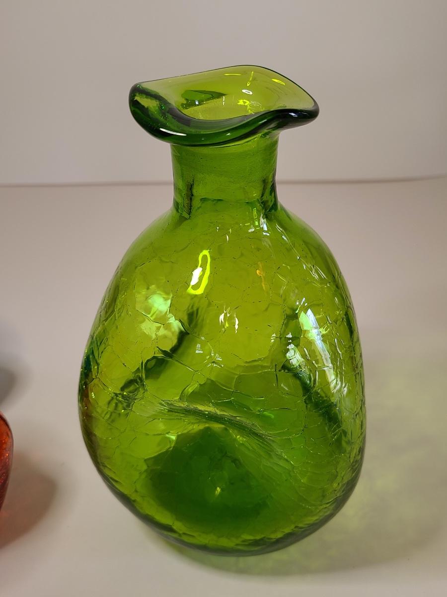 Lot 76: Vintage /MCM Ruffled Edge Crackle Glass (Green Vase is Larger)