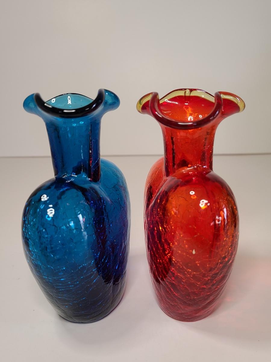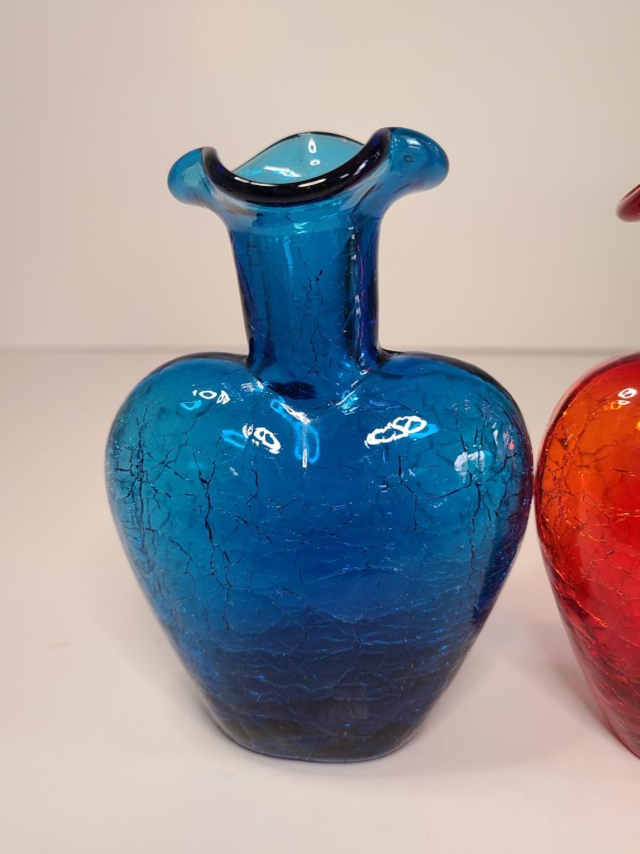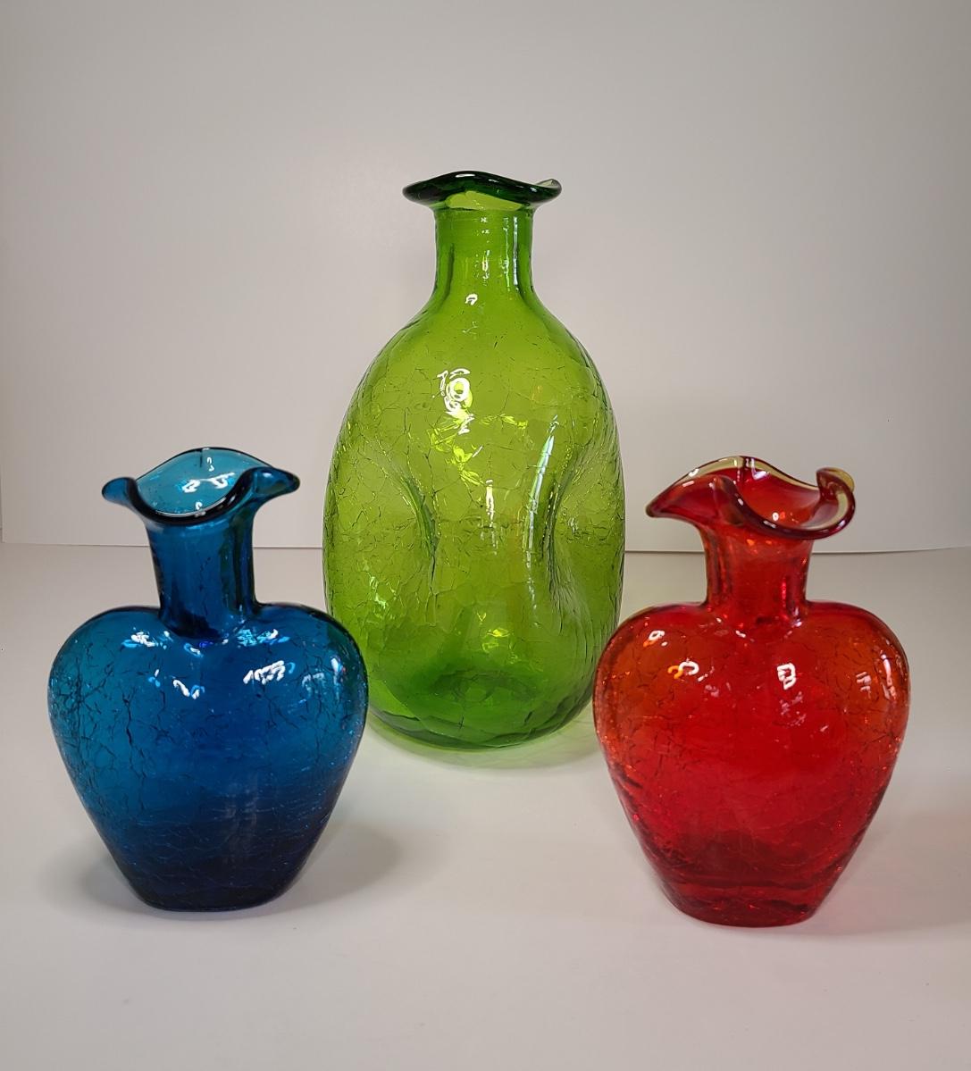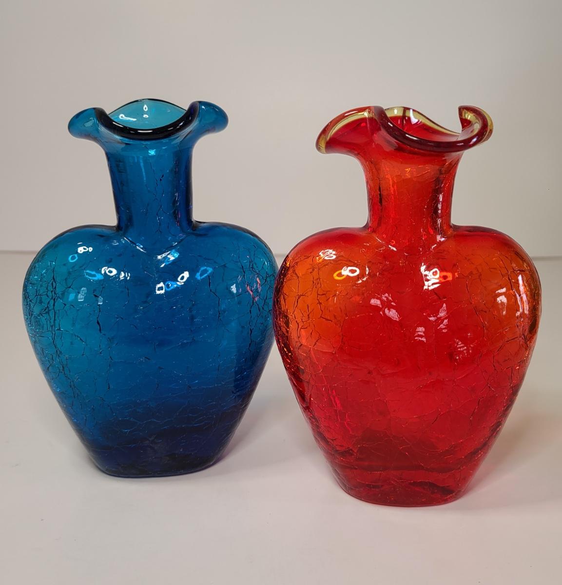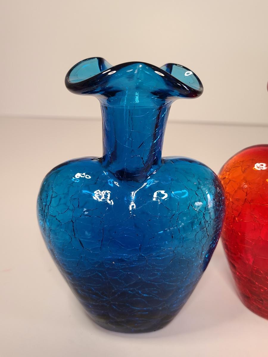 Lot 76: Vintage /MCM Ruffled Edge Crackle Glass (Green Vase is Larger)