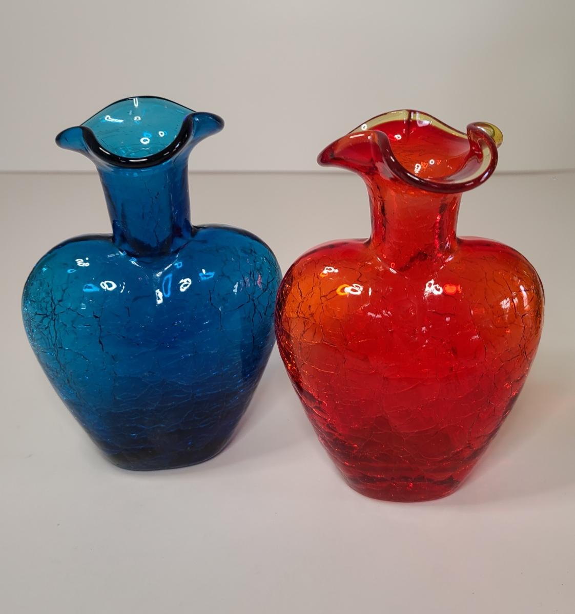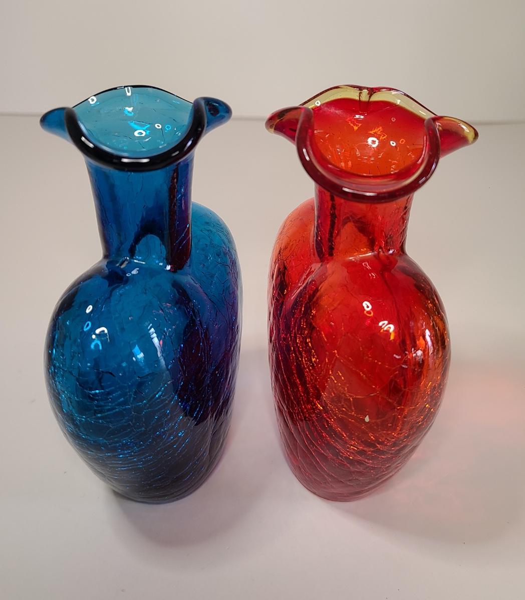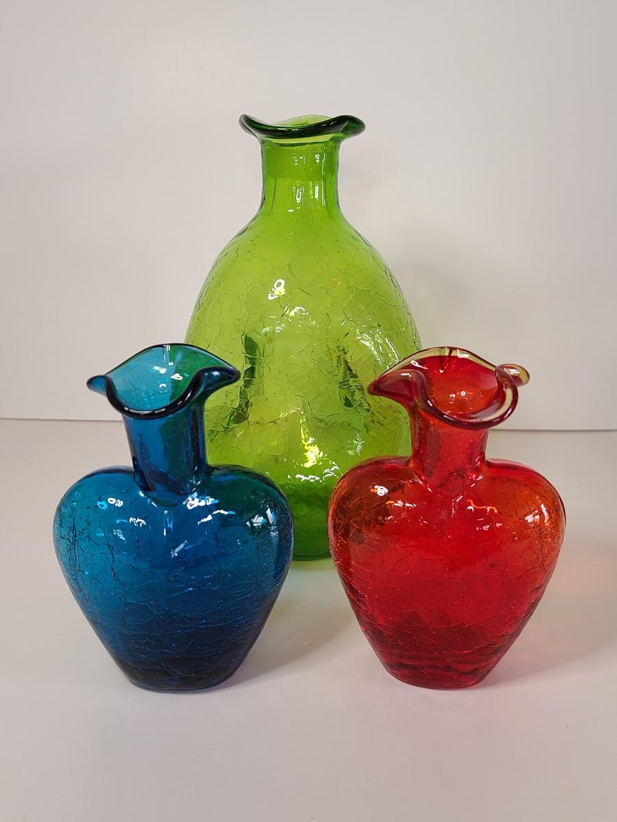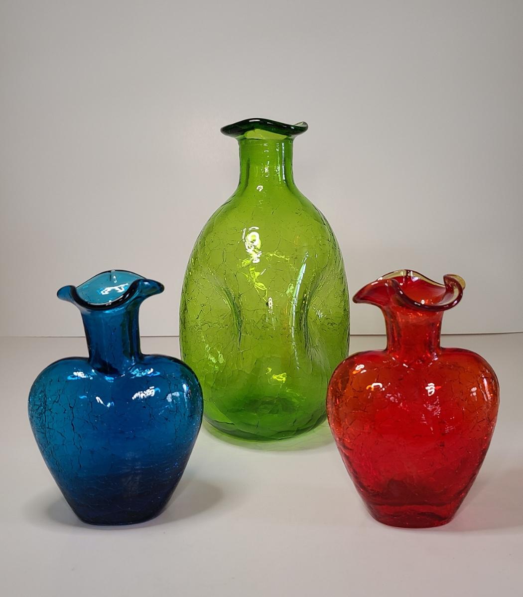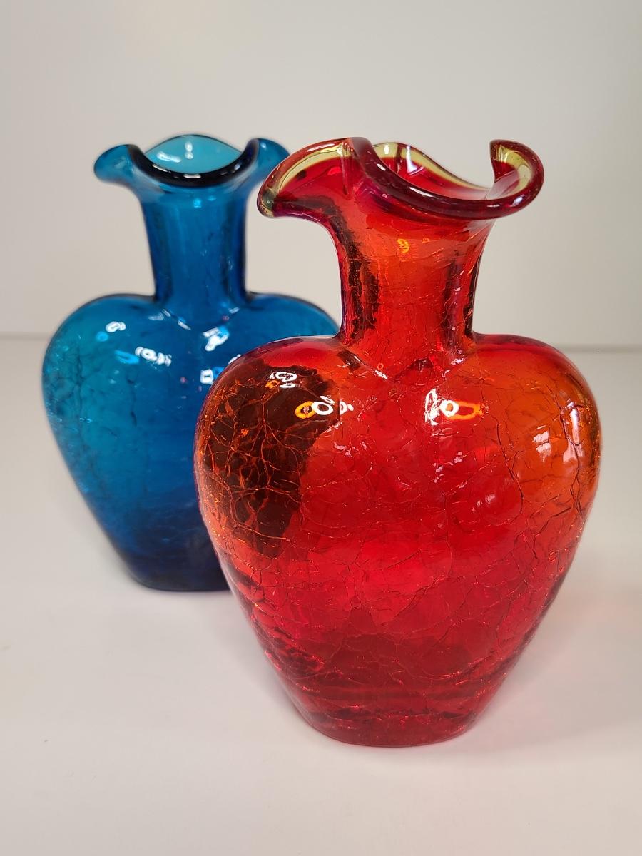 Lot 76: Vintage /MCM Ruffled Edge Crackle Glass (Green Vase is Larger)