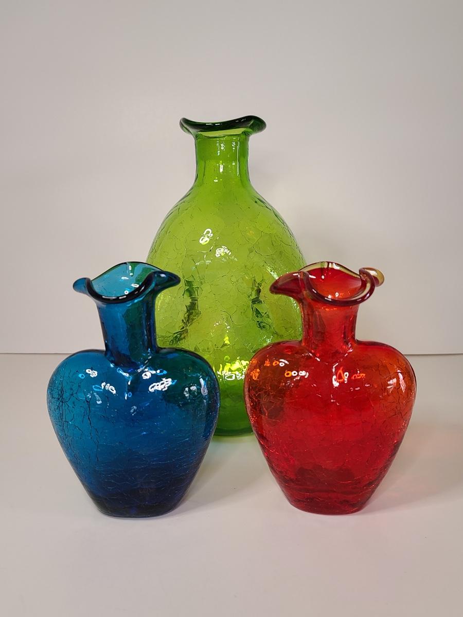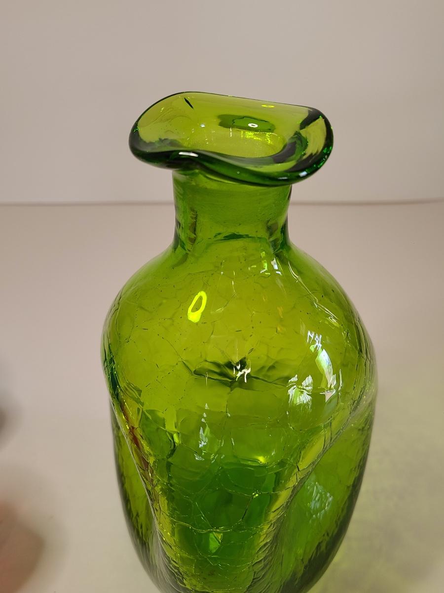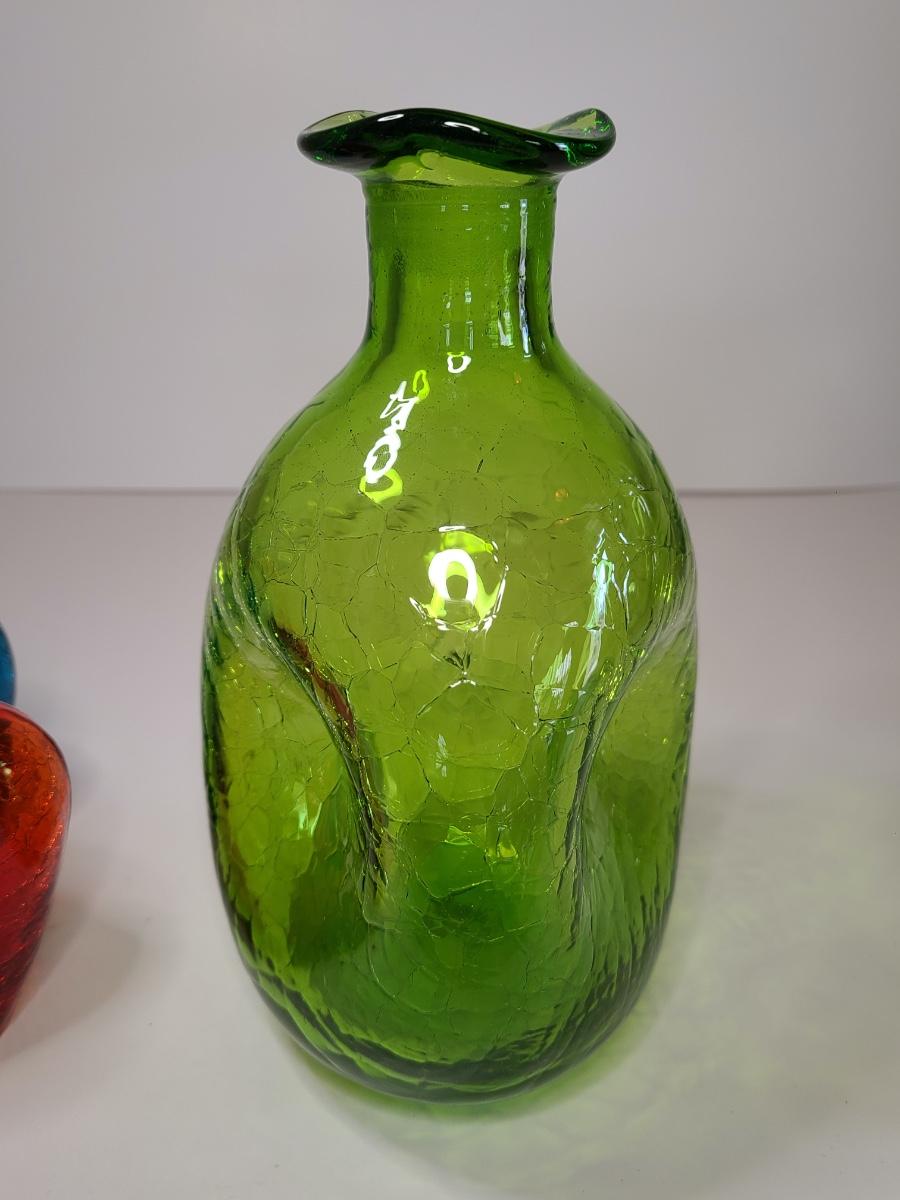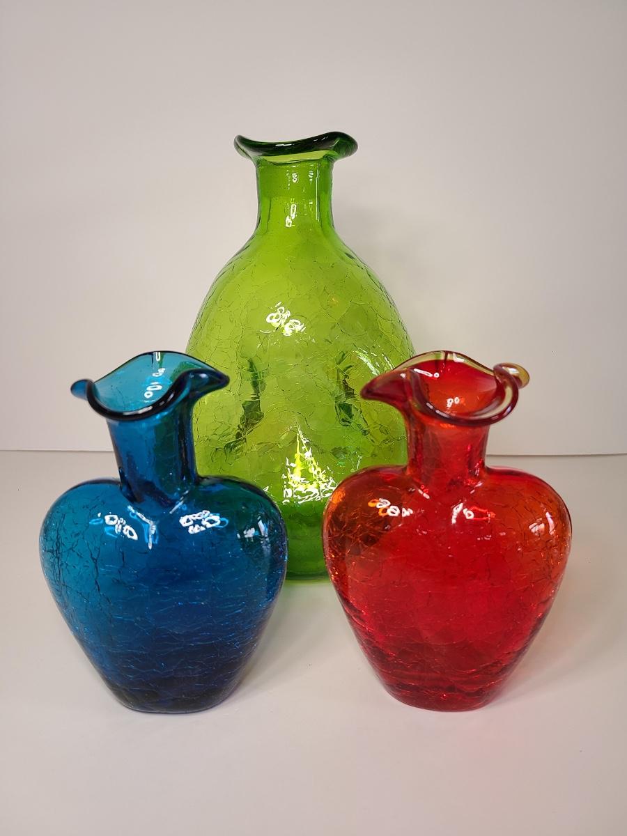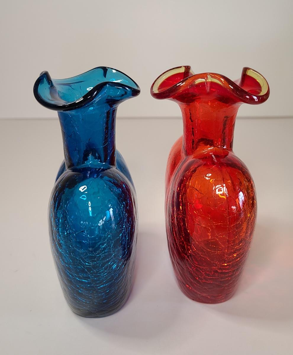 Lot 76: Vintage /MCM Ruffled Edge Crackle Glass (Green Vase is Larger)