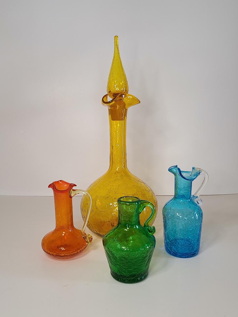 Lot 71: Vintage MCM Crackle Glass Decanter and More