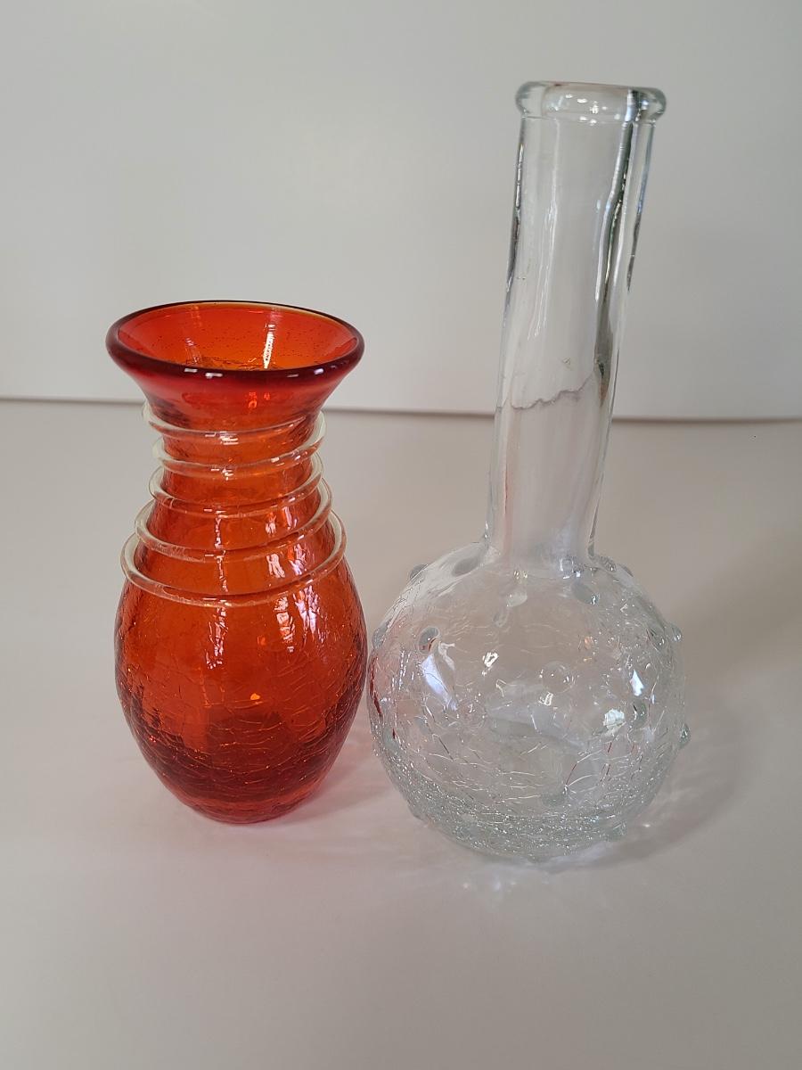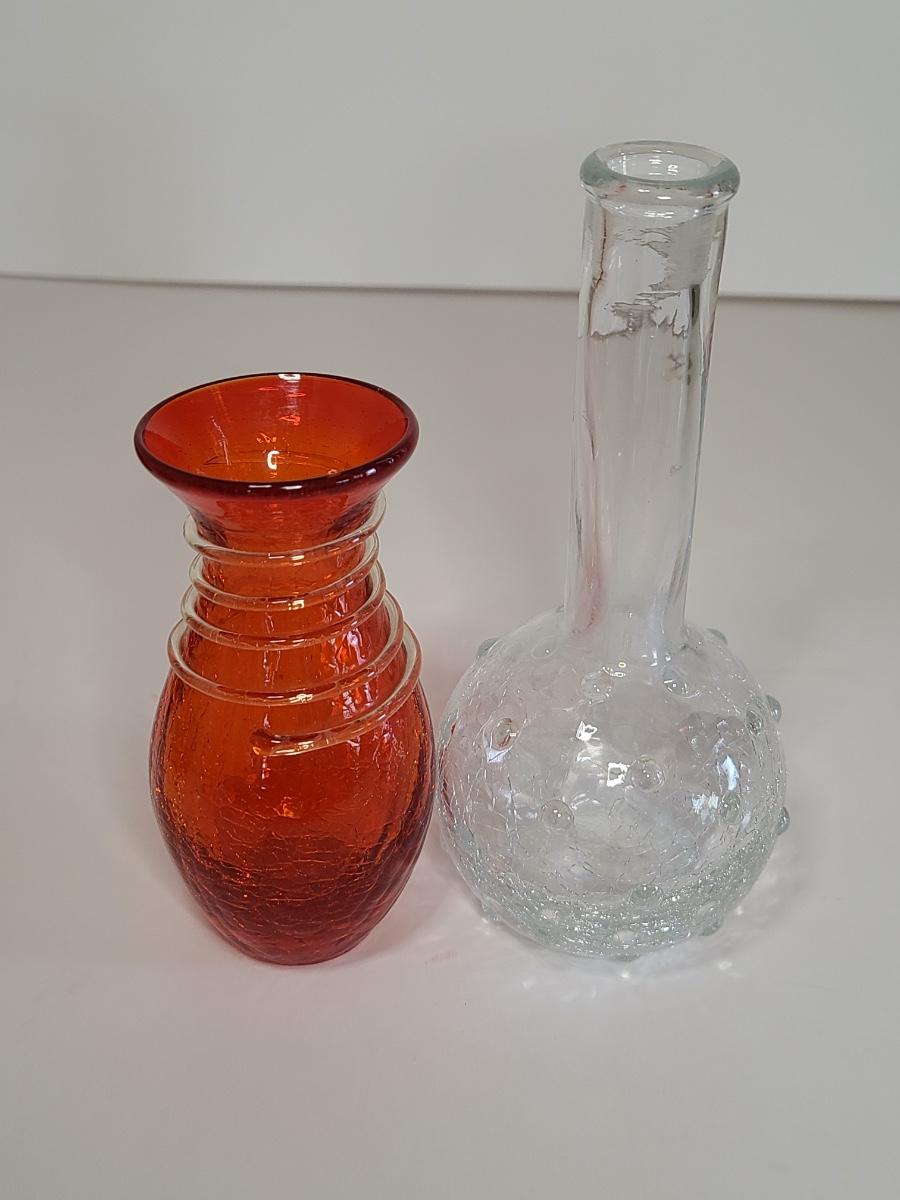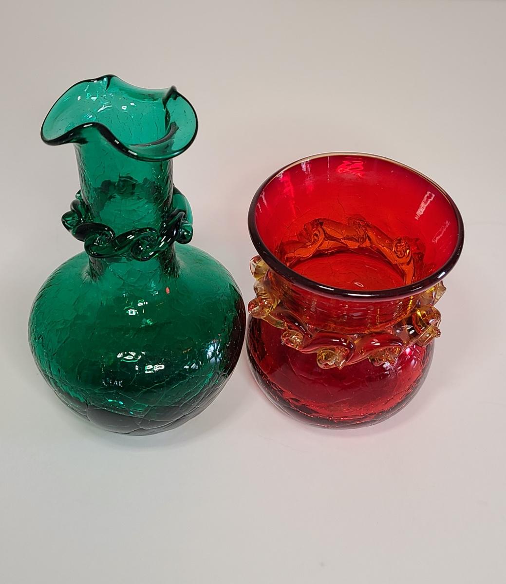 Lot 69: MCM Vintage: Unique Embellished Crackle Glass Vase & Art Glass