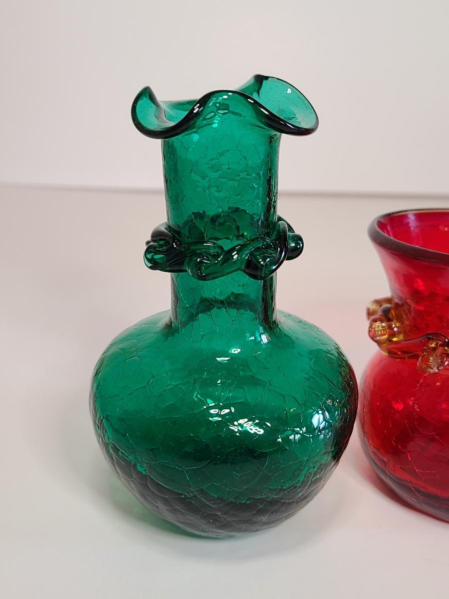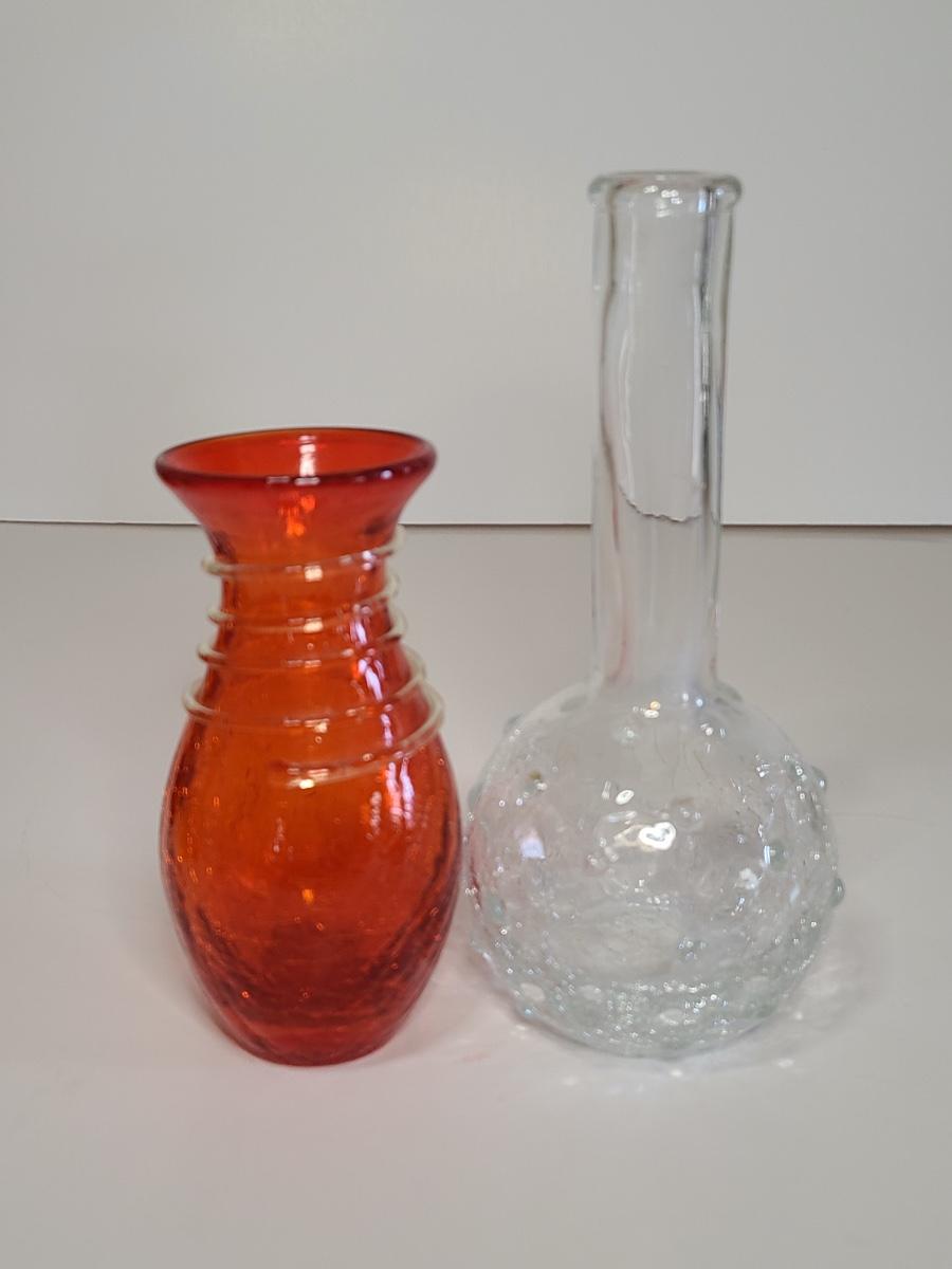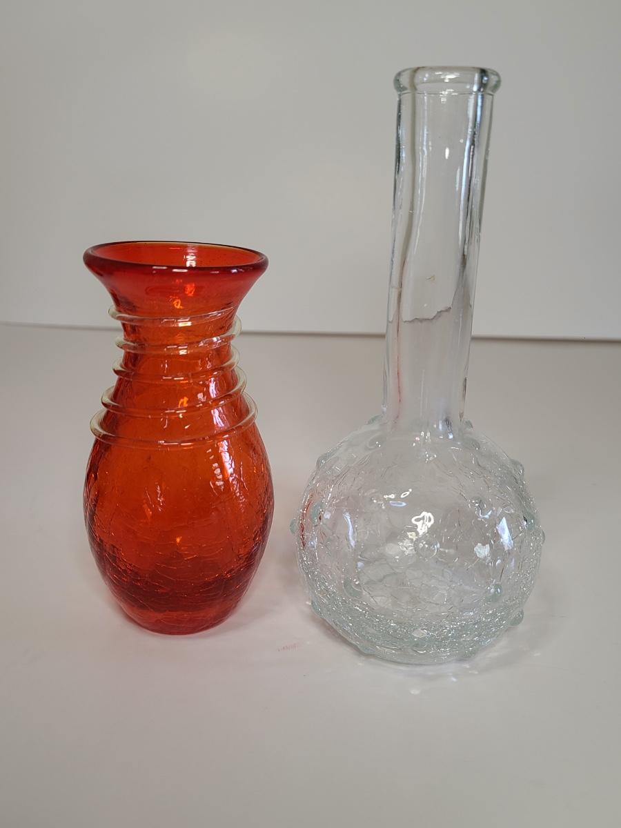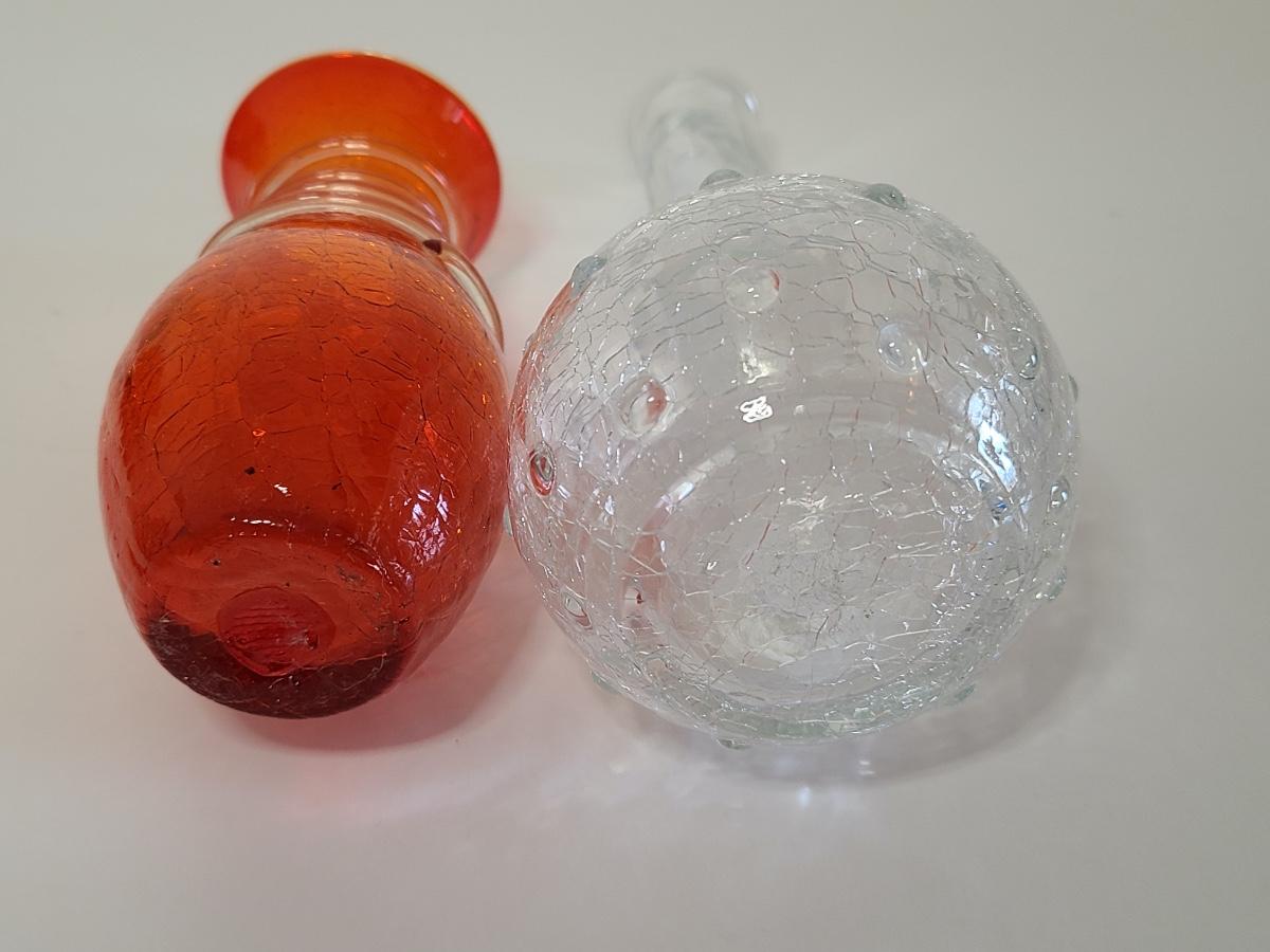 Lot 69: MCM Vintage: Unique Embellished Crackle Glass Vase & Art Glass