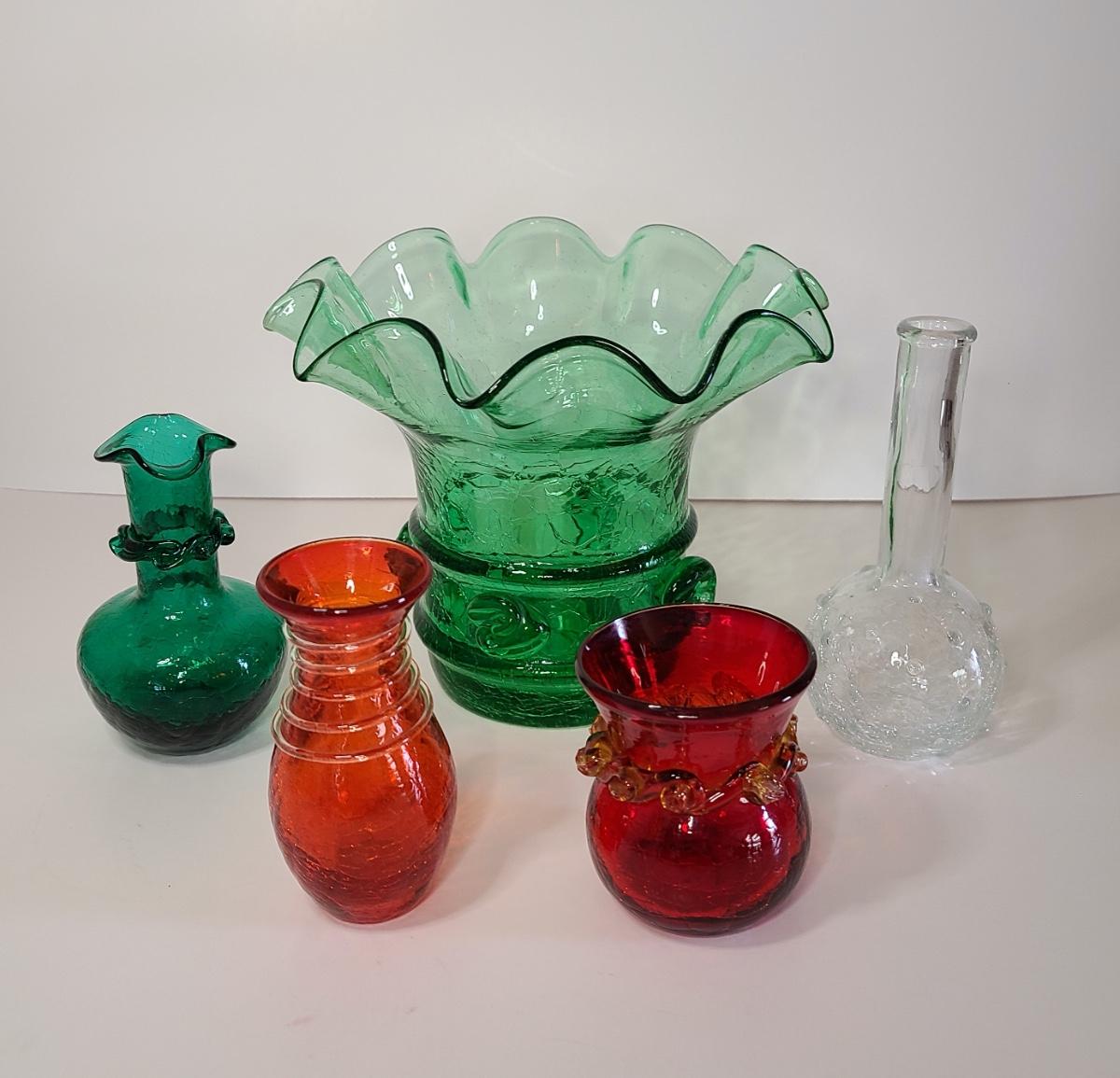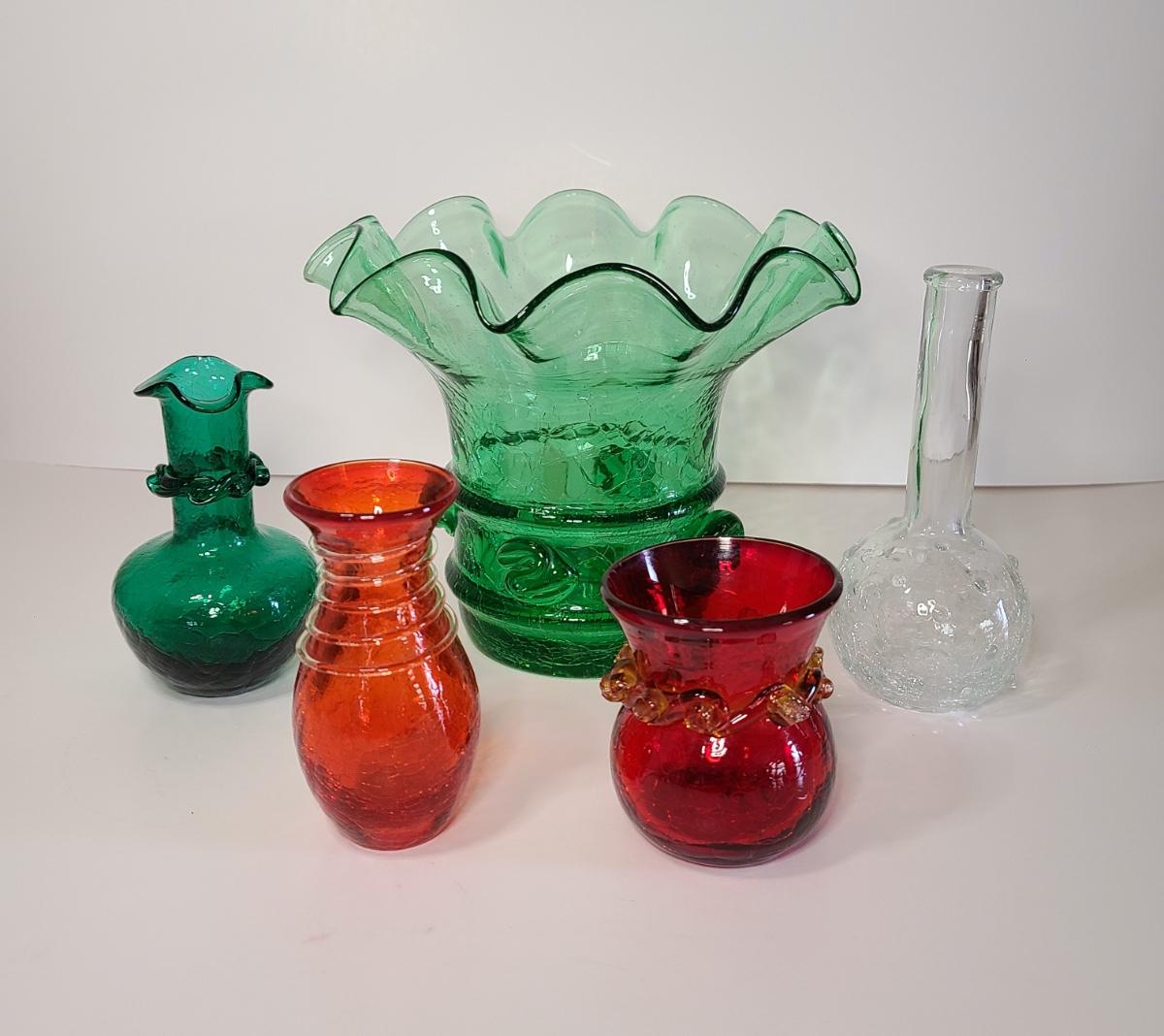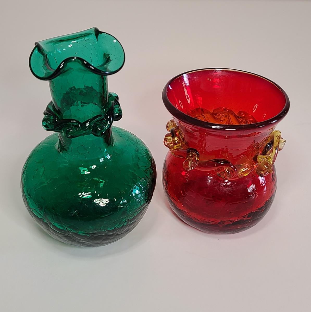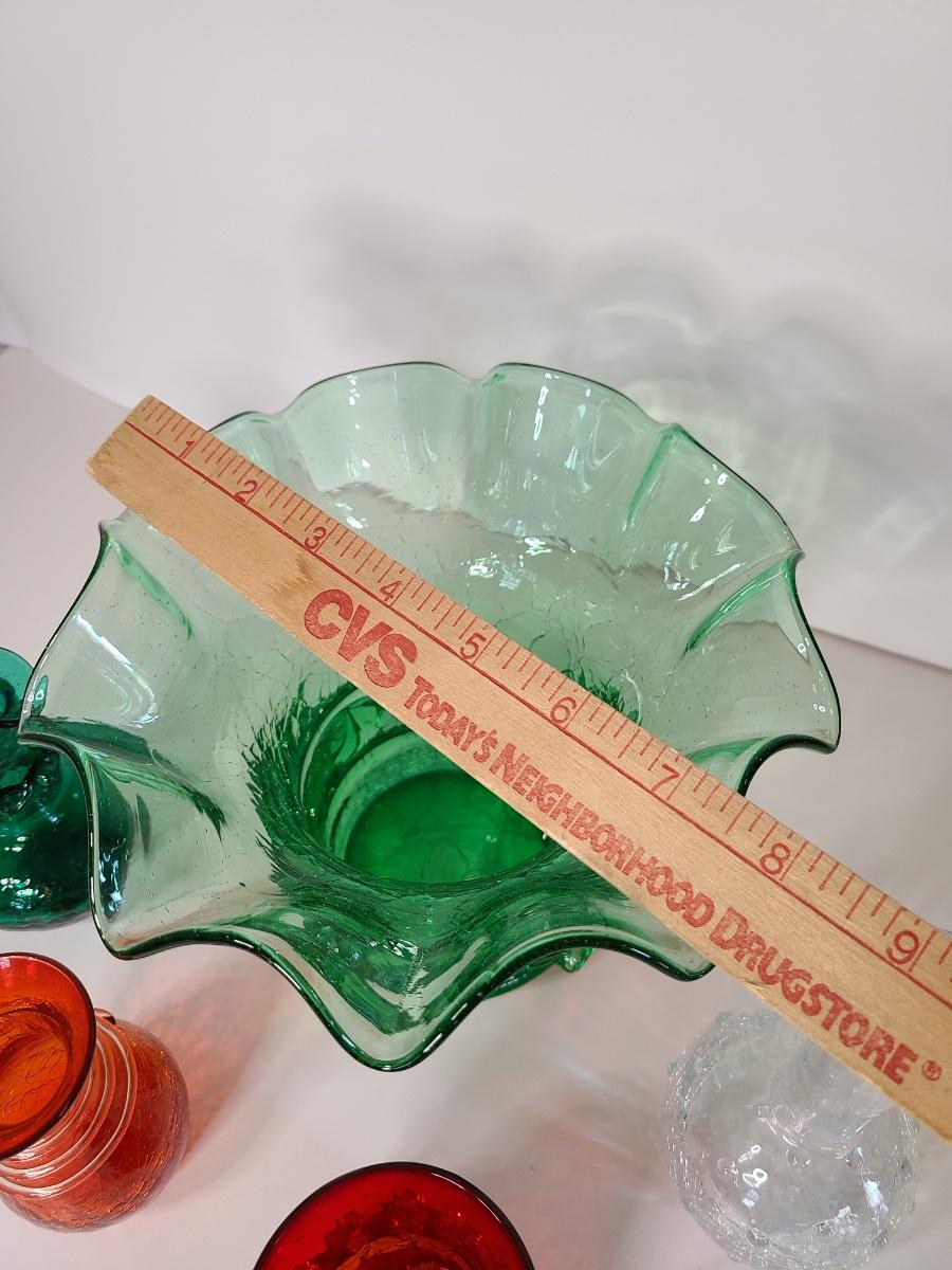 Lovely lot of vintage crackle glass that each look to be hand blown with unique glass embellishments done by the artist The pictures show condition, measurements if taken, and what is included in the lot. Due to the large amount that we photograph and the time frame, we are not always able to take measurements. All items unless noted, are pre-owned and have been used. If you purchased furniture, you must bring help. We do not allow one person to carry large furniture out on their own. Bring help, tools and a truck for the safety of our client’s homes, and your personal safety. Company policy. Thank you.