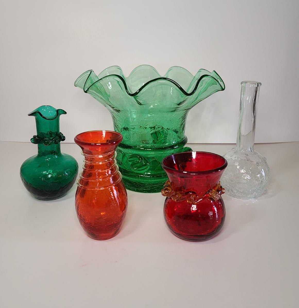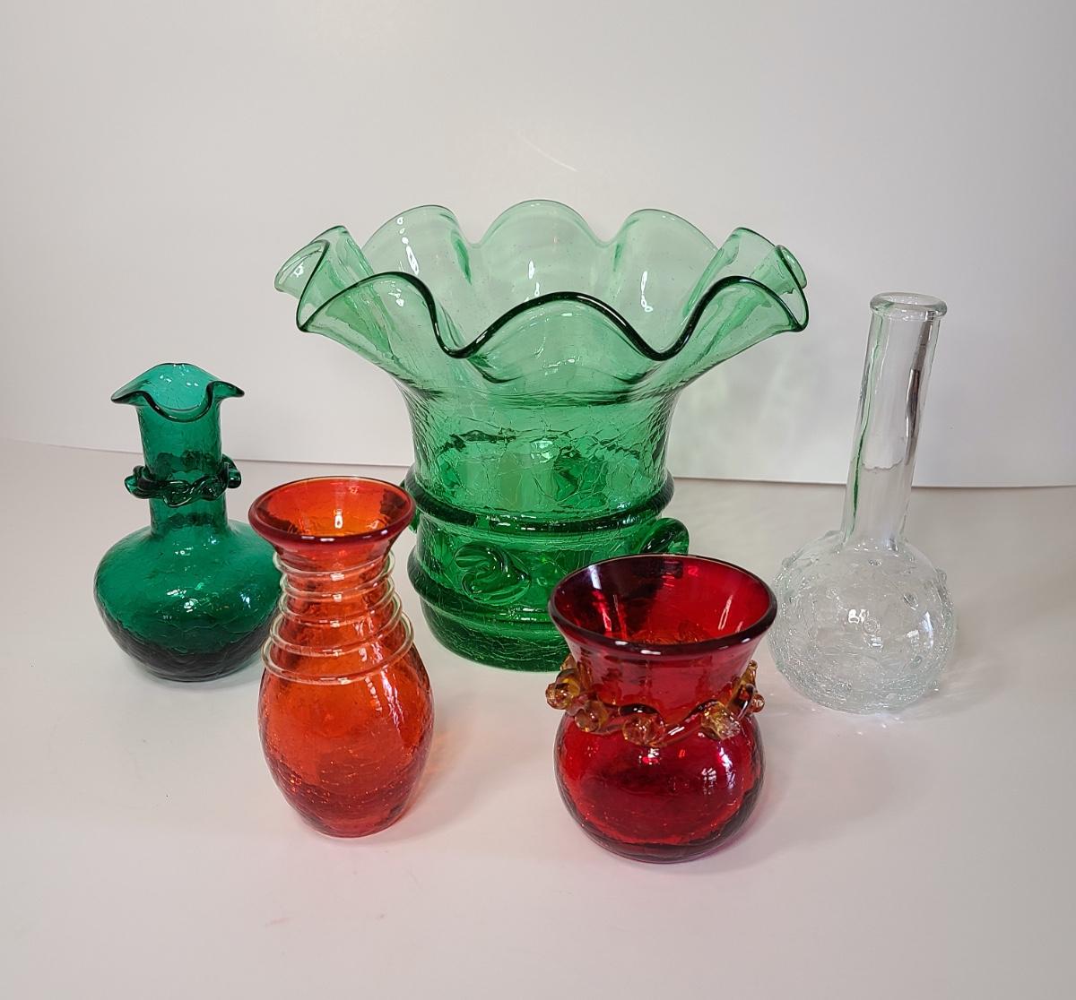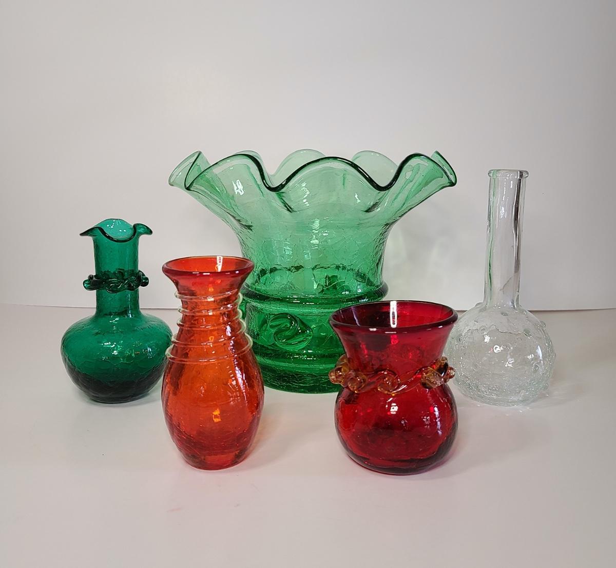 Lovely lot of vintage crackle glass that each look to be hand blown with unique glass embellishments done by the artist The pictures show condition, measurements if taken, and what is included in the lot. Due to the large amount that we photograph and the time frame, we are not always able to take measurements. All items unless noted, are pre-owned and have been used. If you purchased furniture, you must bring help. We do not allow one person to carry large furniture out on their own. Bring help, tools and a truck for the safety of our client’s homes, and your personal safety. Company policy. Thank you.