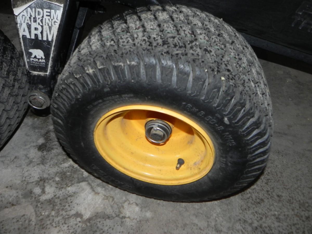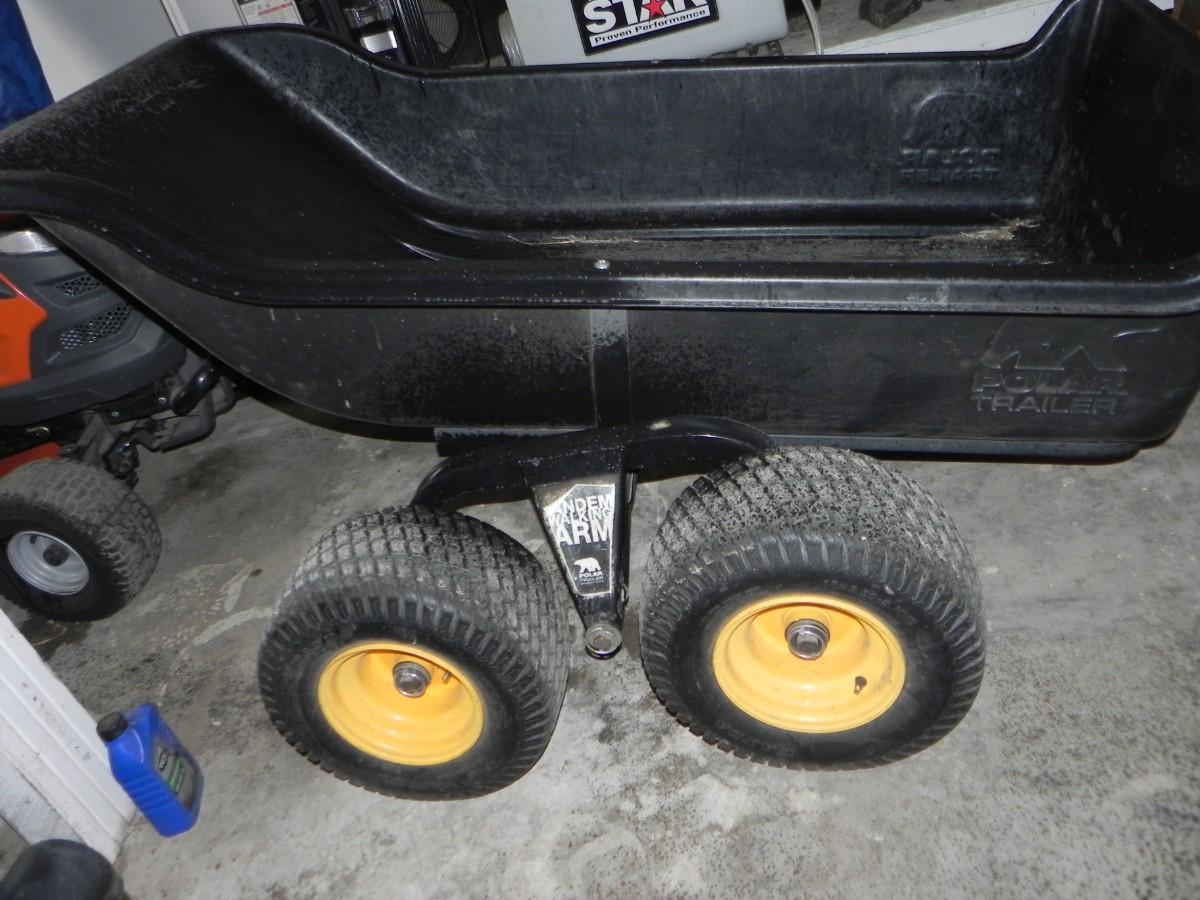 POLAR TRAILER MEASURES 34X72" WHEELS AND TIRES ARE GOOD OVER ALL IN GREAT CONDITION