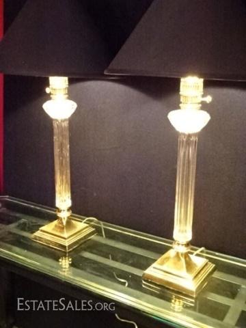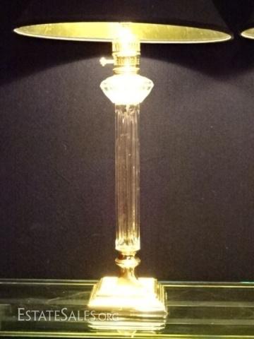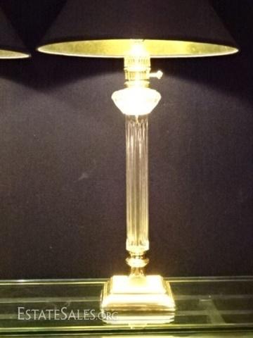 LOT 66D: PAIR NEOCLASSICAL CRYSTAL AND BRASS LAMPS