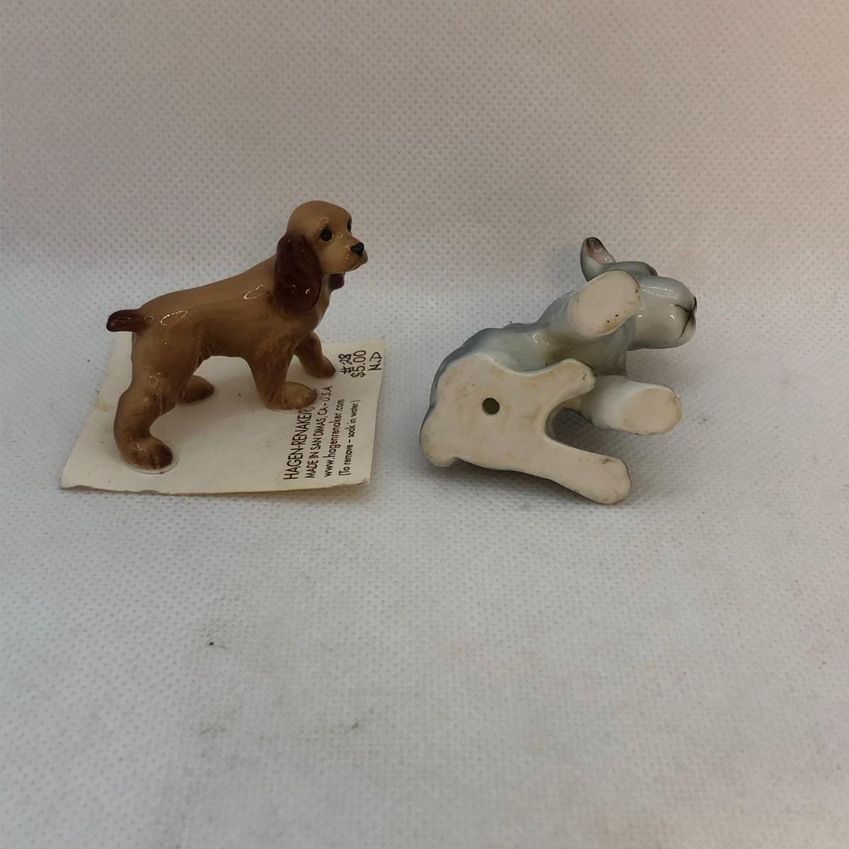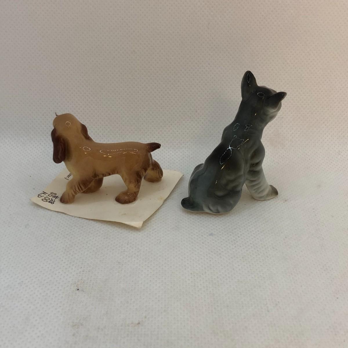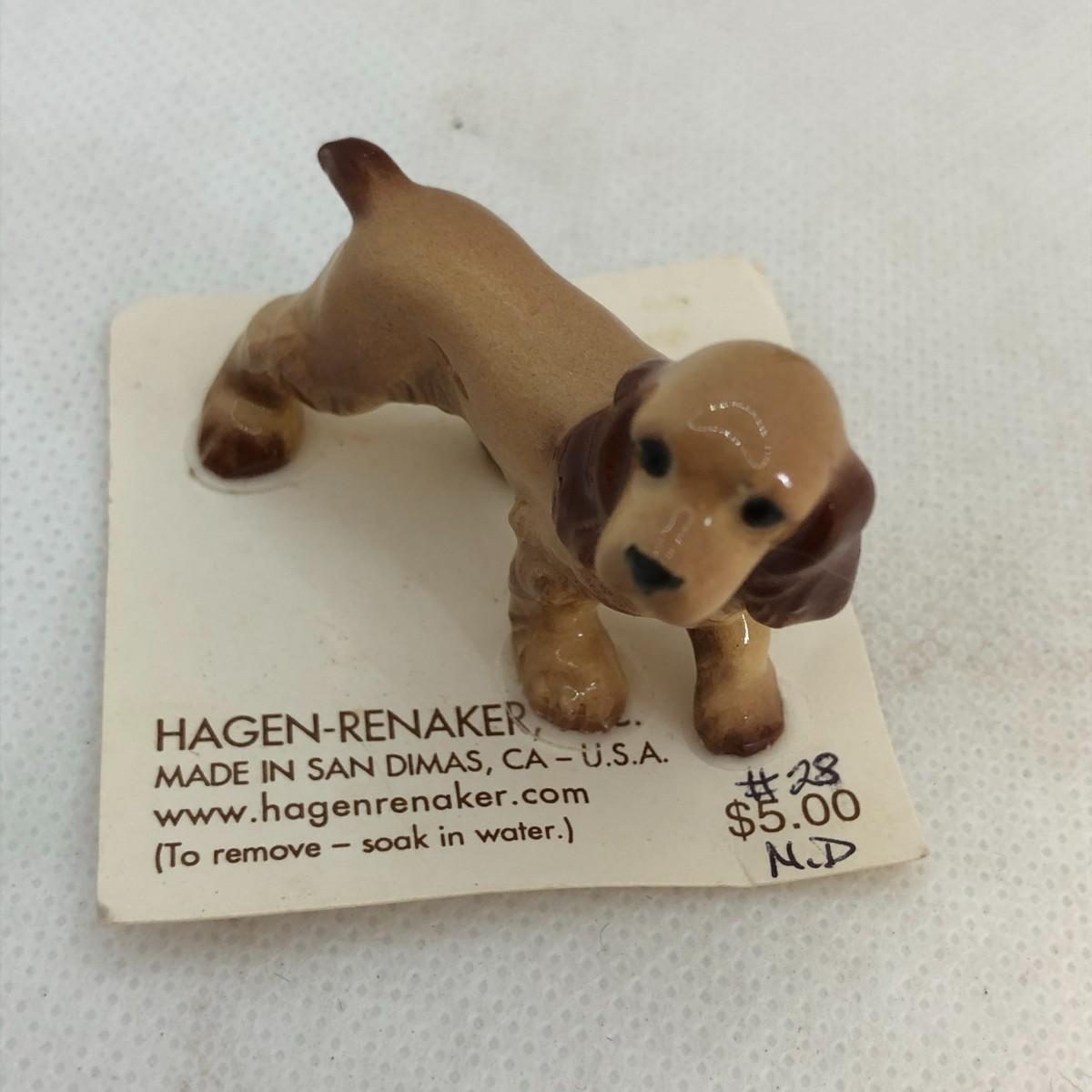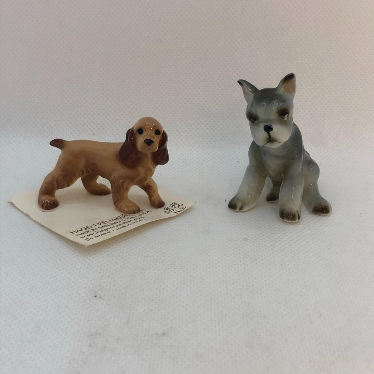 One is by Hagen-Renaker (the brown cocker spaniel) and the other is unmarked. Both are in excellent condition and made of ceramic. The taller dog is about 2.25" tall.