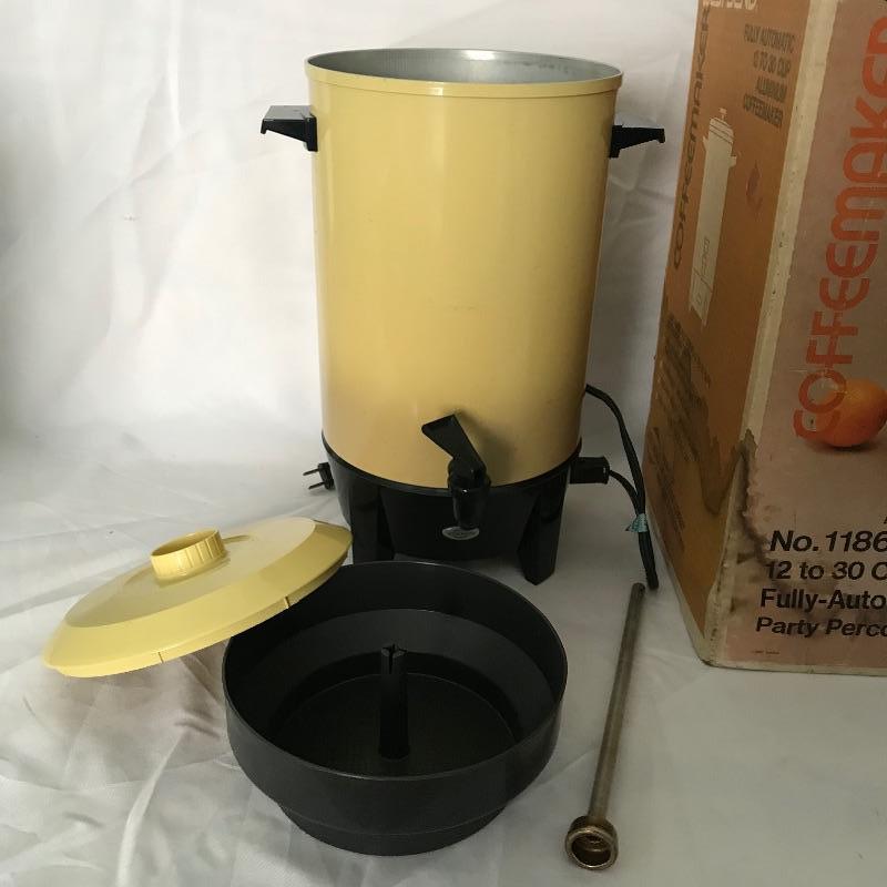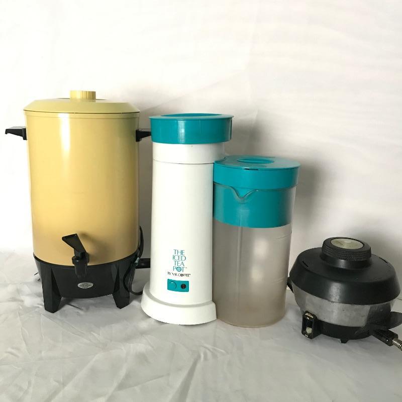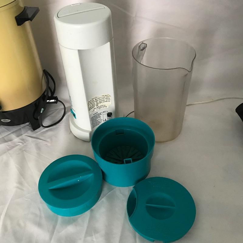 Perfect automation from everyday to special gatherings. Mr. Coffee’s The Iced Tea Pot with brew basket and lid and also the pitcher lid for easy storage. Next, West Bend’s Harvest 12-30 Cup Fully Automatic Party Percolator; this is a cool looking retro appliance! Lastly, a Sunbeam model E-3 B-3 Automatic Egg Cooker with space for seven eggs. All three turn on and heat quickly. Lot also includes a Brita small cylinder pitcher with six unopened filters, previous owner stated it was only used a couple times. Get the best water for a long time and also save space on your counter or fridge. Local pick up only.