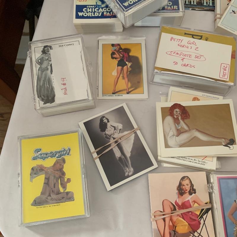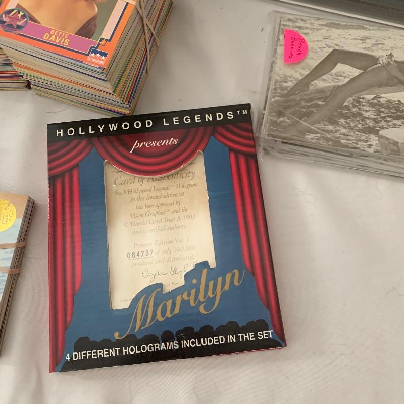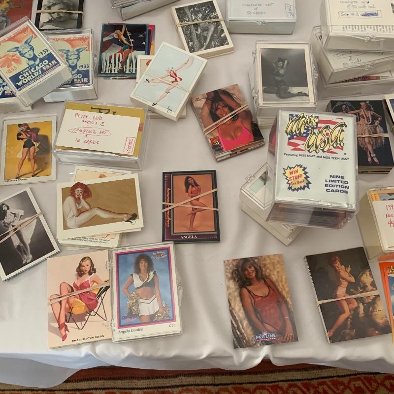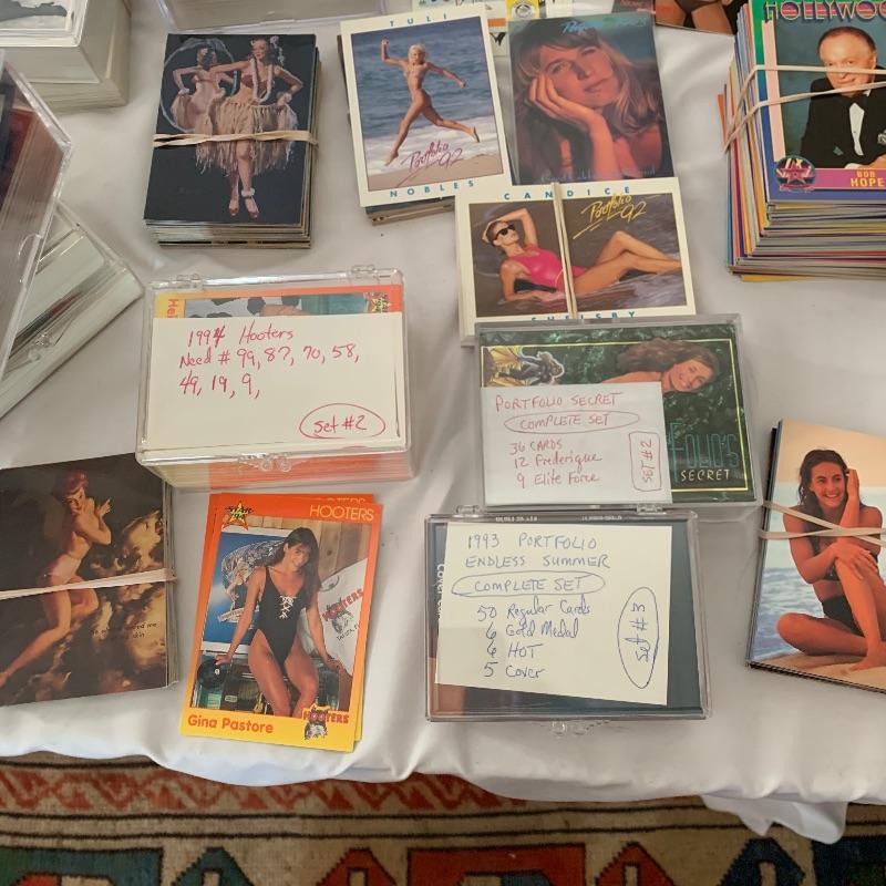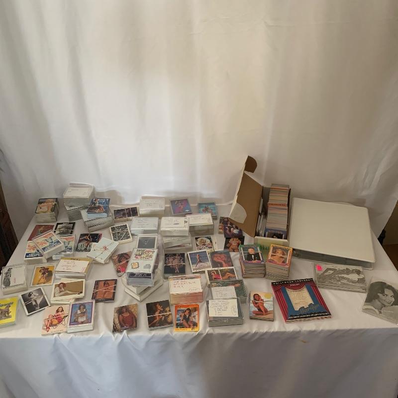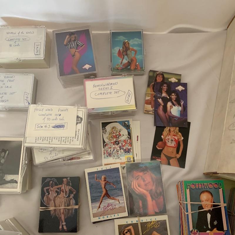 .large collection of Hollywood Starline collector cards from early 1990’s. Also in this lot are Hooters Collector cards, Portfolio sets, Marilyn Monroe collector card set, Petty Cards, Hollywood Pin UPS, Benchwarmers, endless Summer 1993, Women of the World and so many more. Sets are not verified and there are lots of duplicates.