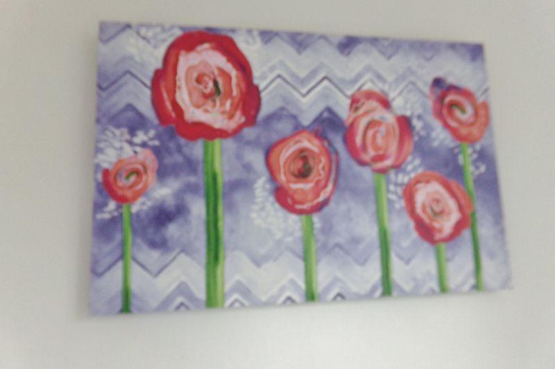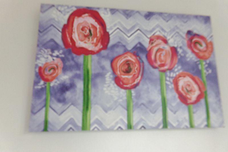 FLOWERS ARE MATERIAL ON WOODEN FRAME 36" X 24"