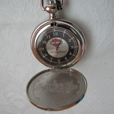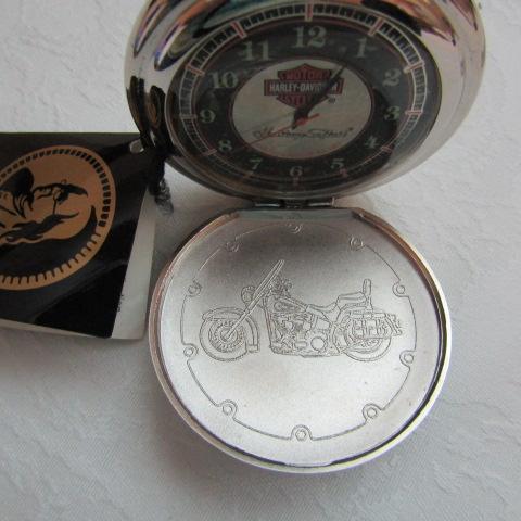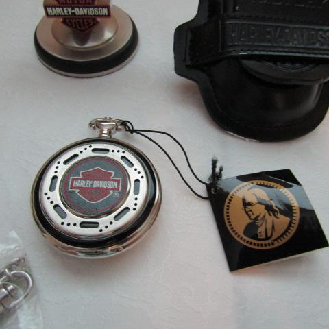 LIKE NEW WITH TAGS, INCLUDES LEATHER CARRY POUCH ND CHAIN FOR WATCH,. ALSO COMES WITH A HARLEY METAL ORNAMENT