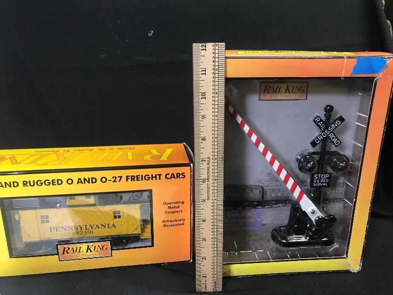 Rail King Pennsylvania 492401 freight car, and a highway crossing gate. Please see all pictures for content of the lot, condition of the lot, and measurements if taken. Pictures are the best representation of the items listed and items are untested unless indicated in description. Thank you for looking and have fun bidding!
