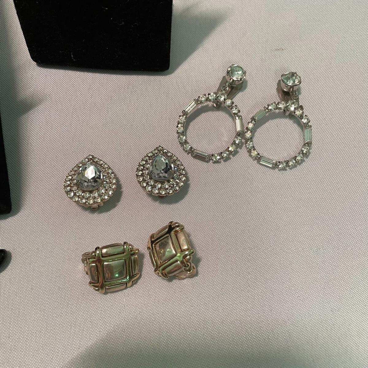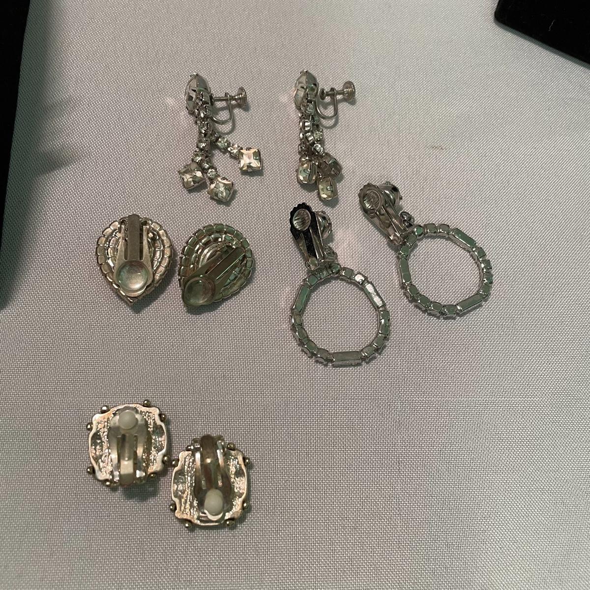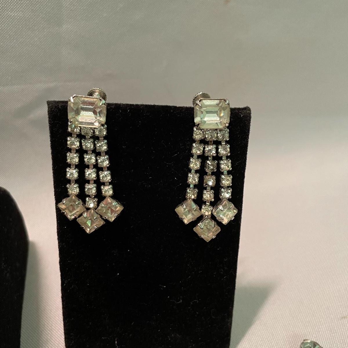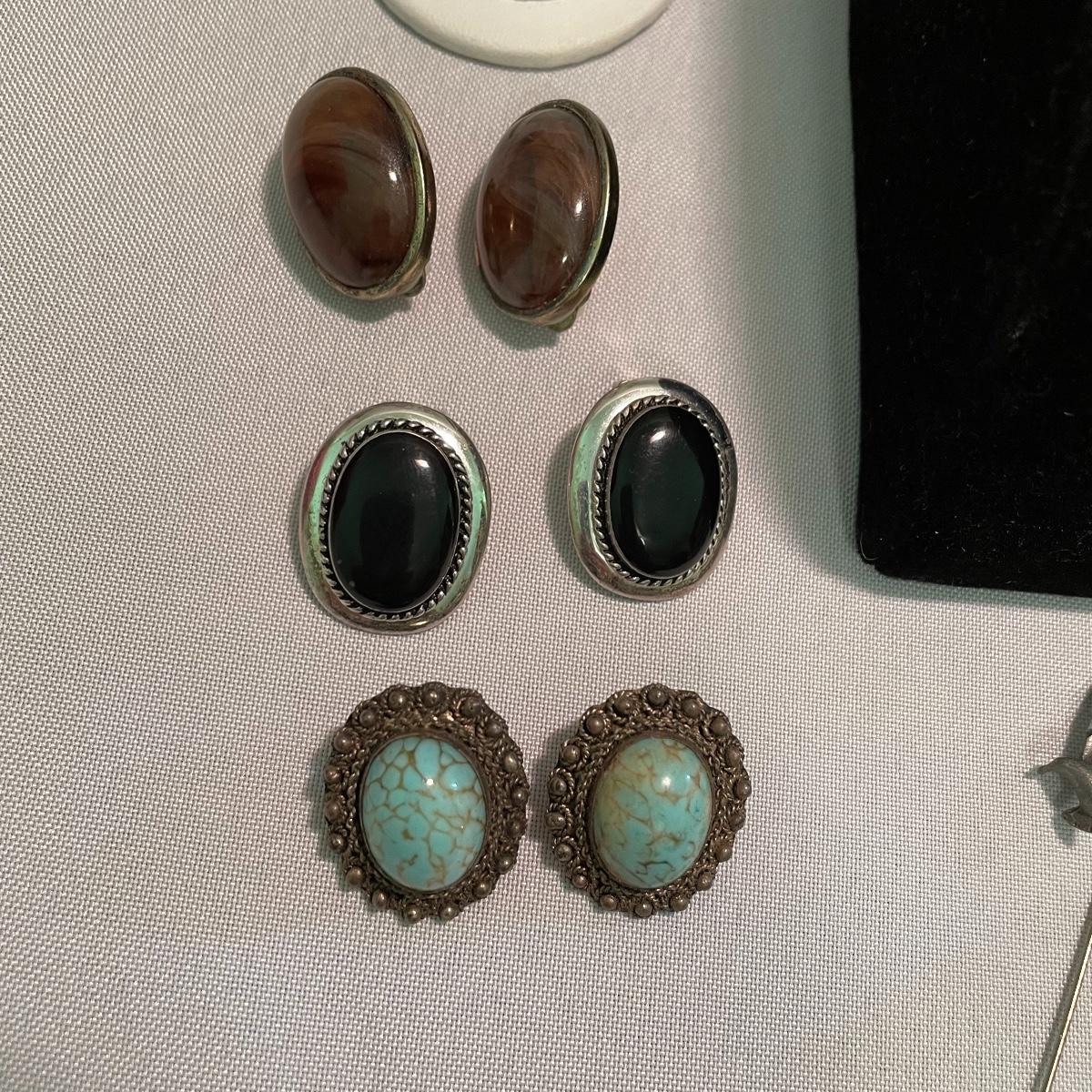 Here’s a great mix of subtle and bold to highlight your look. Lot features nine brooches including a fascinating sterling piece. Lot also includes eight pairs of clip earrings and two delicate looking pins. Shipping available.