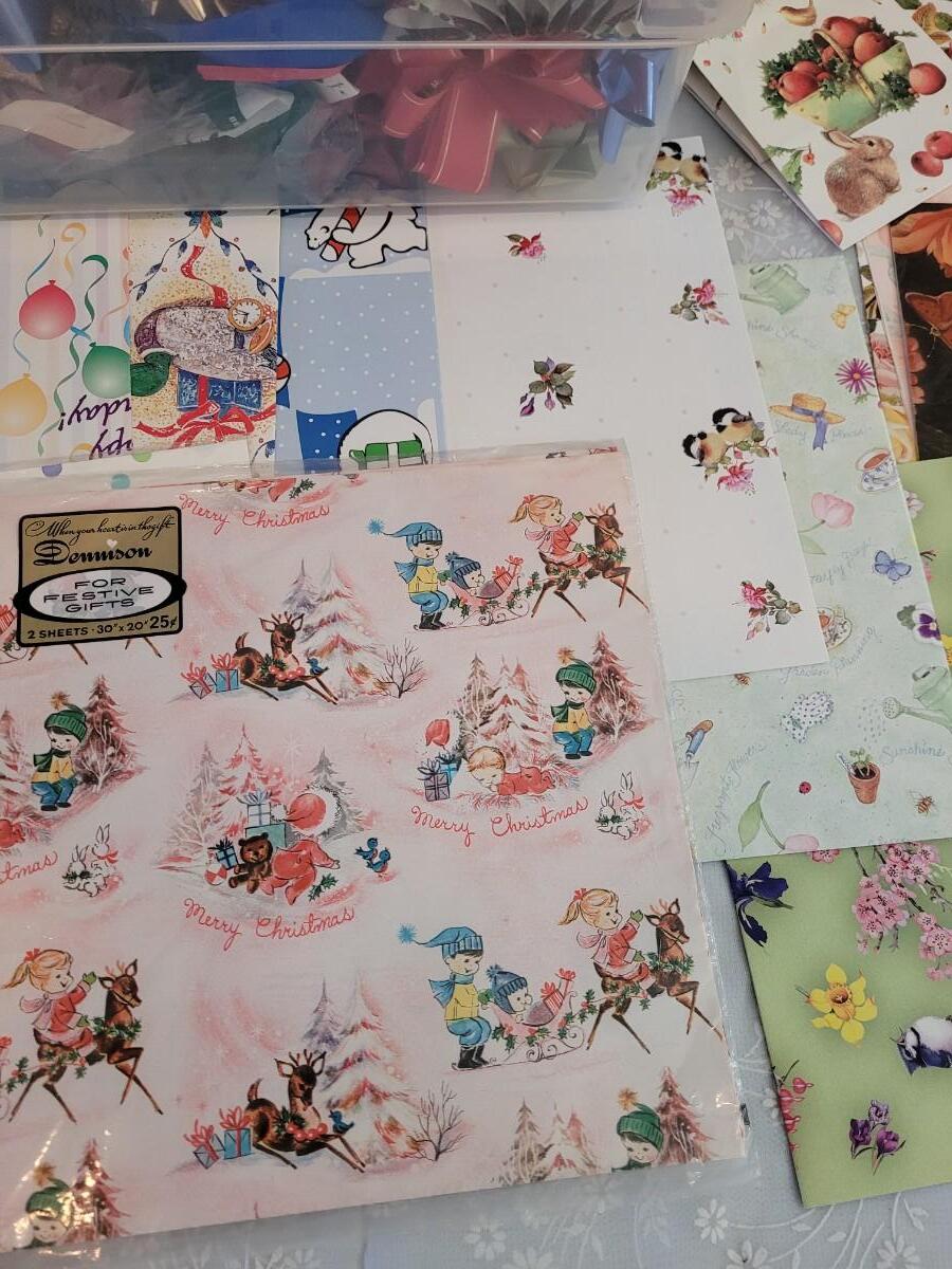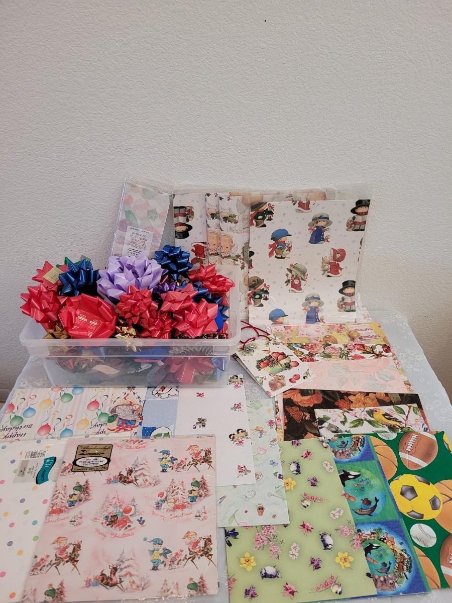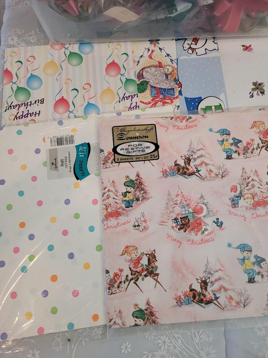 Lot 67: Vintage Hallmark Giftwrap, Tissue Paper and Bows