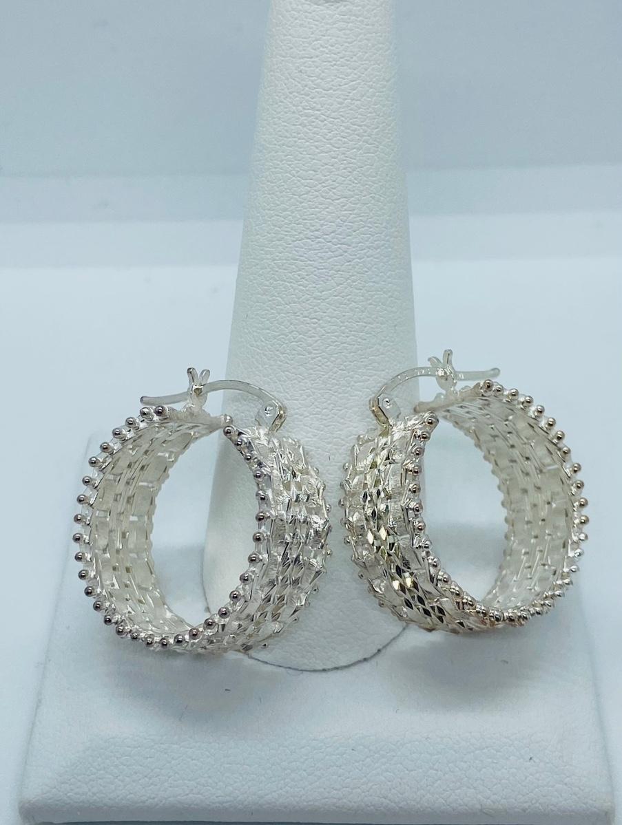 Lot 67: New 10.5g 925 Imperial Silver Cobblestone Pierced Hoop Earrings
