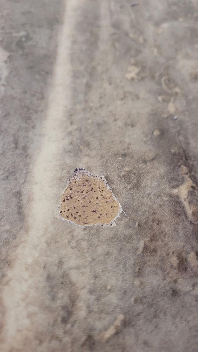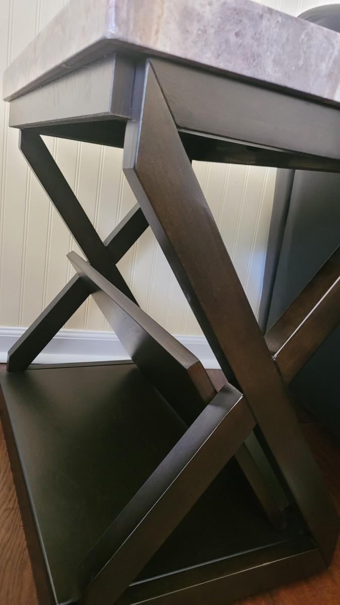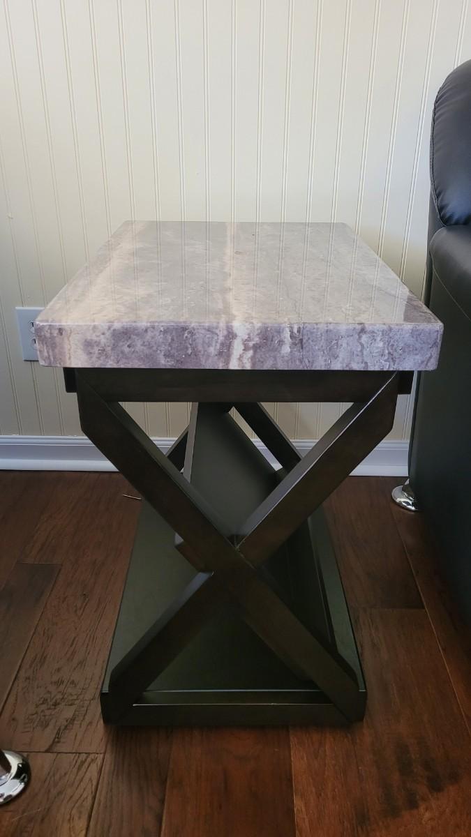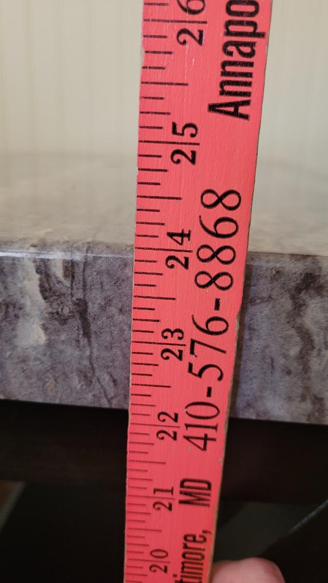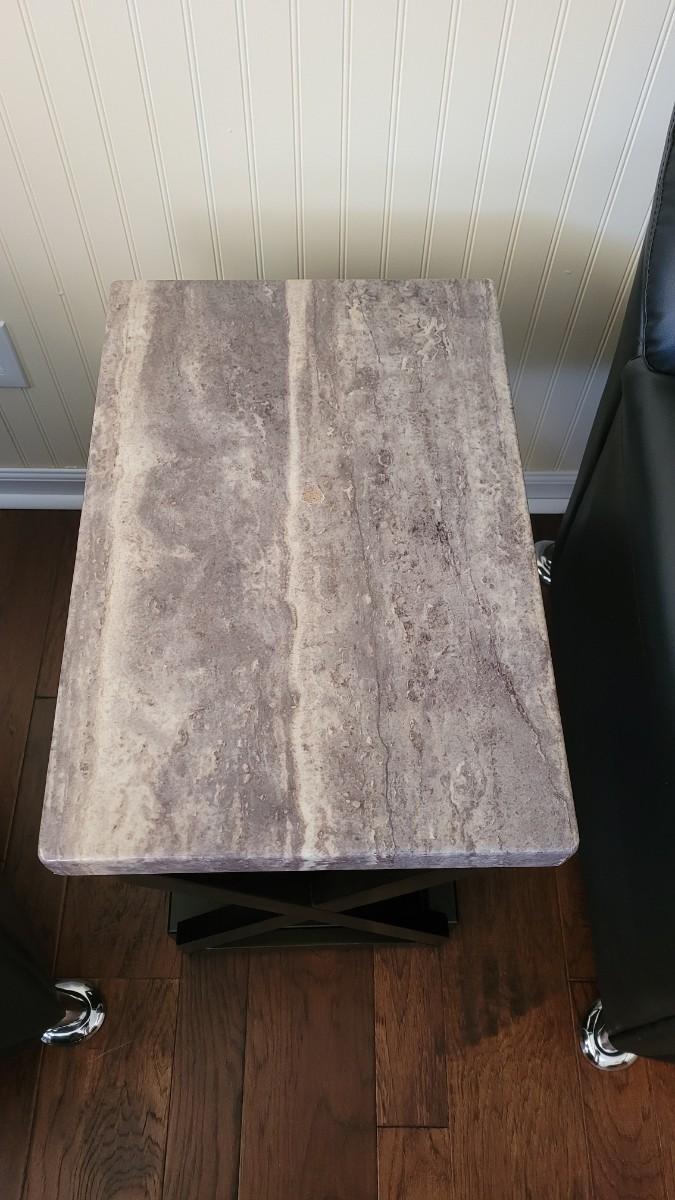 Has a spot that Faux marble is missing. It is the tan spot, it blends in with the table so it is hard to see.