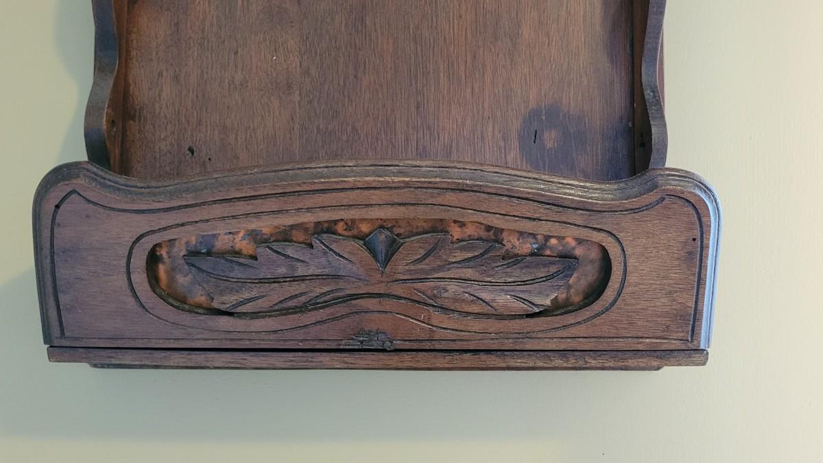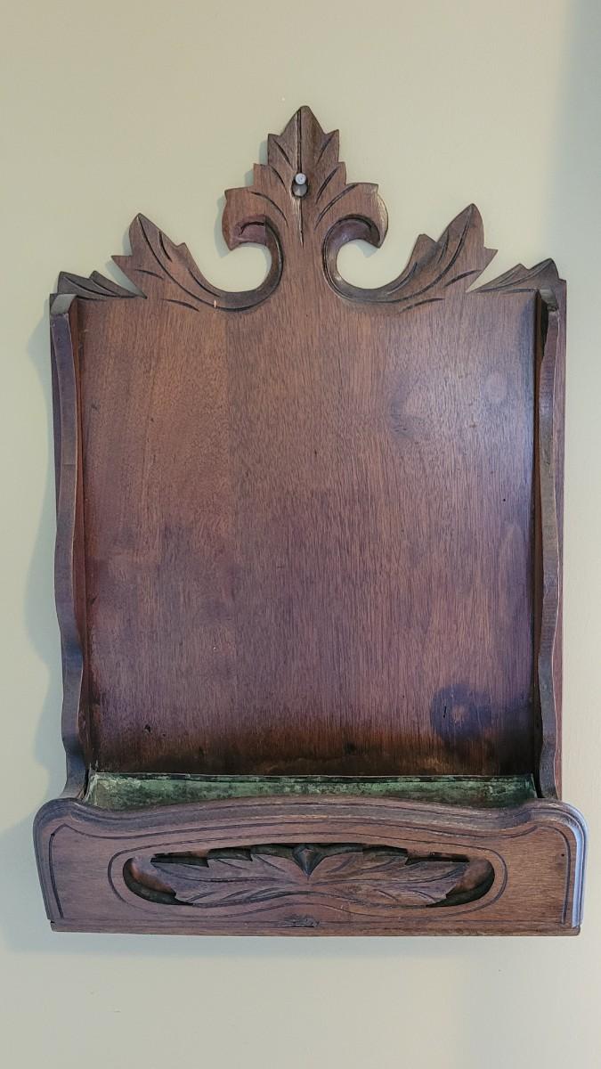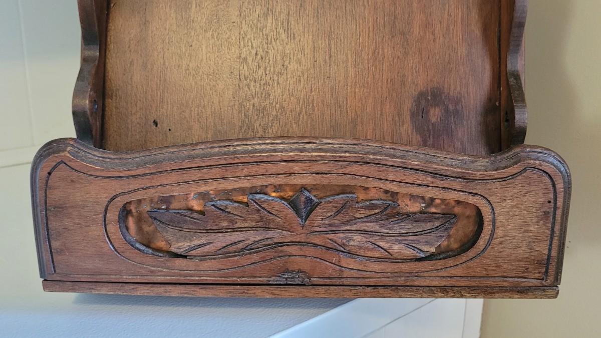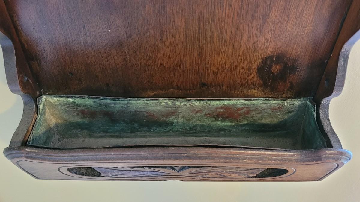 Lot 67: Antique Handcarved Wood Pocket with Copper Lining