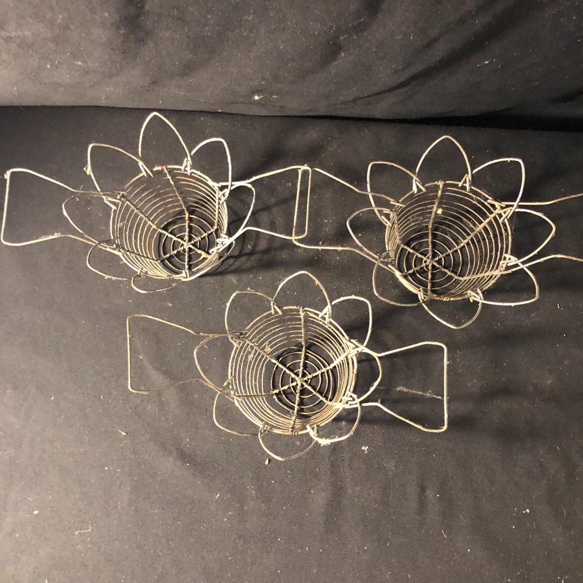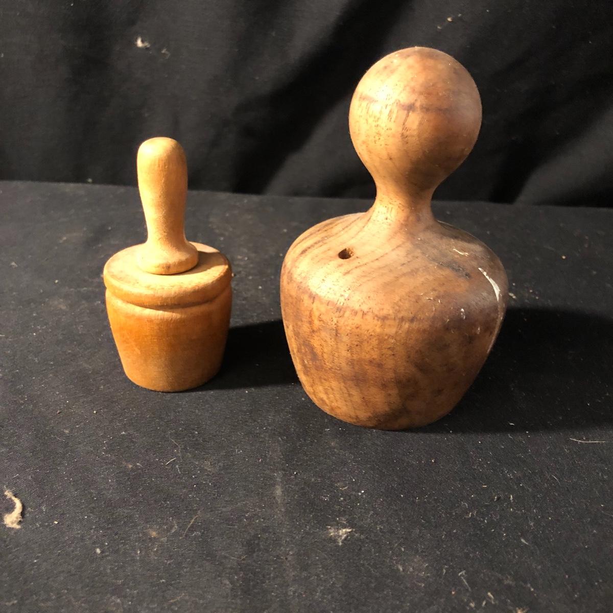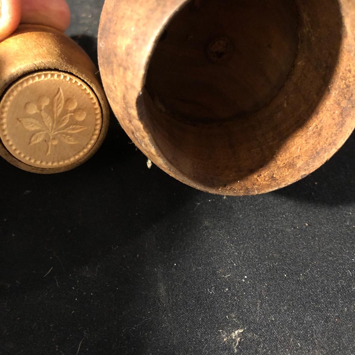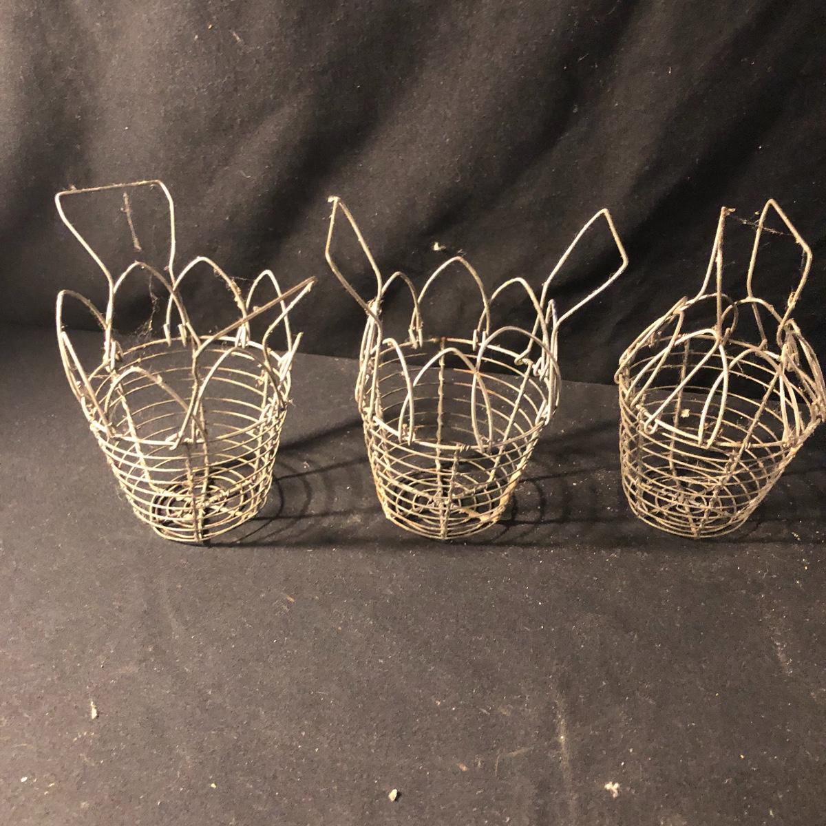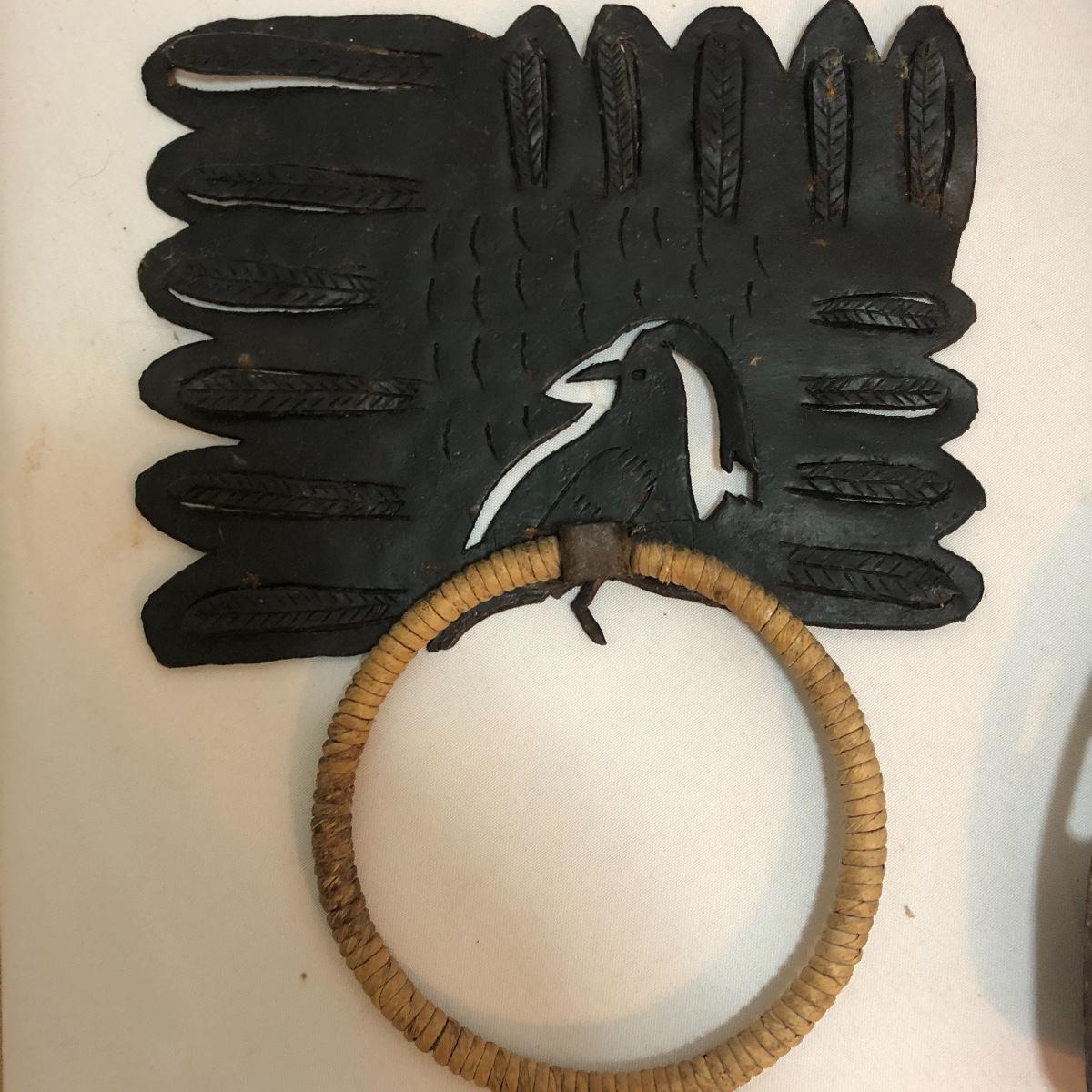 A eclectic mix of Americana items. Lot includes hand carved wooden bowl, copper bowl, butter stamp, large wicker basket with handle, wooden utensils, three wire baskets, Charcoal Companion cast iron press, two cast iron trivets, wooden butter press and a metal wall hanging with towel ring. Handmade wooden bowl measures 9.5” x 23” x 3.5”.