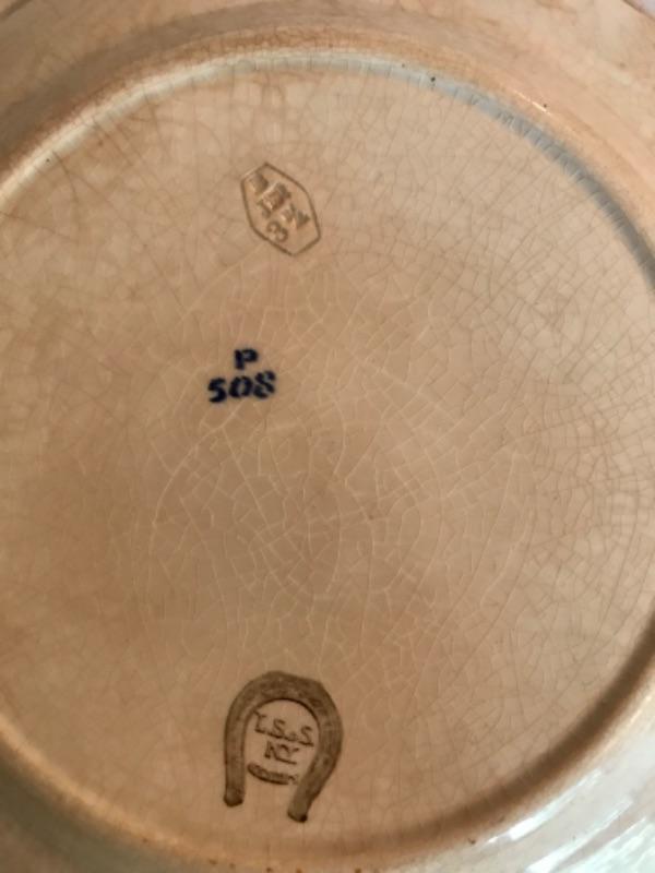 Made is Saxony and imported by L. Strauss and Sons Co. of New York around the turn of the 19th century. Rare horseshoe mark used by this company between 1895 and 1916. Measuring 8-7/8” . One plates does have a crack and a small chip on back(see pictures) some crazing due to age.