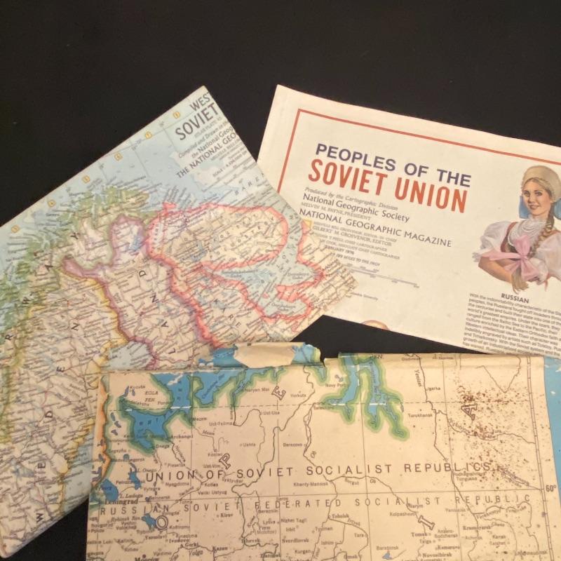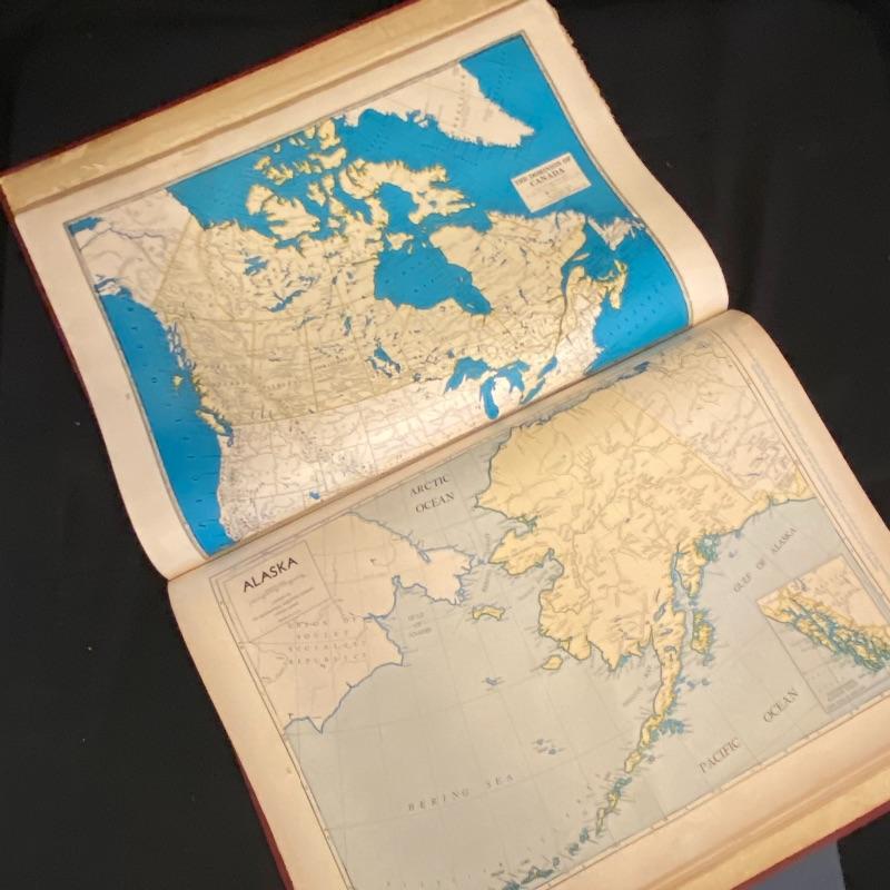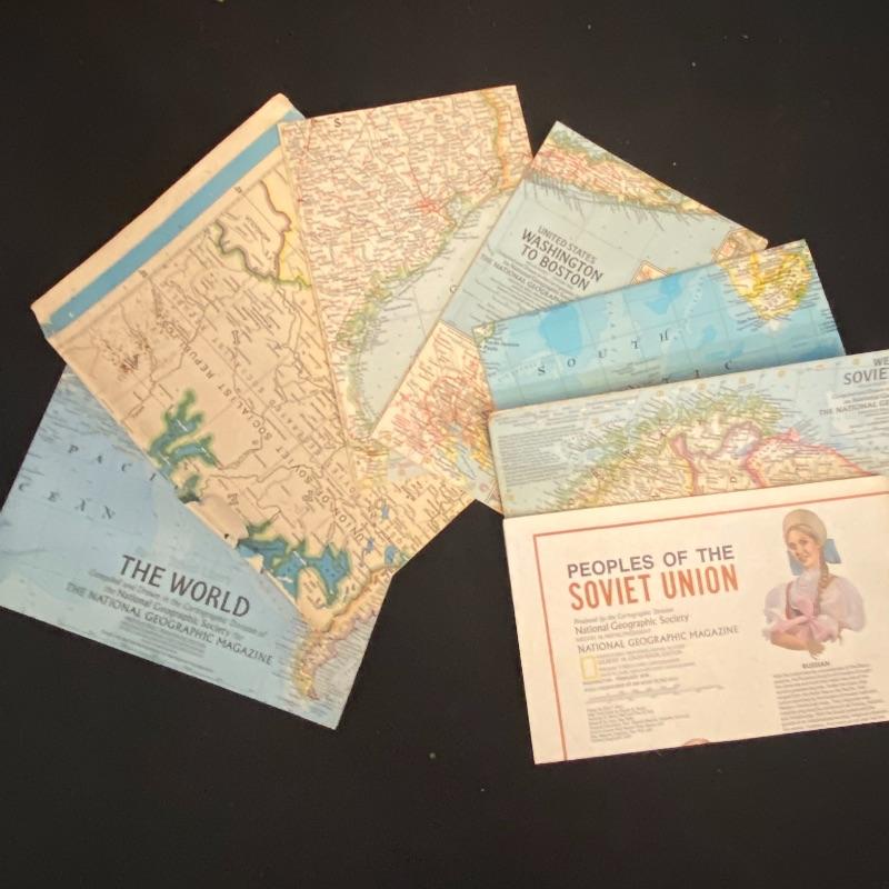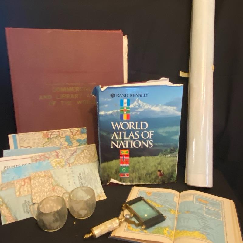 Calling all map lovers! This spectacular lot includes eight foldable maps, three focusing on the Soviet Union. Three world atlas’s, largest atlas measures 22x16. Full size Rand McNally world map. Stunning world glassware and a map magnifying reader that will make you look the part. See photos for details on wear and tear. Shipping only.
