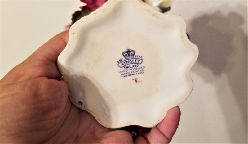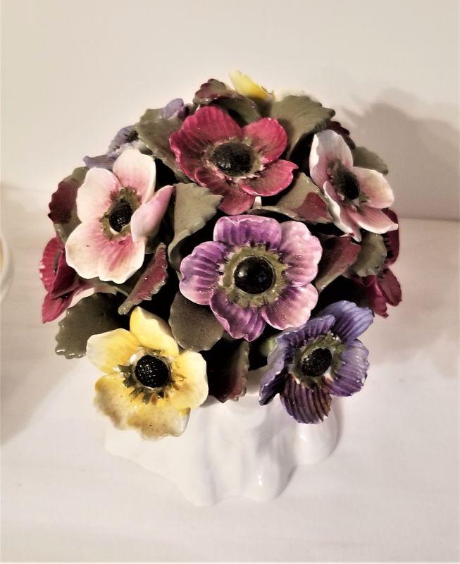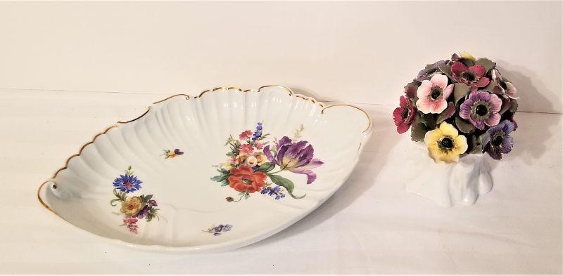 2 piece lot - English Aynsley Floral Porcelain Bouquet (4" tall) and a pretty Porcelain bowl with floral motif - marked " Richard Ginoti - Italy." Bowl is 11" long. Good condition.