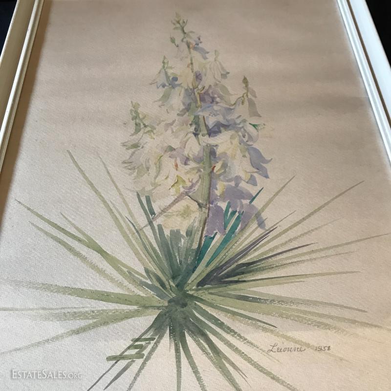 Beautiful framed floral watercolor makes a great addition to your collection. Signed Leionne. 22"l x 16"w. See photos for details. Shipping available or local pick up in Flat Rock, NC.