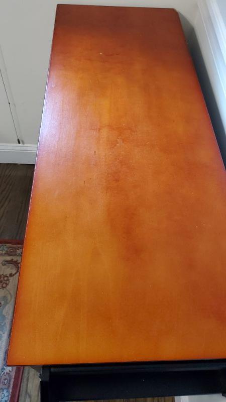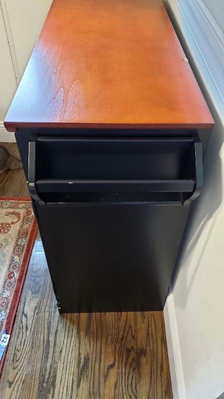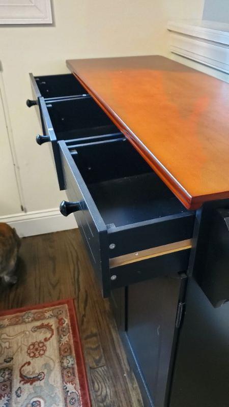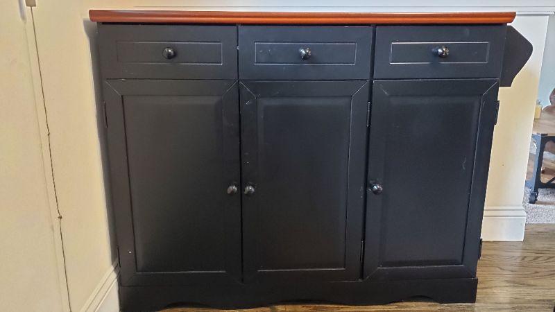 Cabinet with three drawers and plenty of storage on bottom. Some wear noted. Heavy, bring help to move.