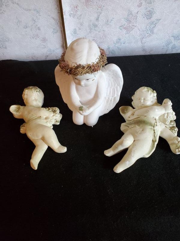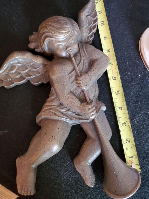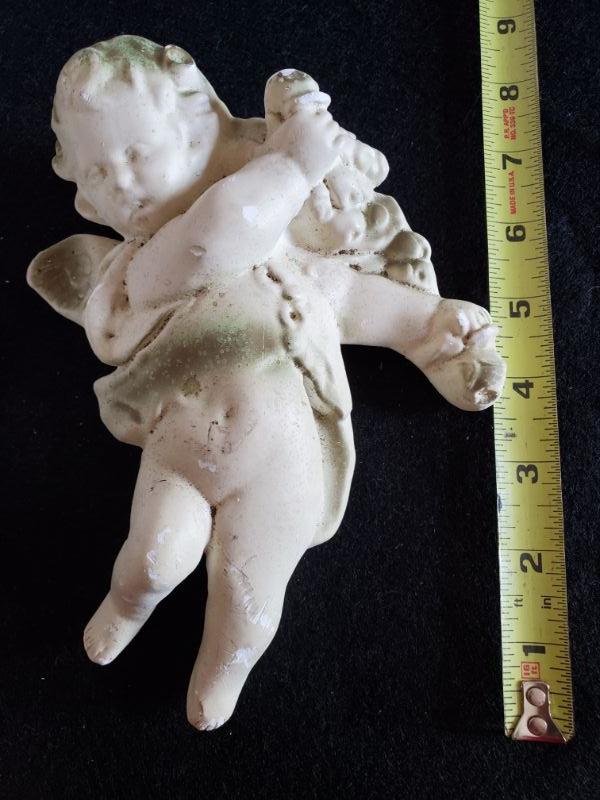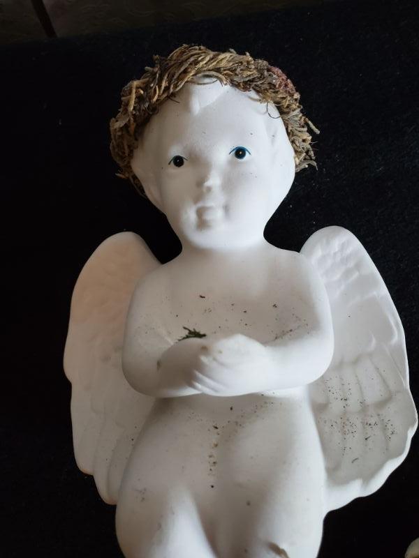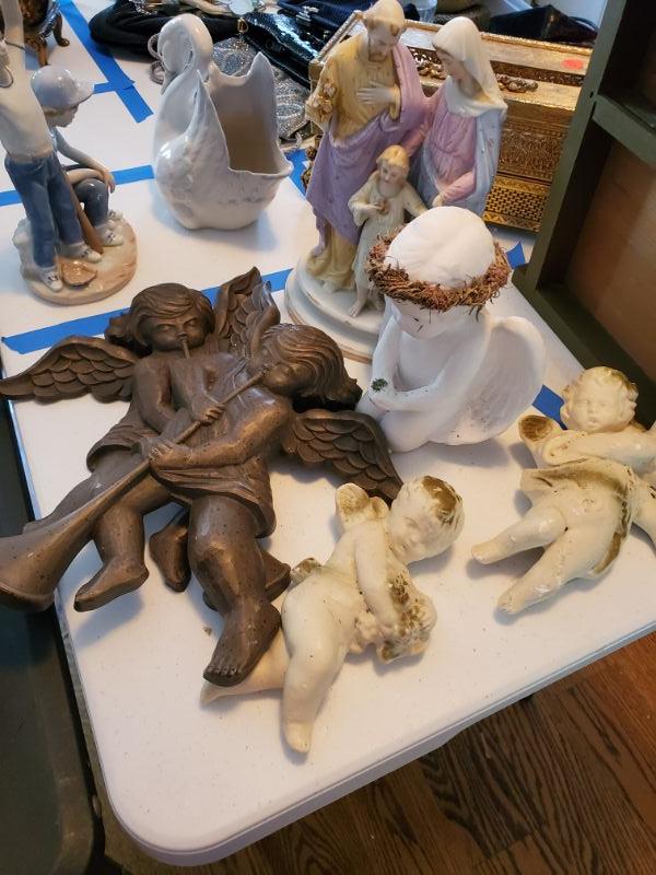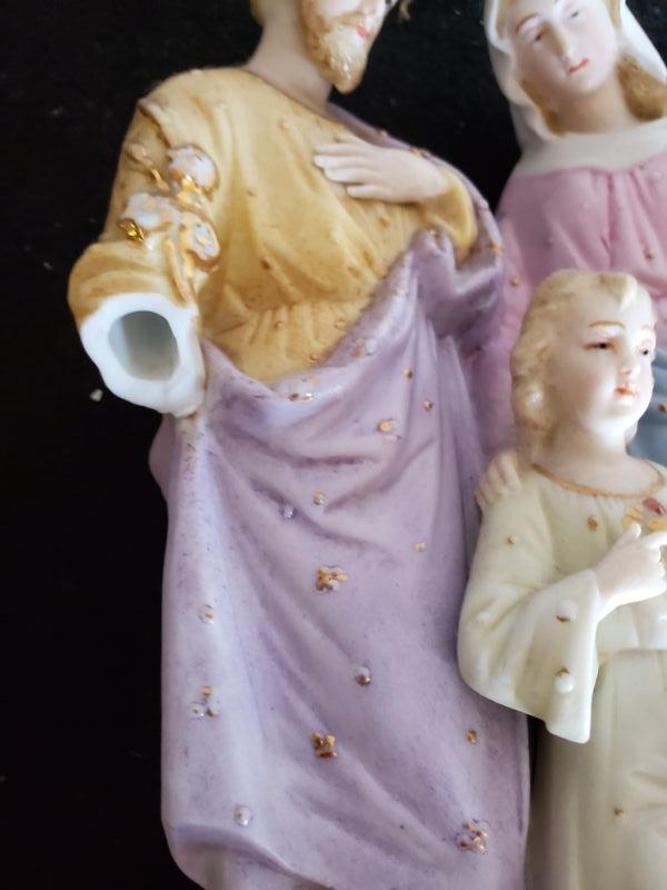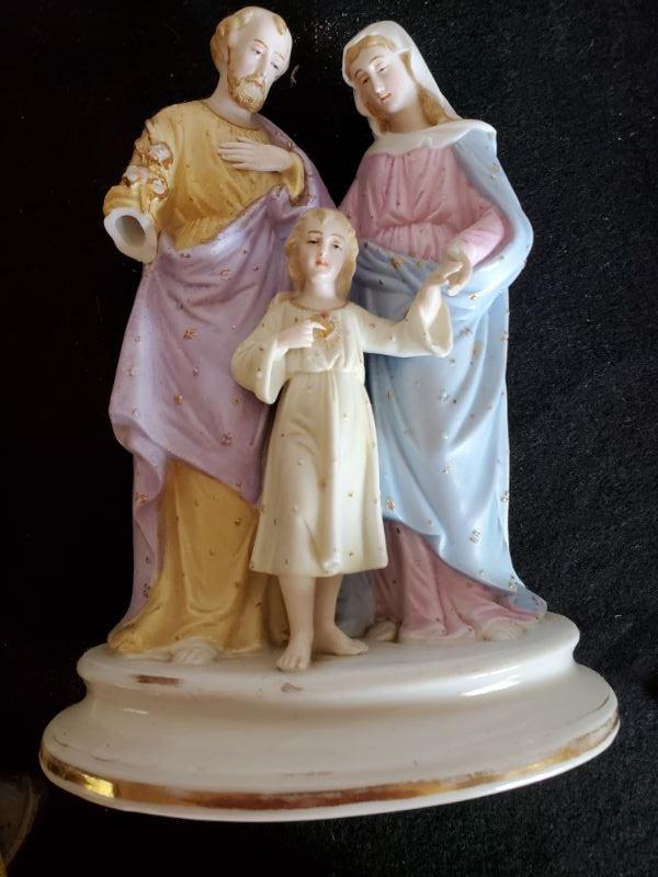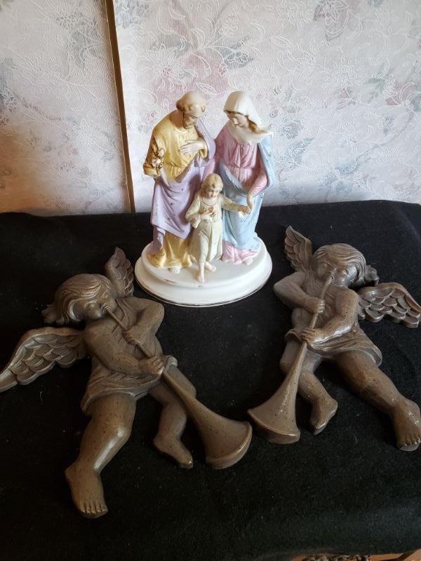 Cherubs, angels with horns and Mother Mary with Jesus and Joseph, who has a missing arm,