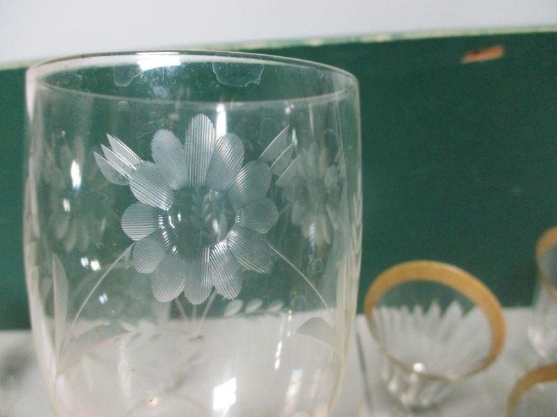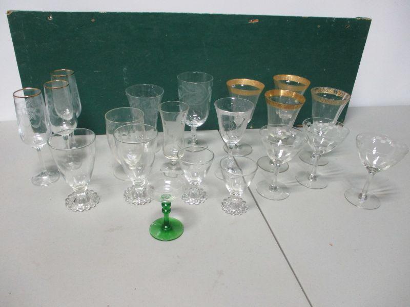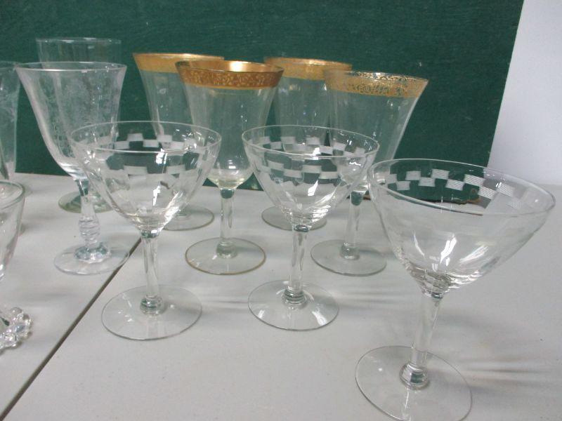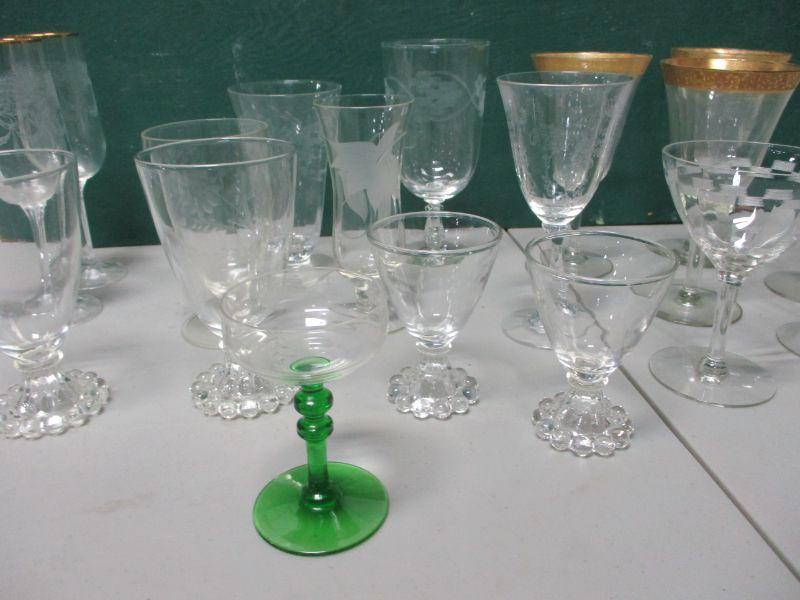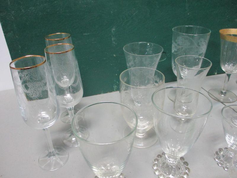 Lot 67 - Etched & Clear Glass Wine Glasses & More