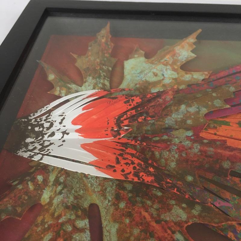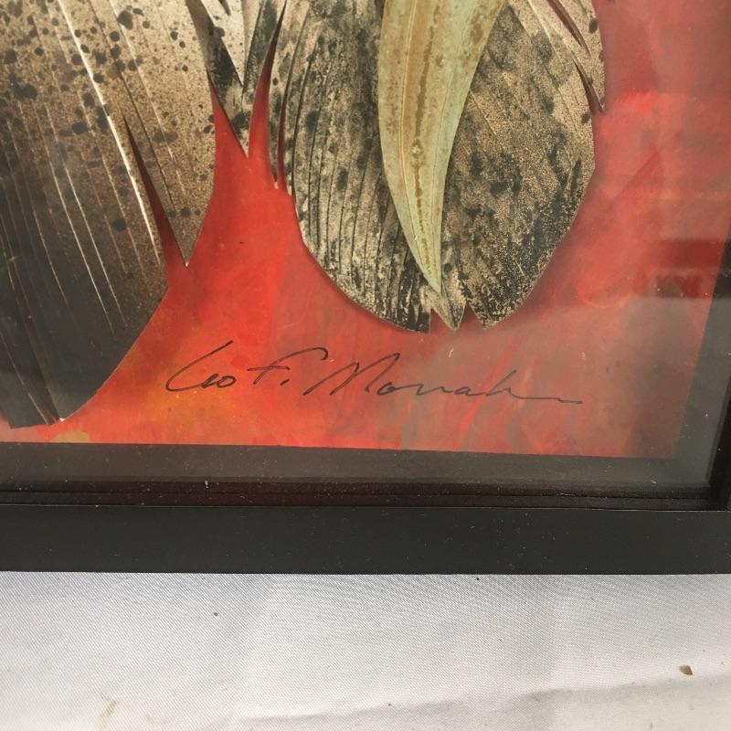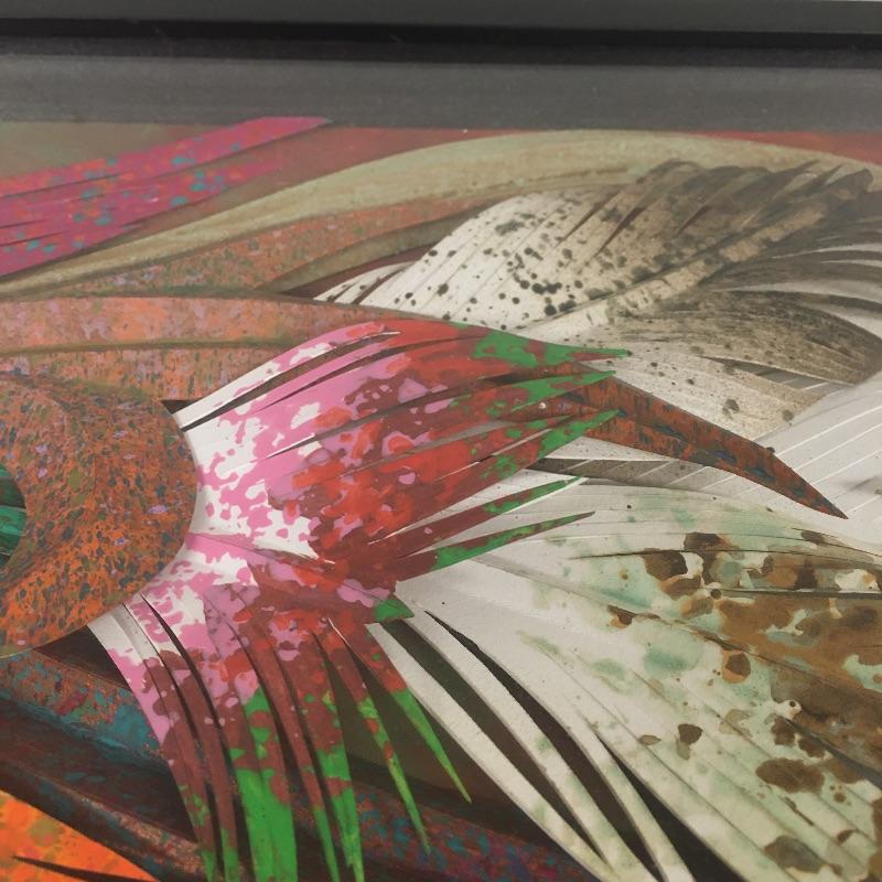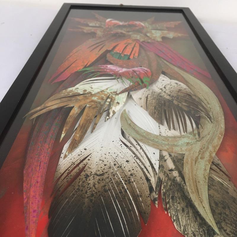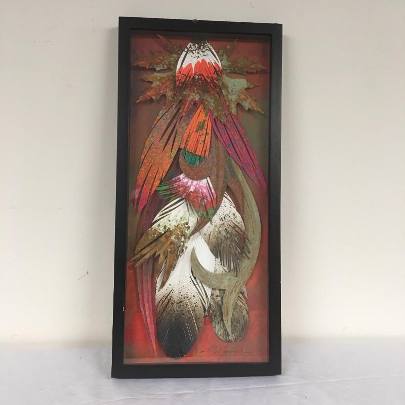 This is a framed and signed piece of cut paper art. Frame measures 9.75” x 20.75” x 1.25”.