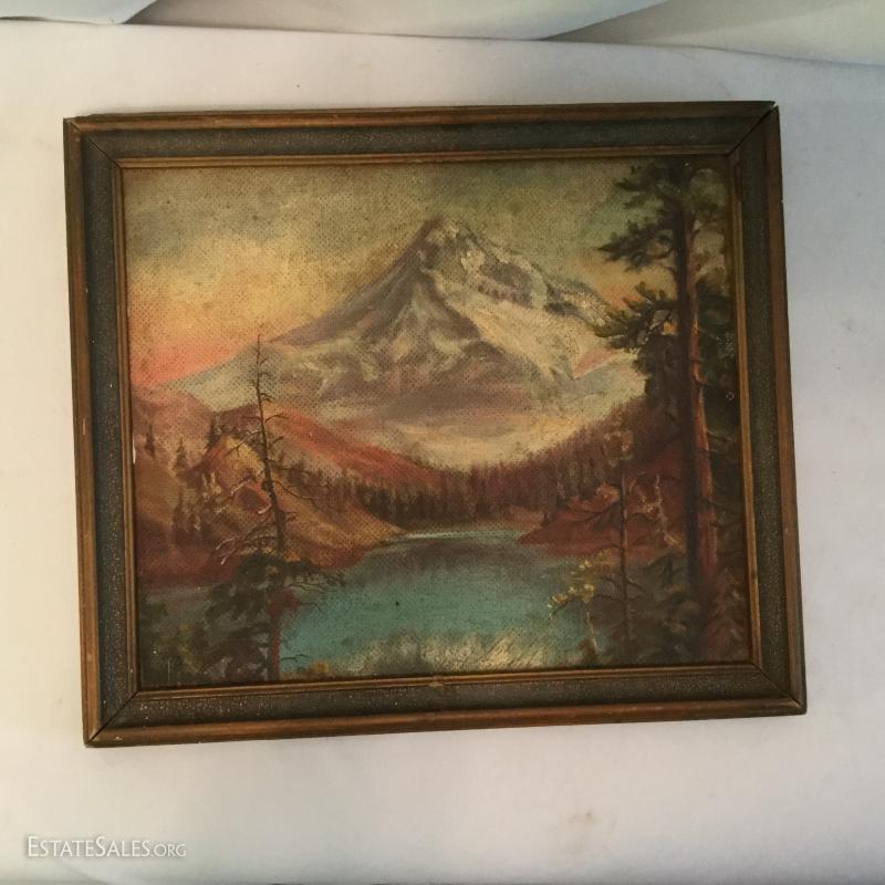 Framed Painting of mountain. No signature. 14"w x 12"l