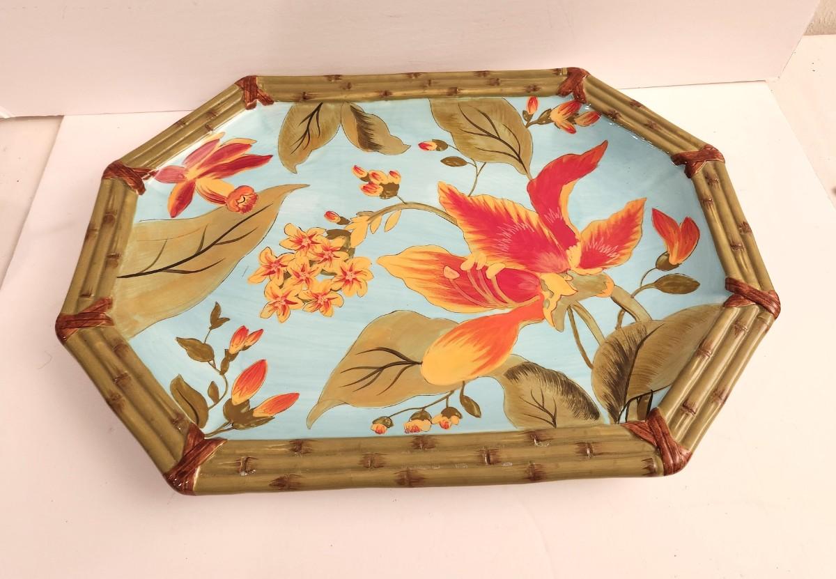 What a beauty! Large Raymond Waites Serving Platter - "Bamboo" edge, botanical theme, 19.5" across, 14" tall. Good condition.