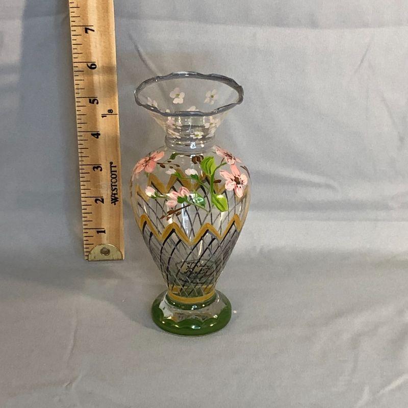 Such a pretty hand painted vase that will look just as good with flowers as it will without. It stands 6.5" tall and is in excellent condition.