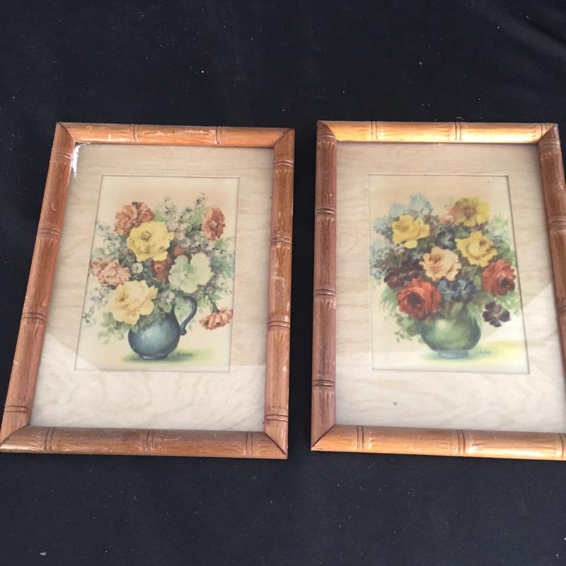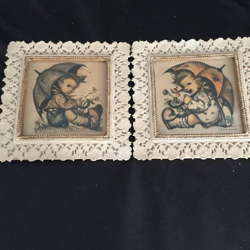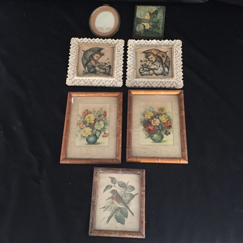 Nice pair of framed Hummel art pieces with assortment of art pieces and one photo frame. Largest Framed Art measures 5.75” x 7.75”.