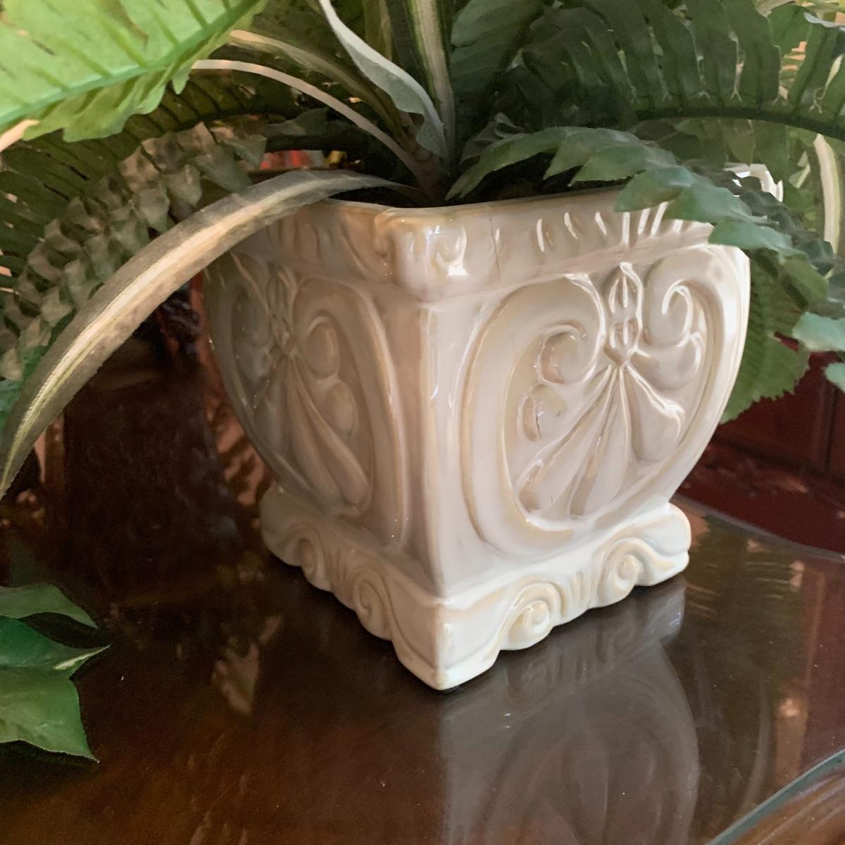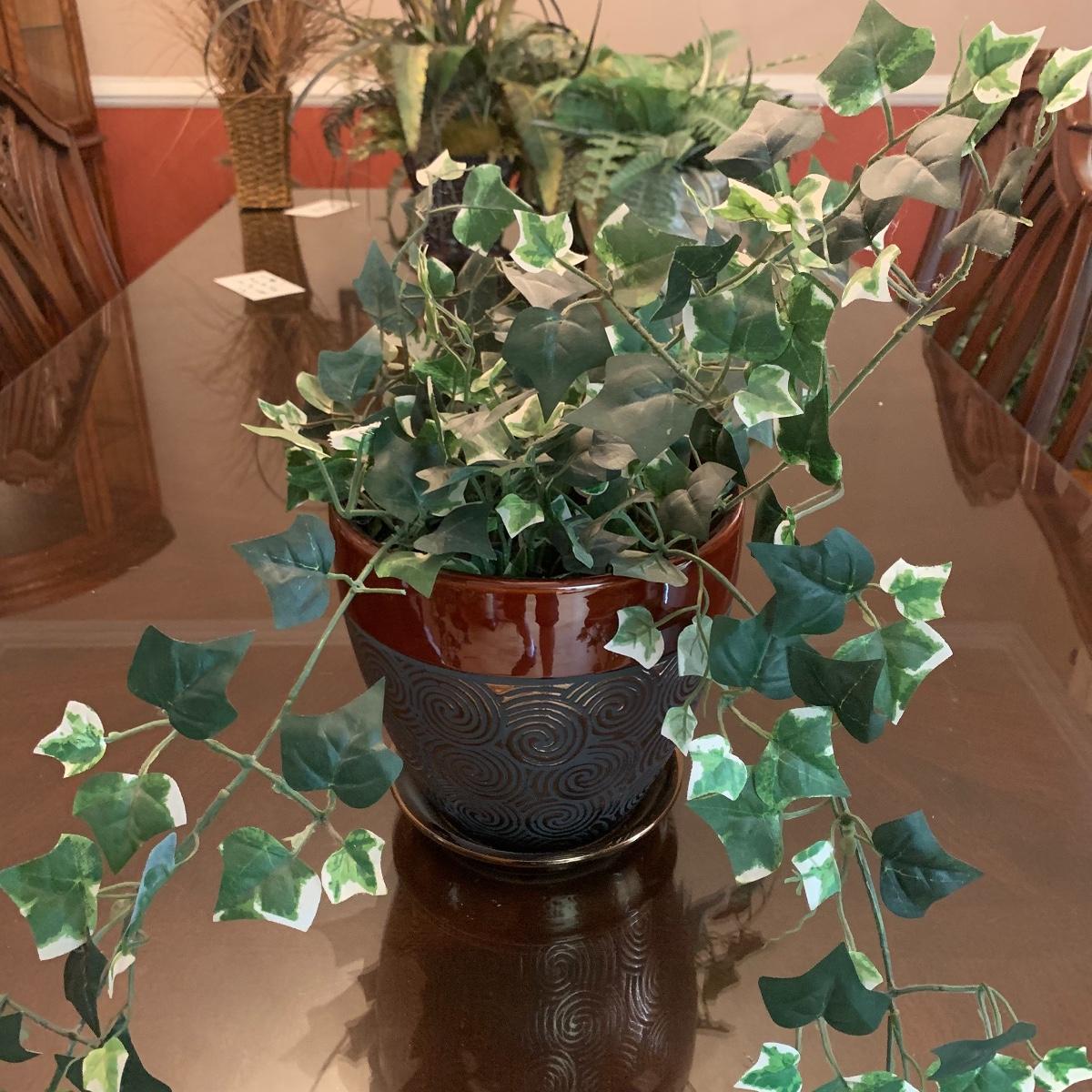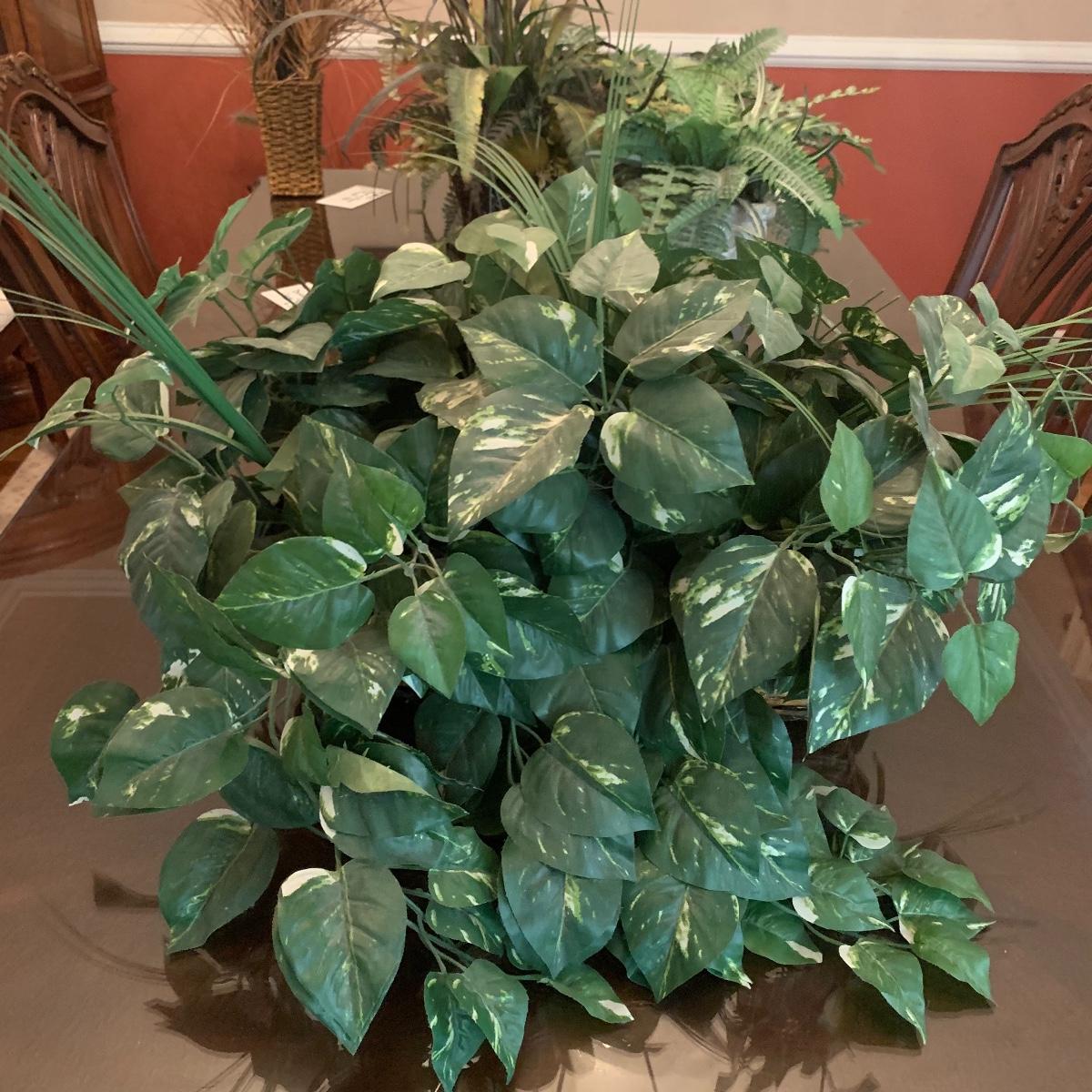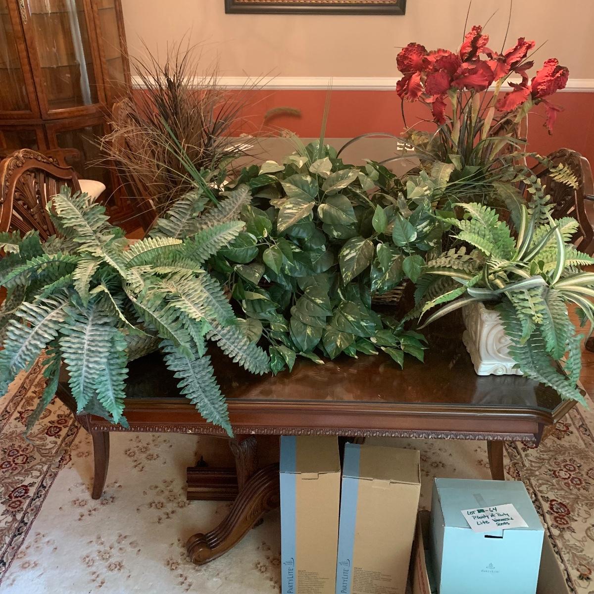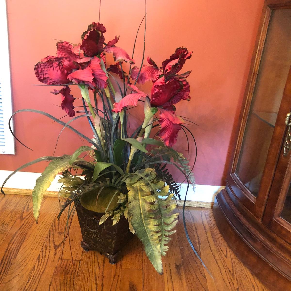 Add some year round greenery to your home with this large assortment of faux plants. Each of these 6 plants comes with its own basket or flower pot. See pics for details. The pot housing the red Iris measures 24” tall.